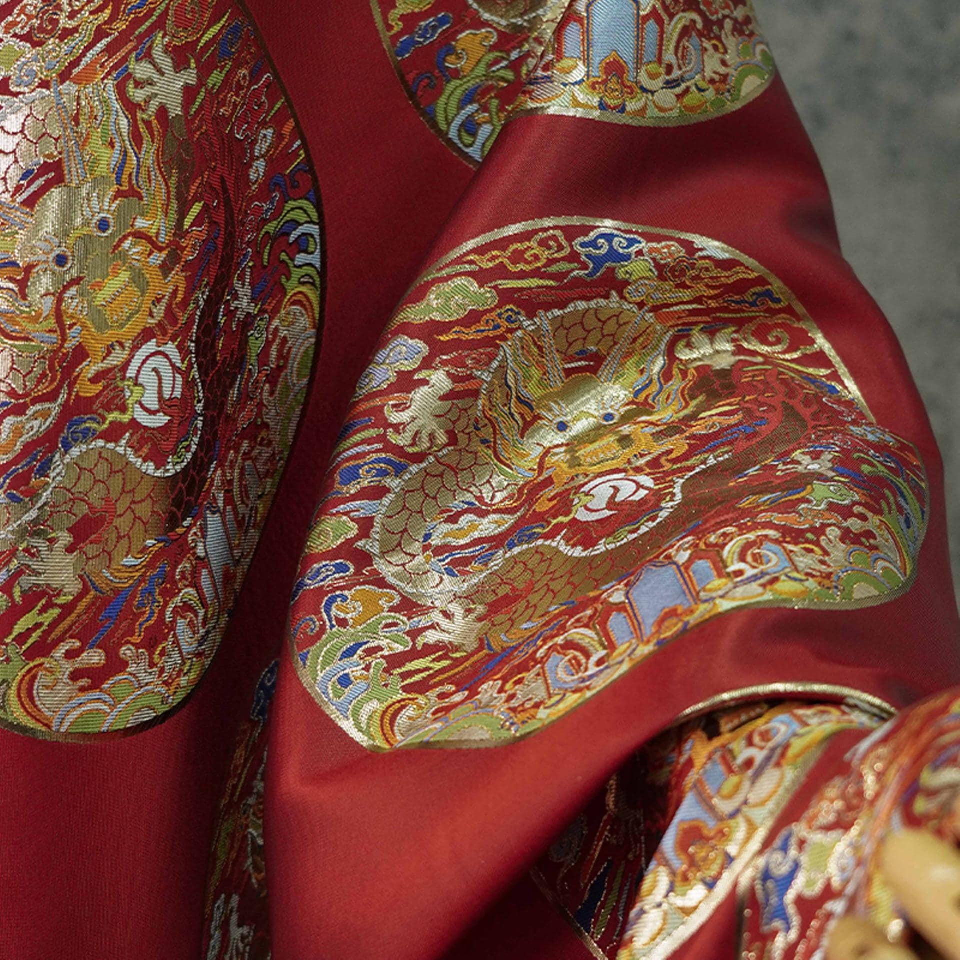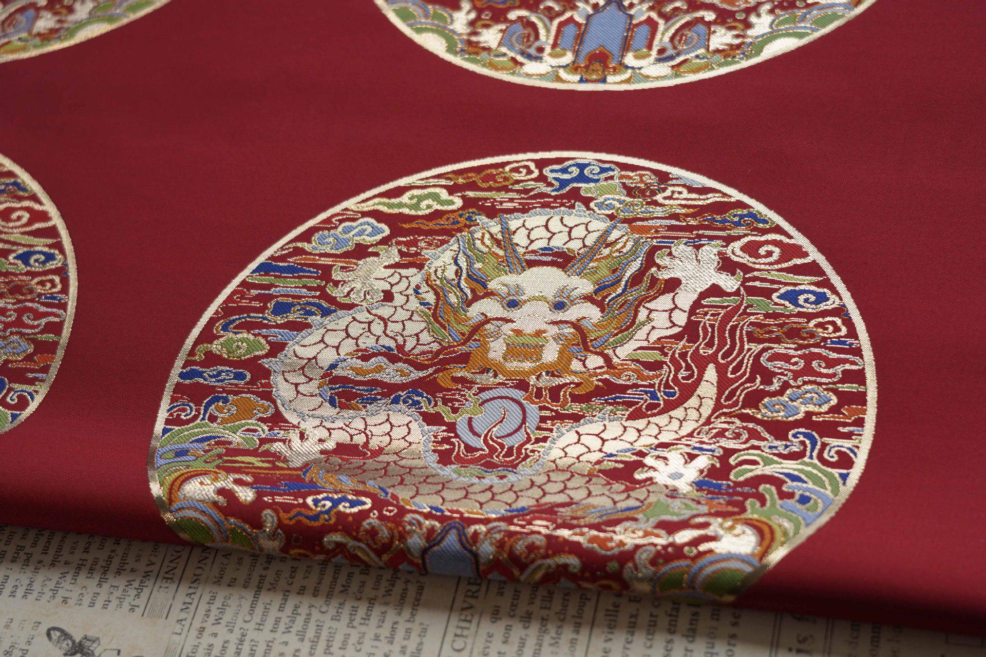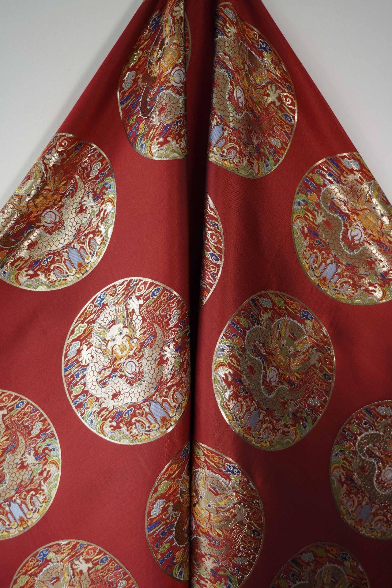 Red Dragon Embroidery Fabric: Chinese Wedding Cheongsam Brocade (59"W)