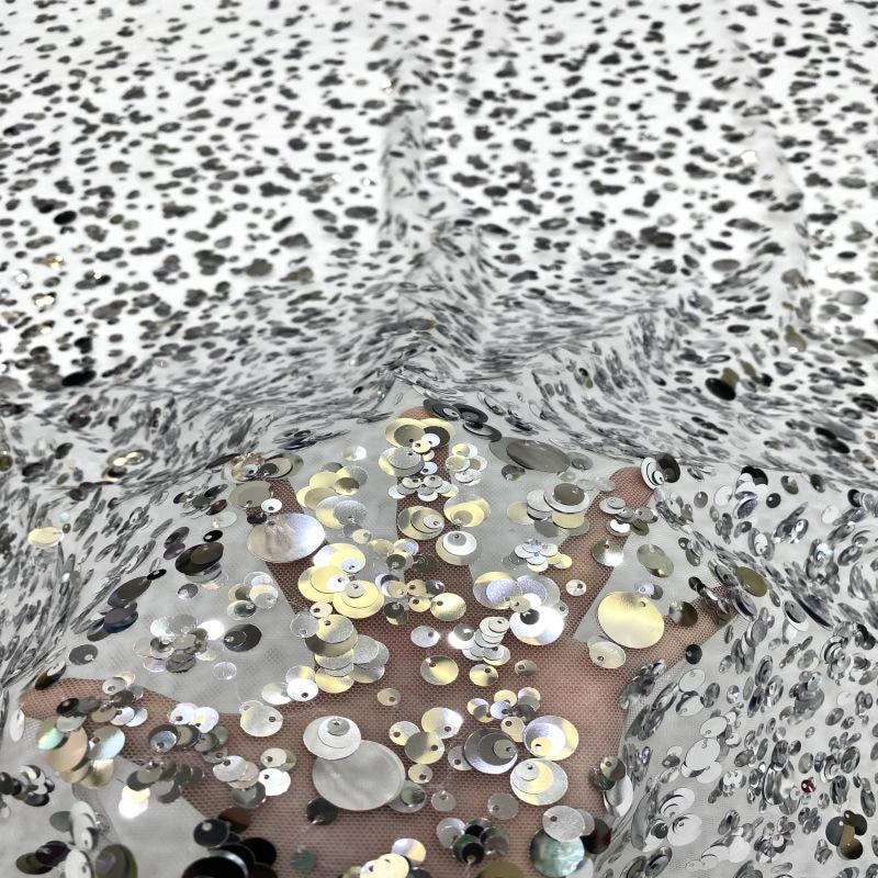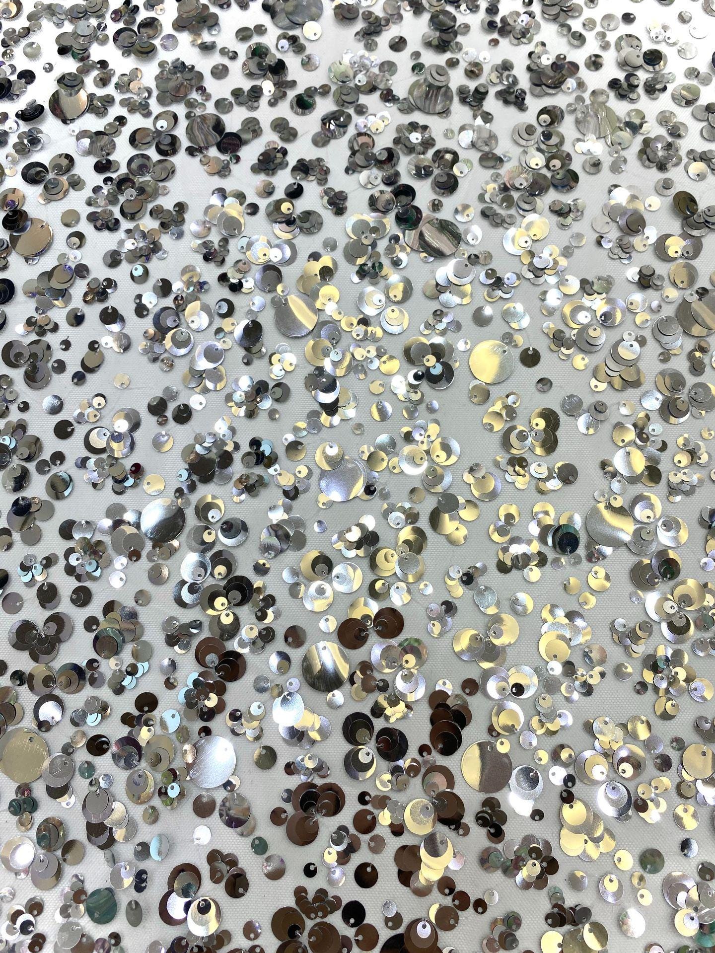 Sequin Embroidery Fabric: Beaded Designer Fabric for Prom Dress, Doll Making - 49"W