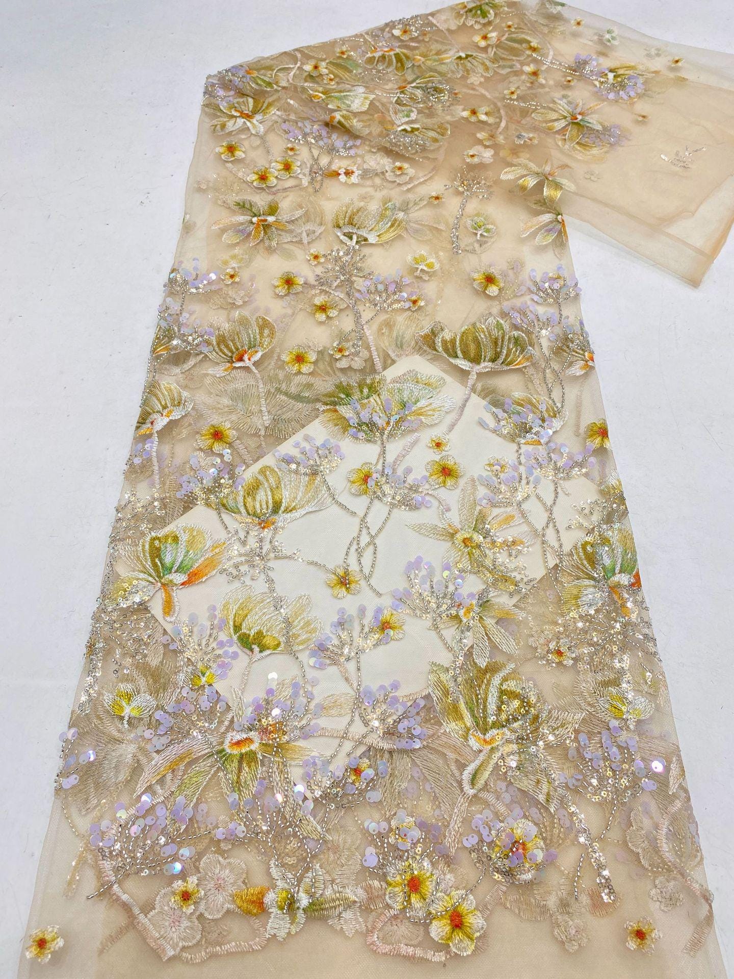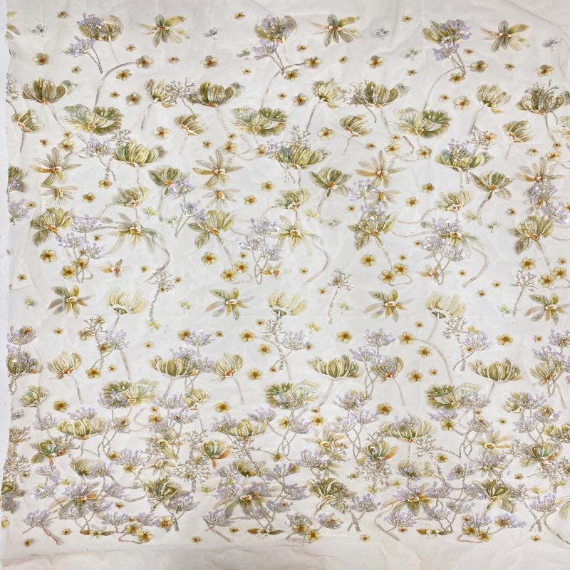 Sequin Floral Embroidery Lace Fabric, 50"W Wedding Dress Material