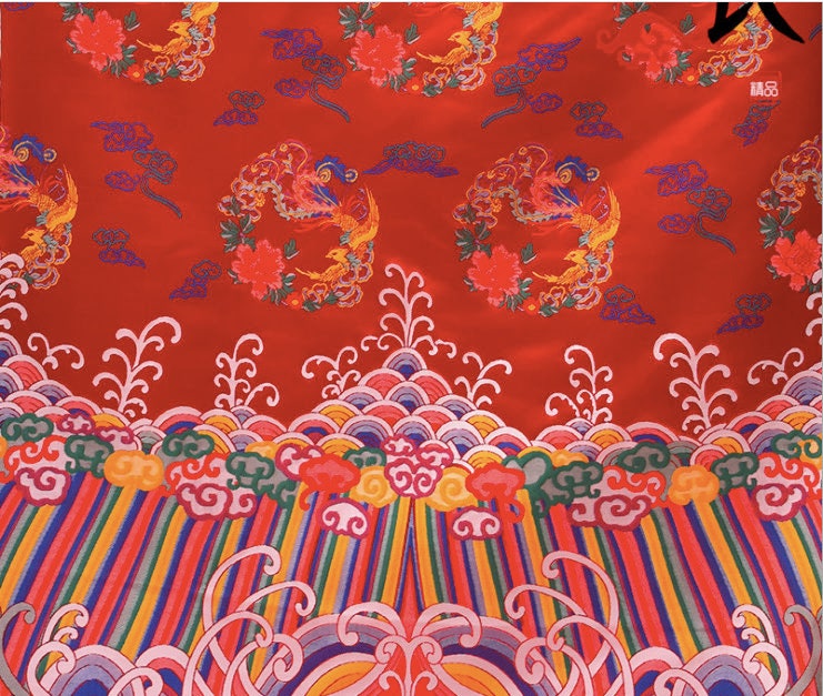 Silk Brocade Fabric: Phoenix Embroidery, Chinese Cheongsam, 27.5"x45"