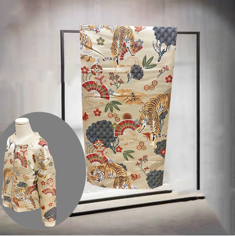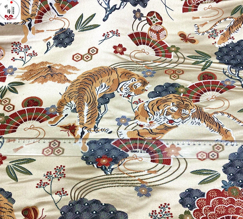 Tiger Brocade Fabric: 3D Embroidery, Zodiac Fans, 59" Wide