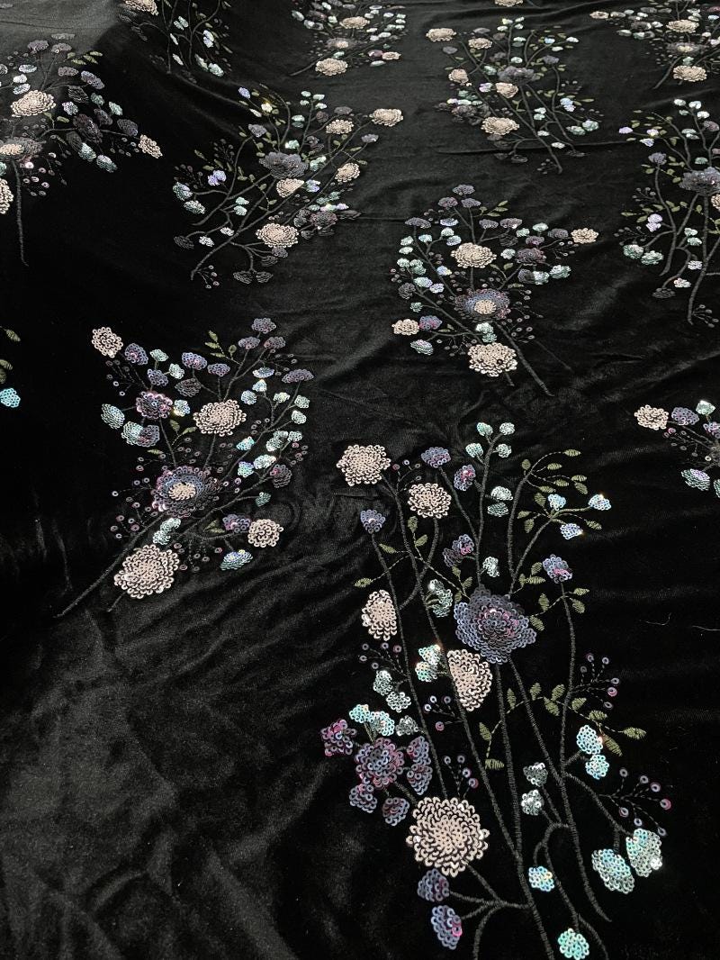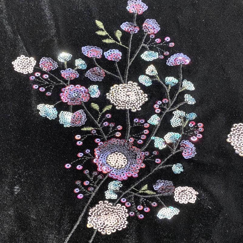 Velvet-Base Botanical Multicolor Sequin Embroidery Fabric, 49"Wide