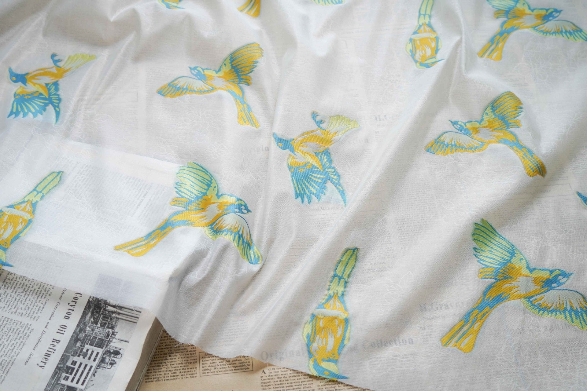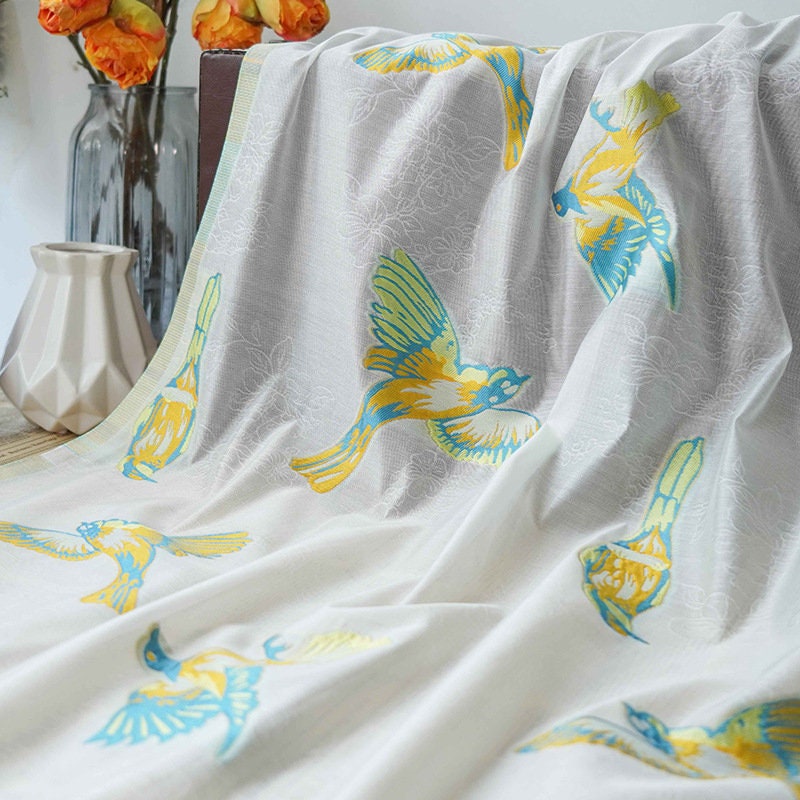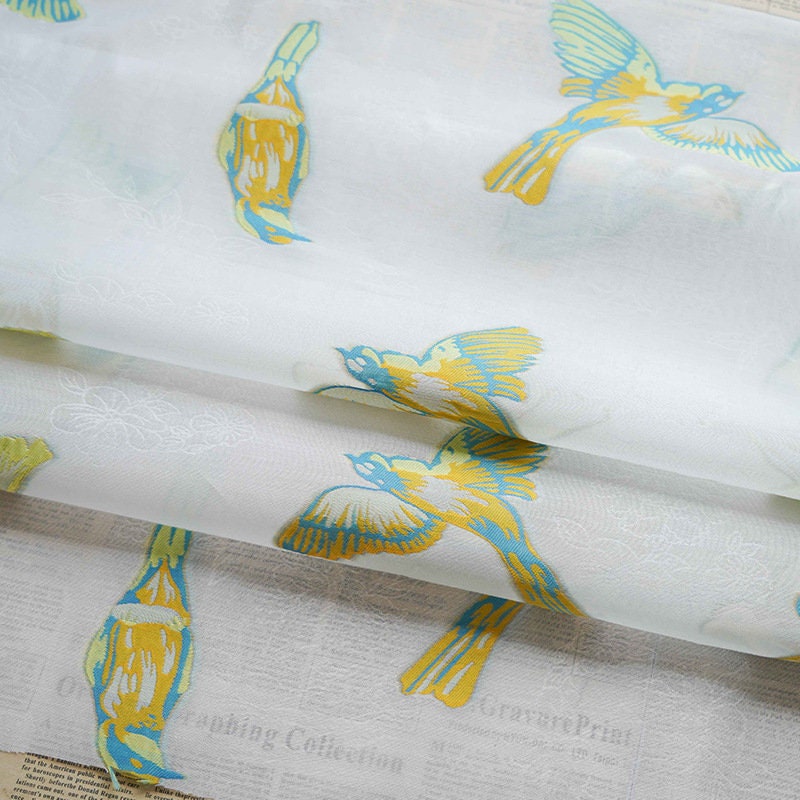 White Bird Jacquard Fabric: 3D Embroidery, 59" Wide, Nylon Polyester