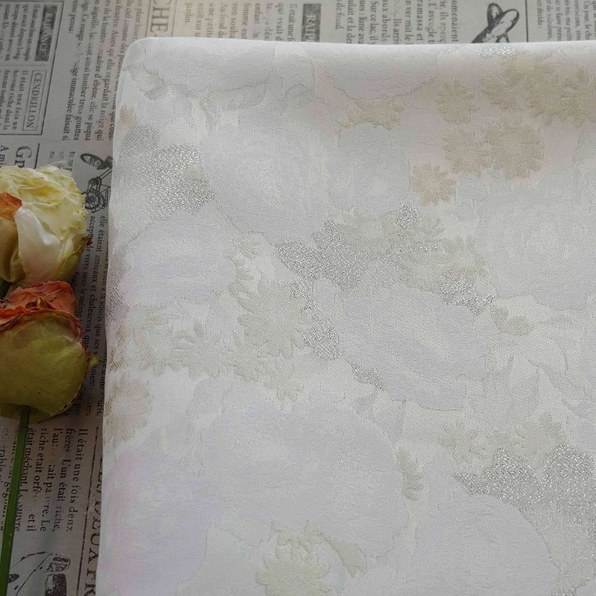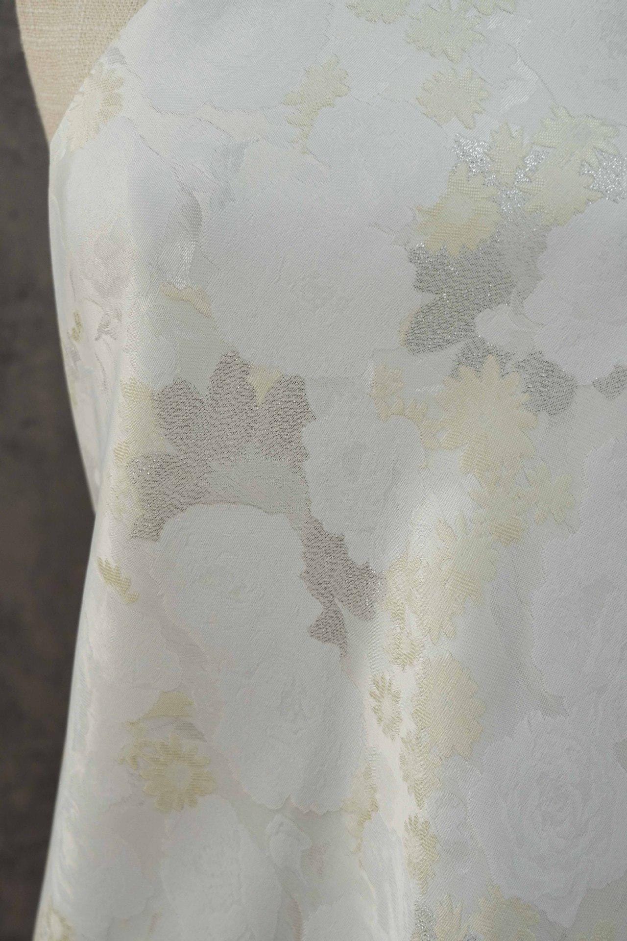 White Floral Jacquard Fabric ��� Gold Silver Lurex, 65ï¿