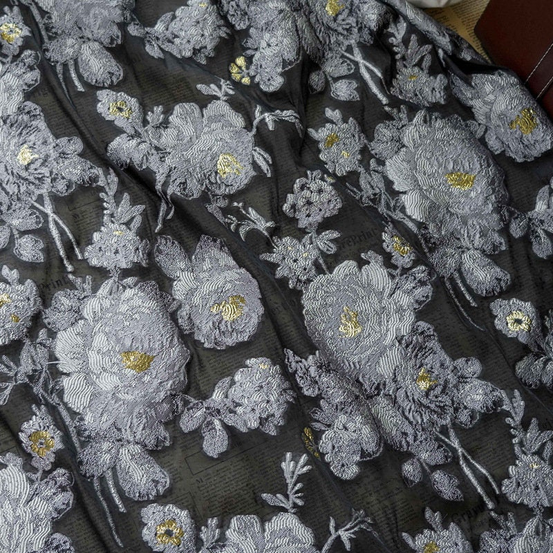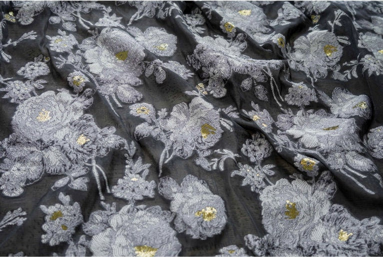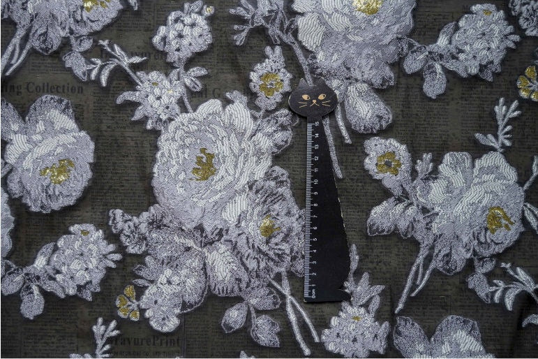 White Flower Jacquard Embroidery Fabric: 3D Effect, 55"W, Costume & Decor