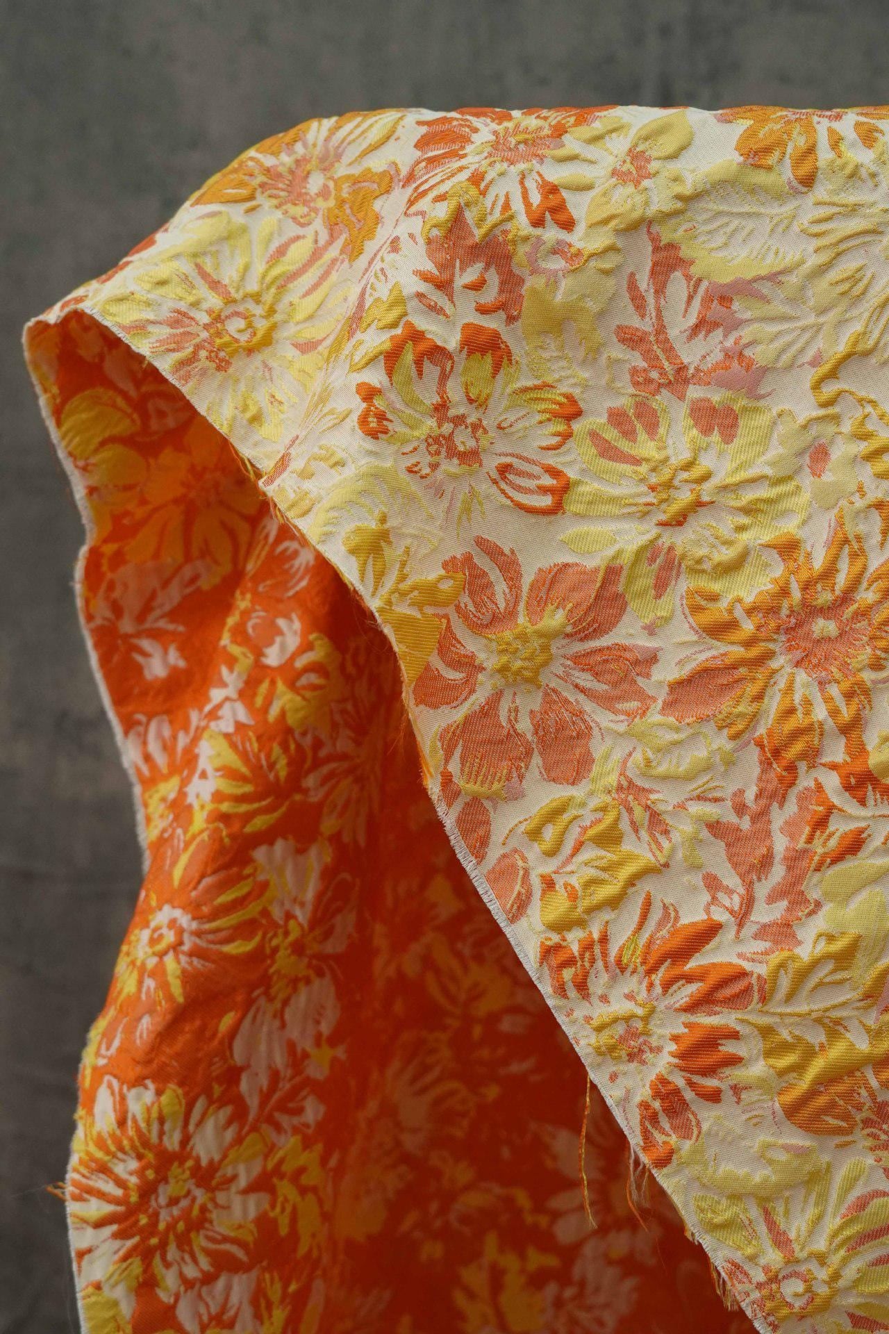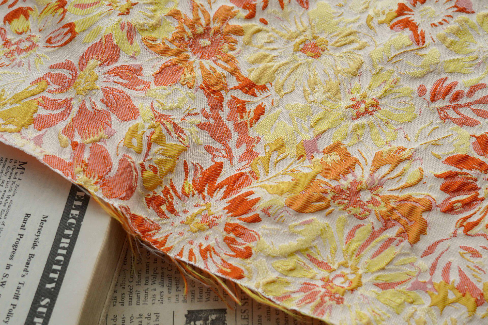 Yellow Jacquard Woven Fabric: 3D Embossed Flower Pattern, 57" Wide