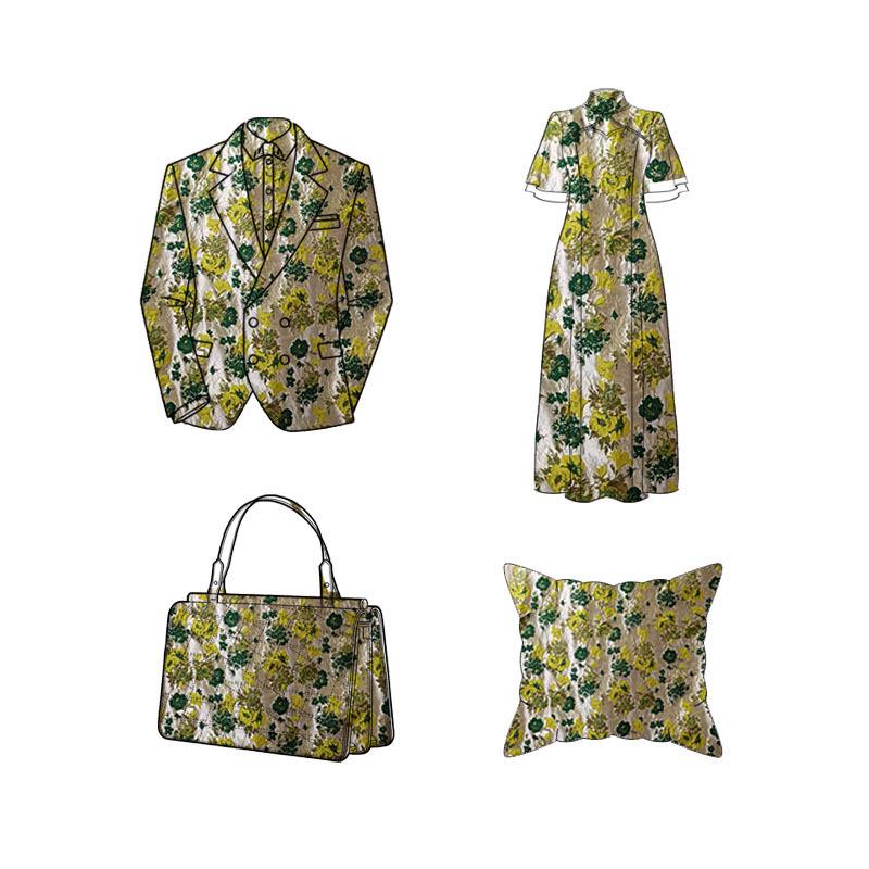Material: Yarn-dyed fabric 85% rayon + 10 polyester + 5% gold thread