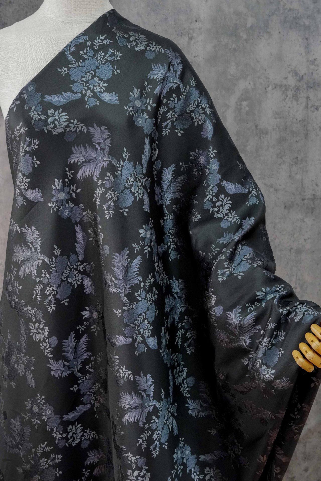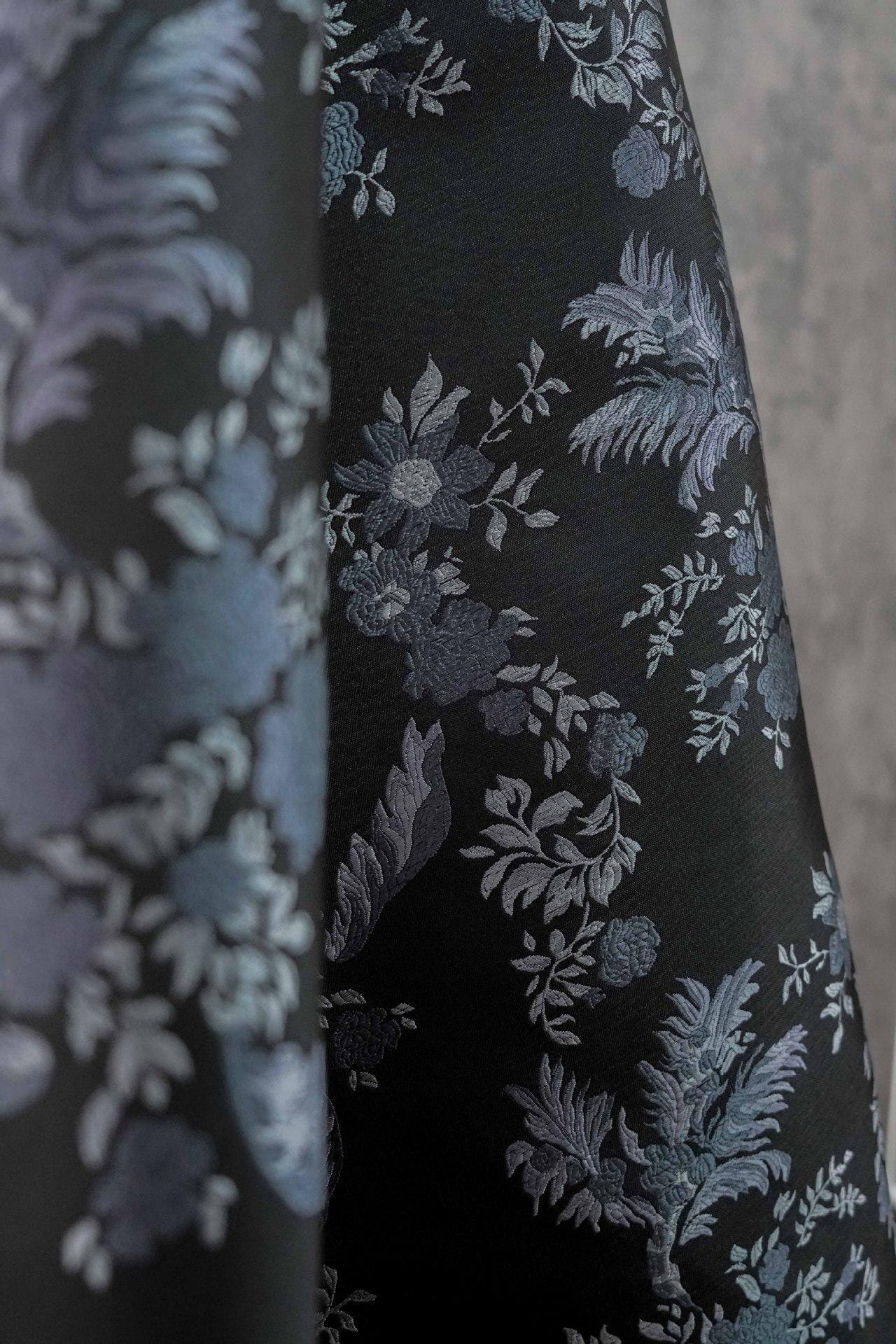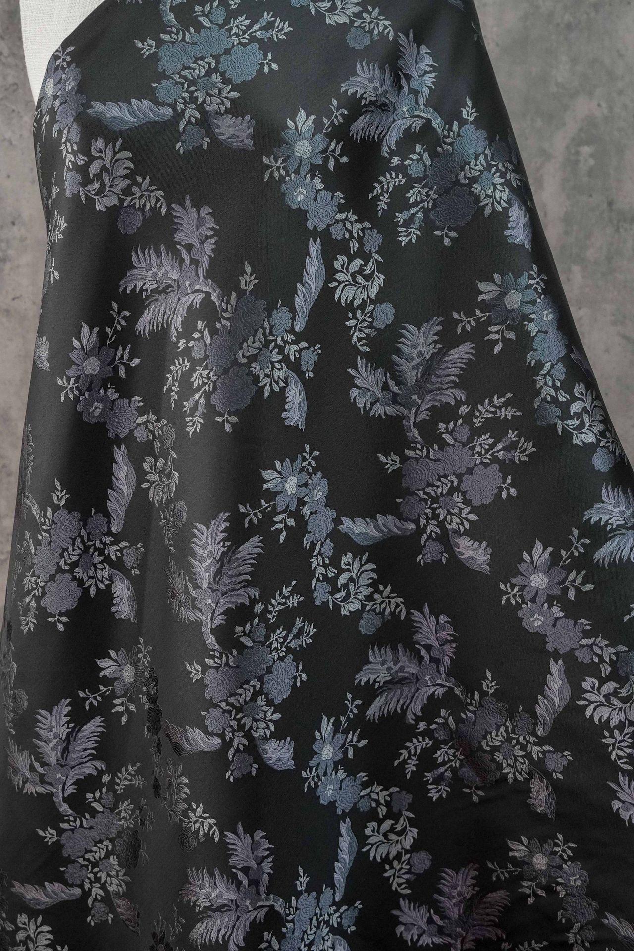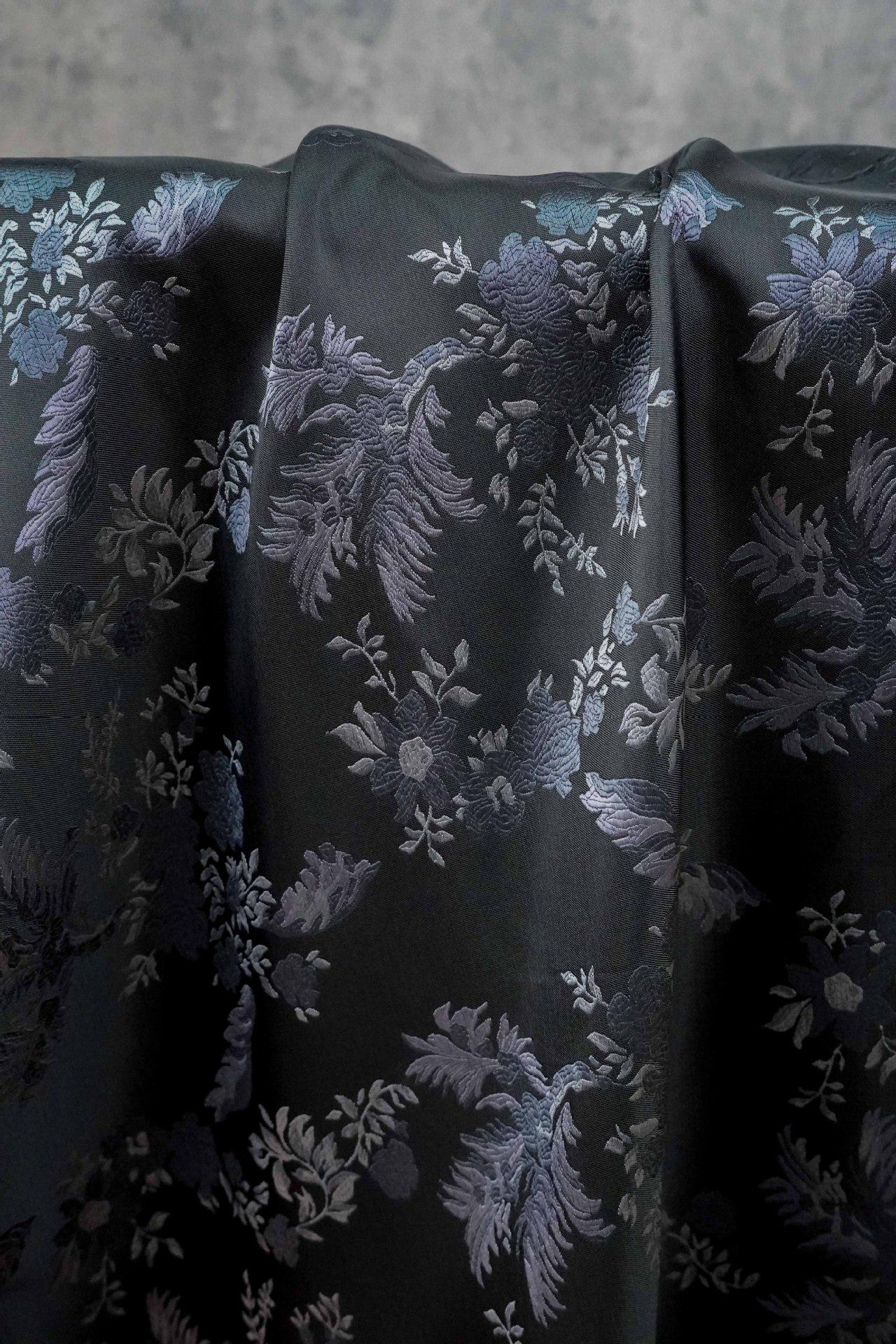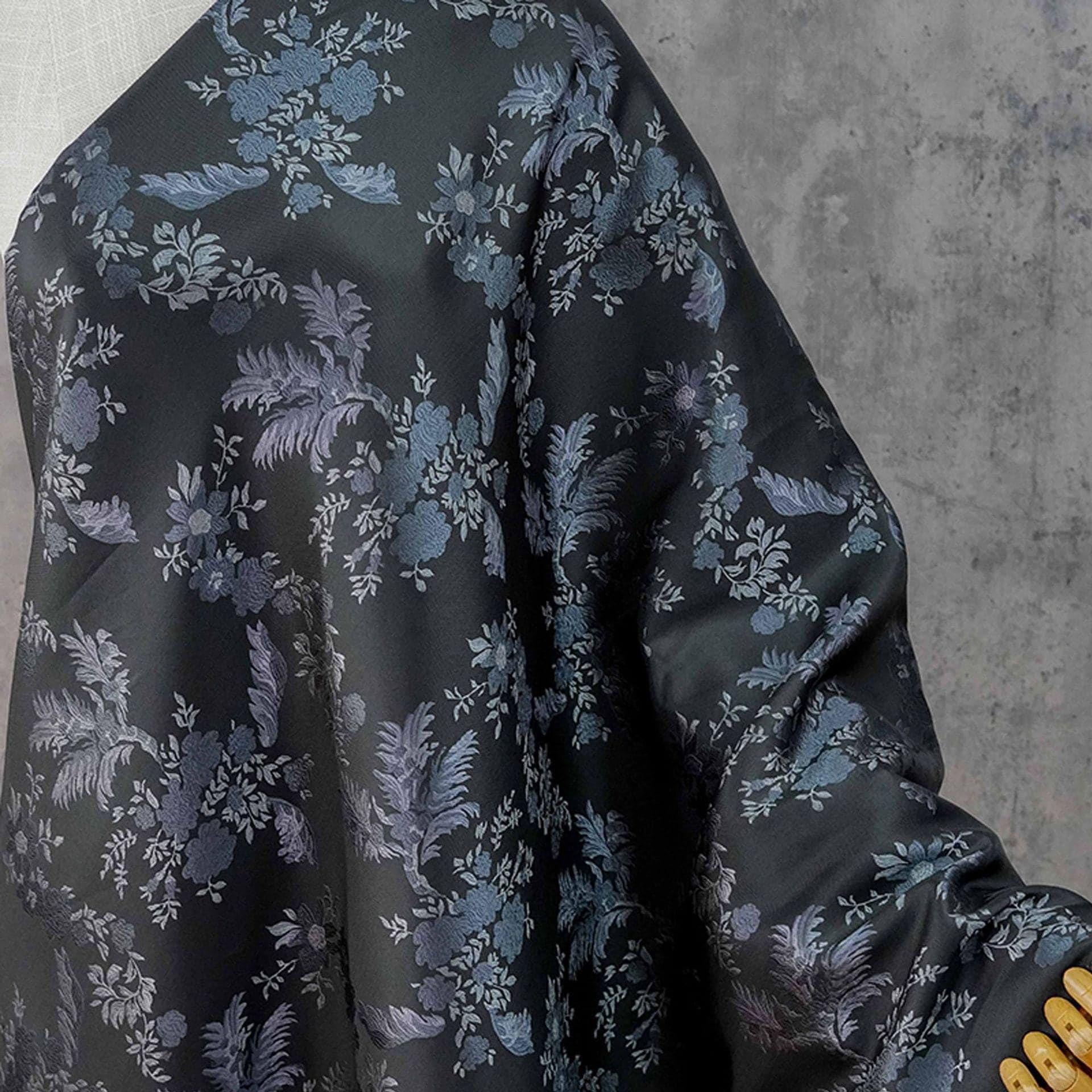 Luxury European-Style Black Jacquard Fabric with Floral Pattern, 62"Wide