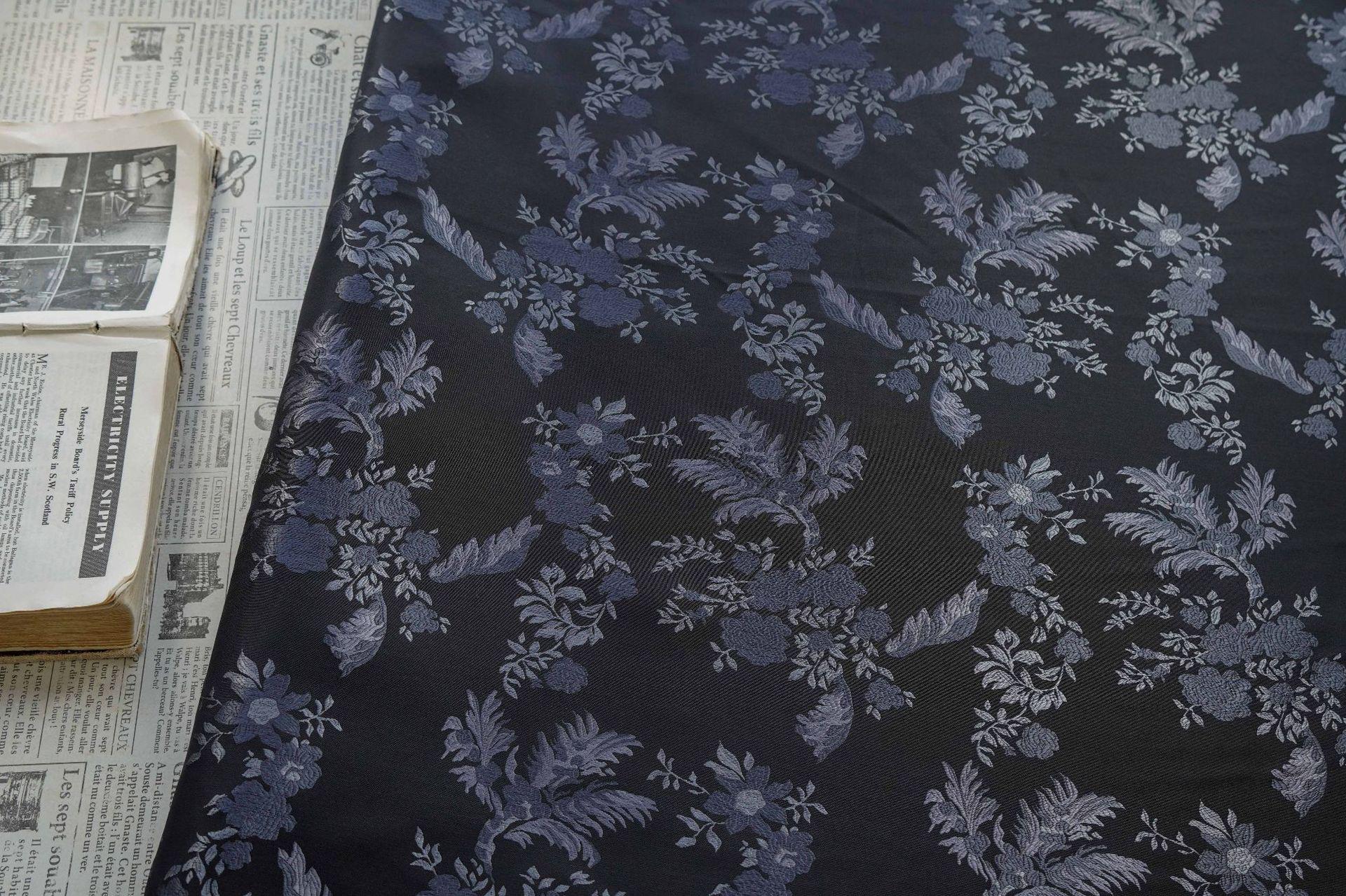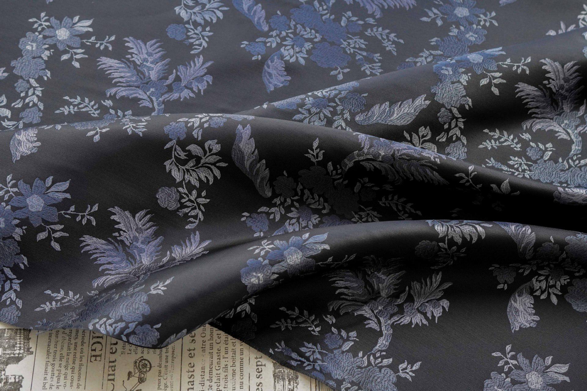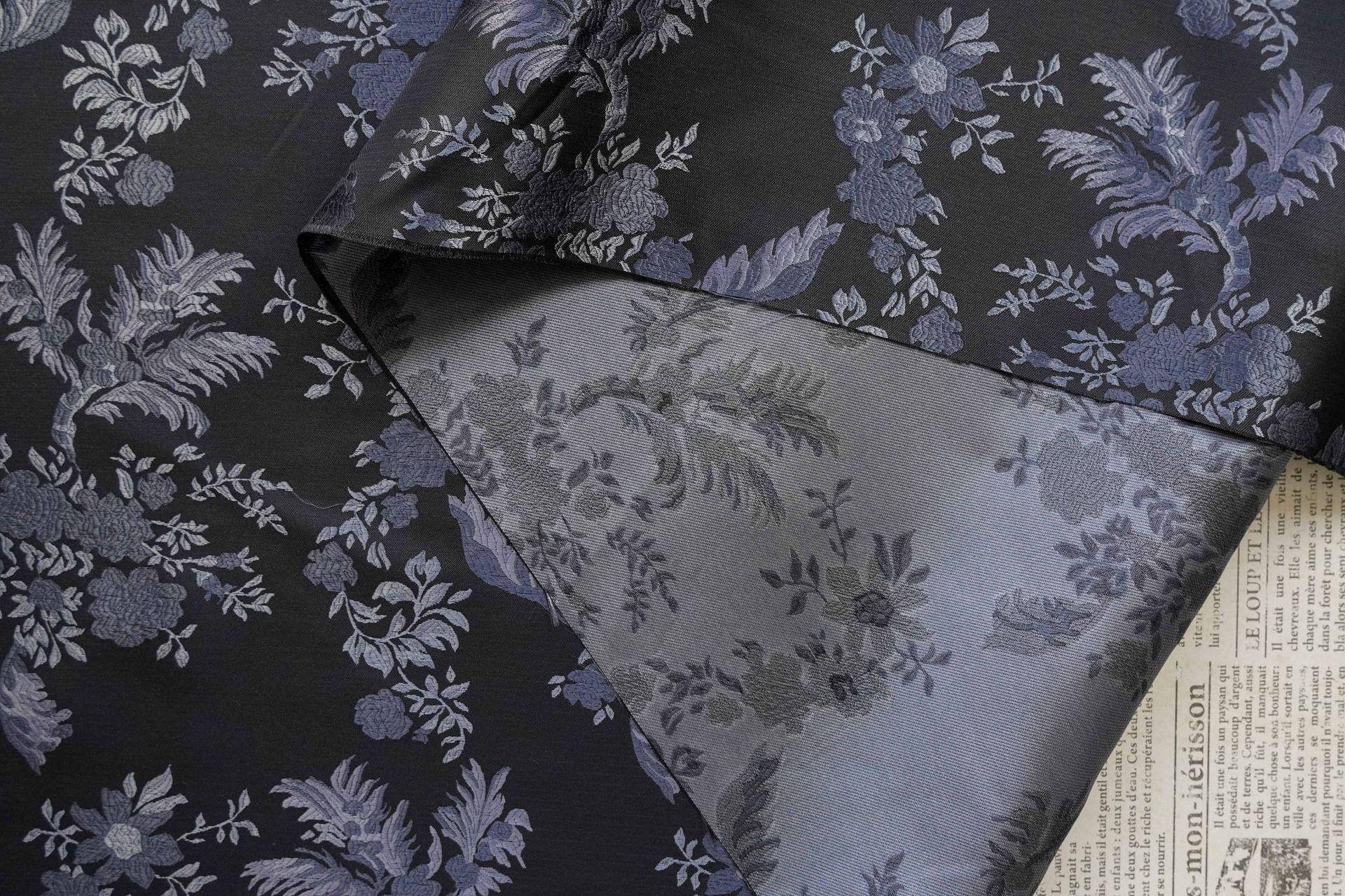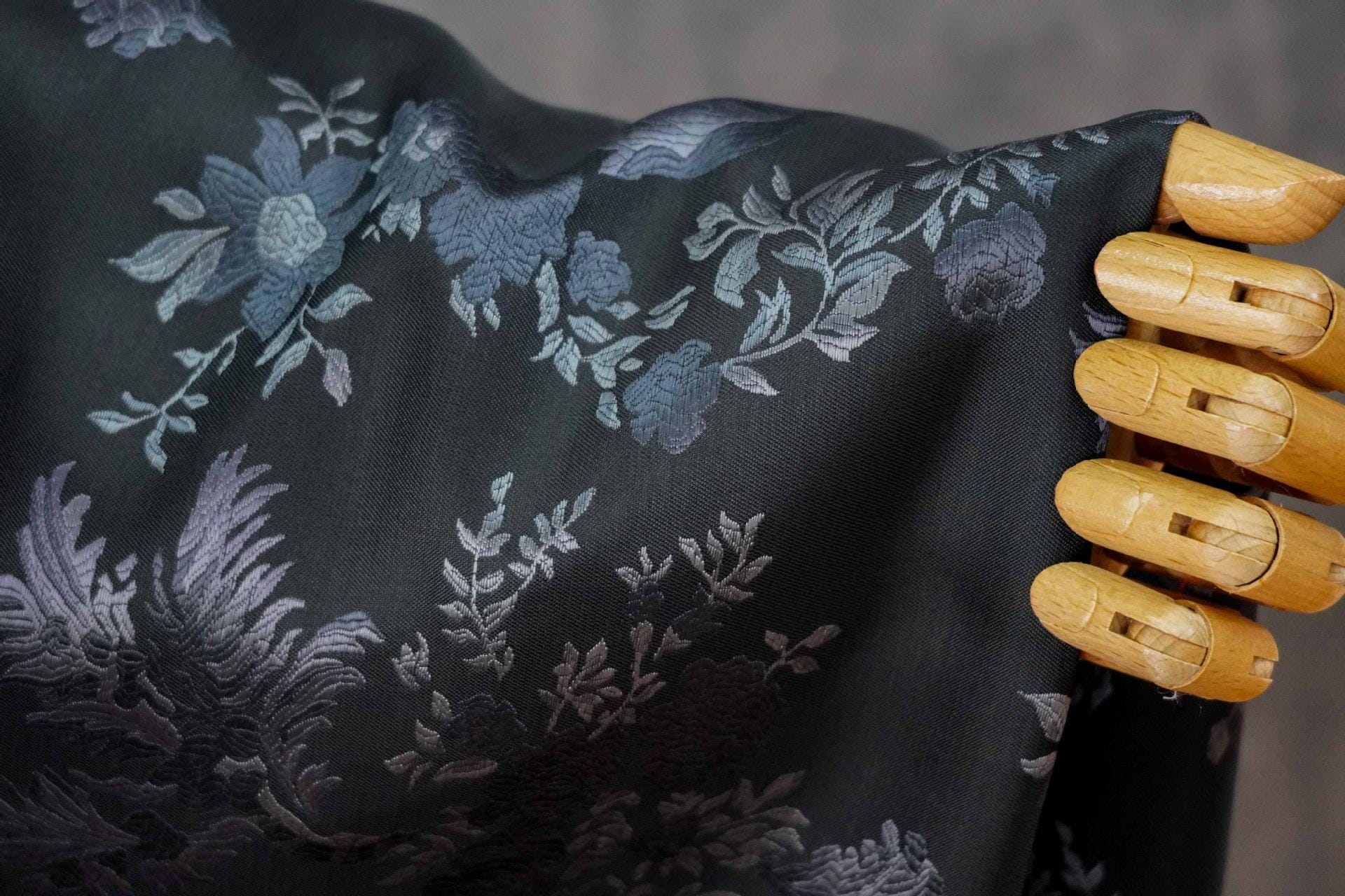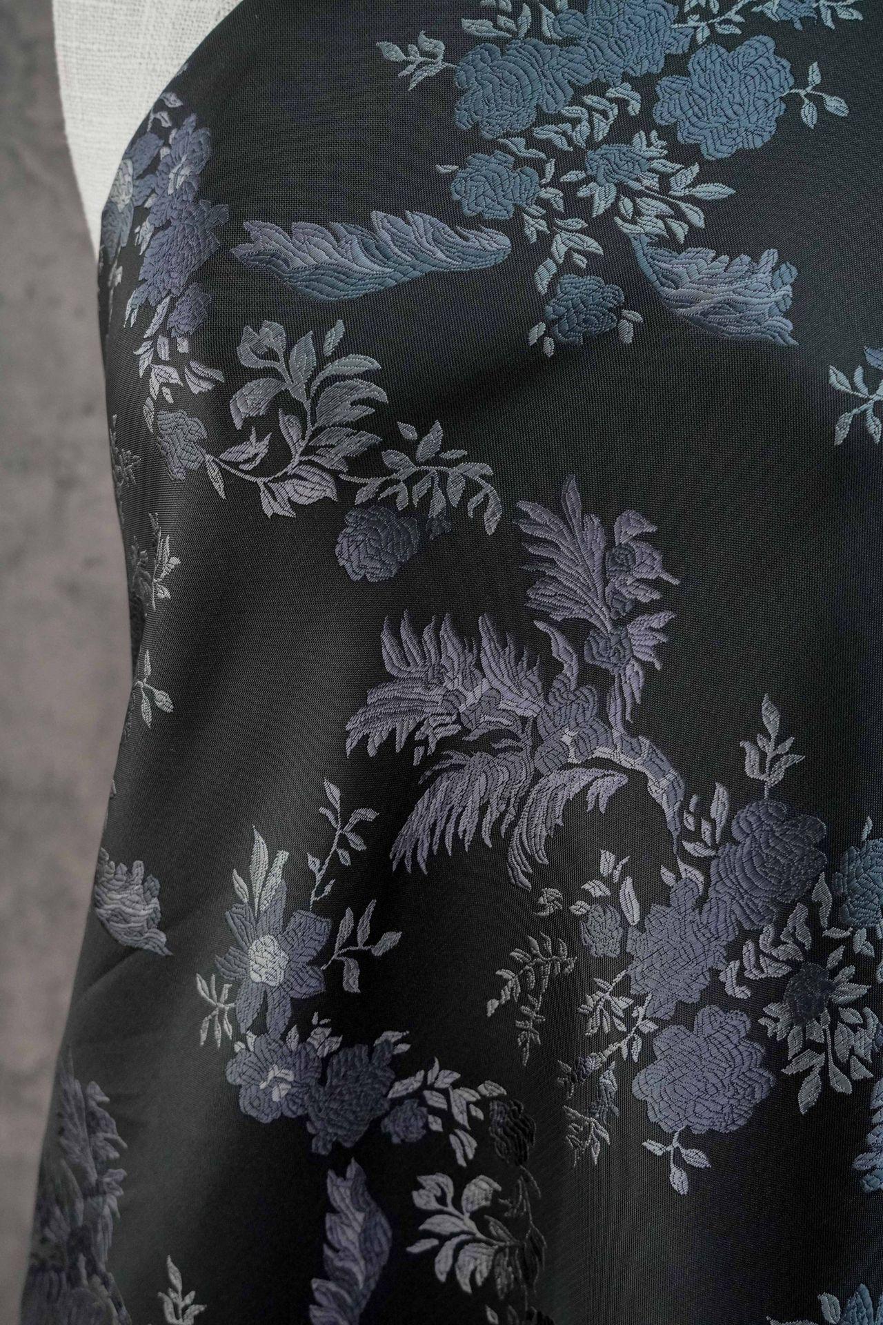 Luxury European-Style Black Jacquard Fabric with Floral Pattern, 62"Wide