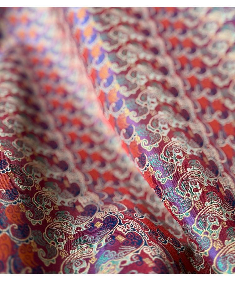 Silk brocade is a luxurious fabric made of silk and sometimes metallic threads, with a decorative pattern that is often raised or embossed on the surface. It is typically used for formal or traditional garments, upholstery, and drapery. Brocade fabrics are known for their rich and ornate designs, which can be created through a variety of weaving techniques, including jacquard weaving.