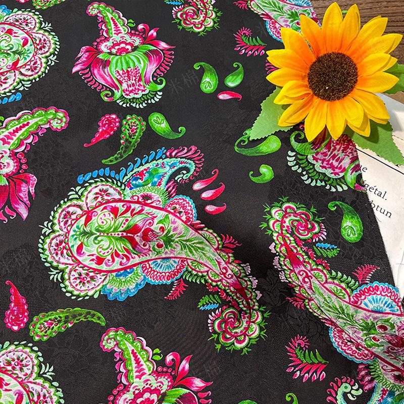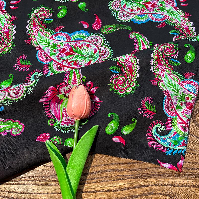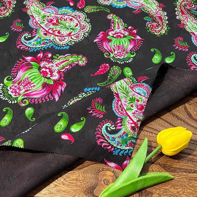 Luxurious Xiangyun Silk with Paisley Jacquard Pattern, 59" Wide