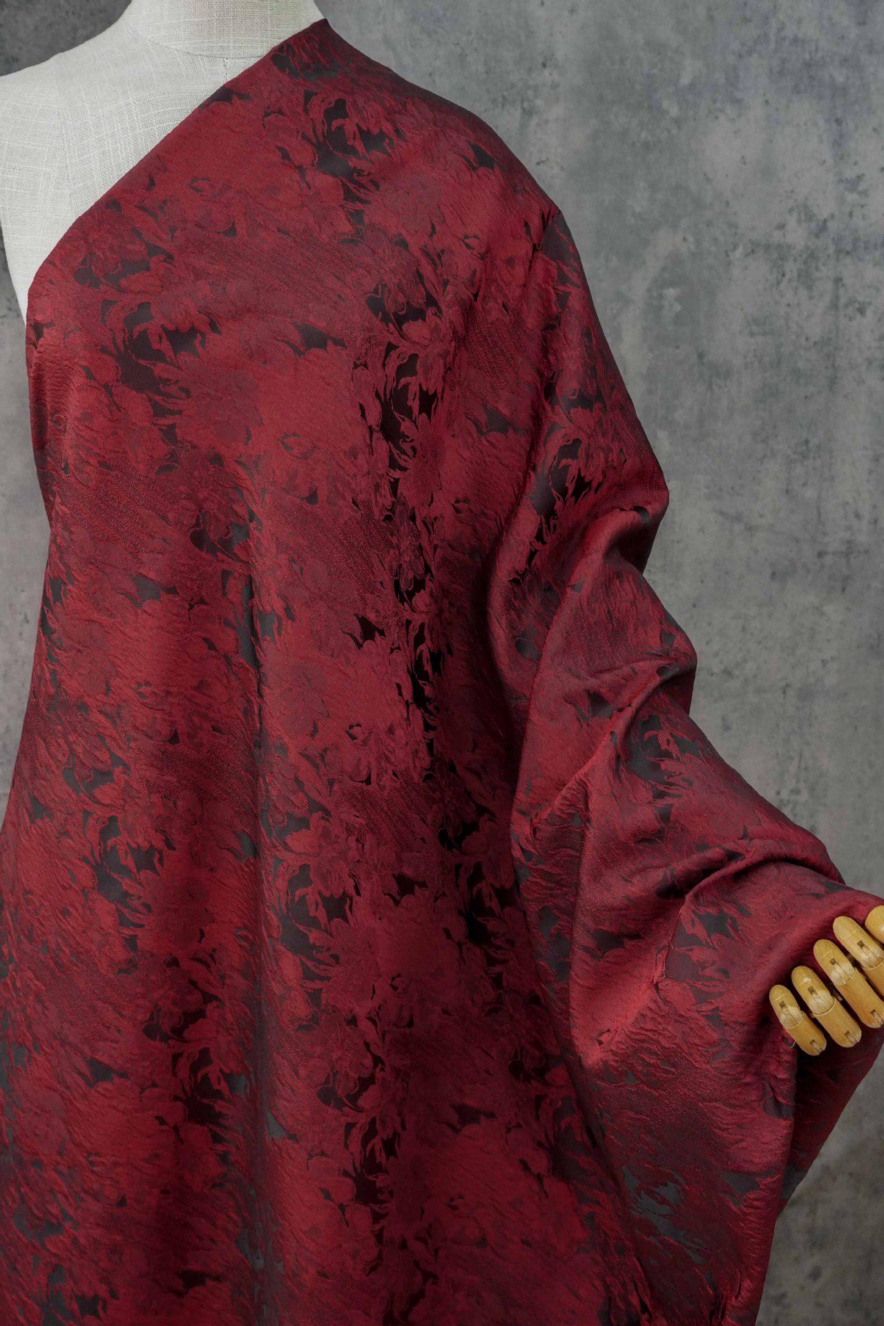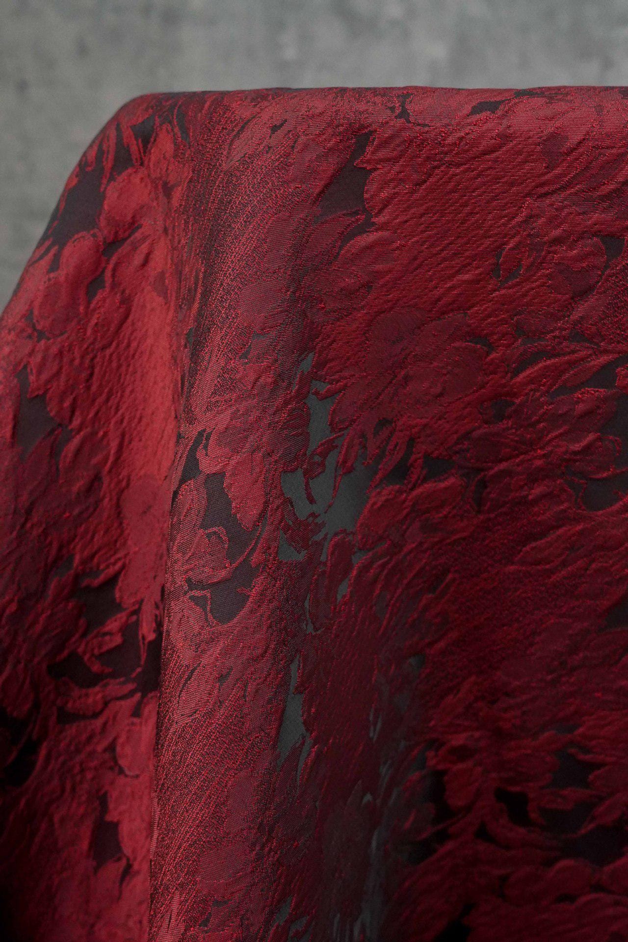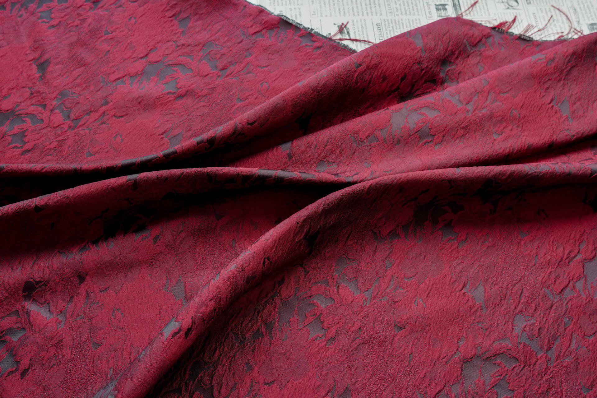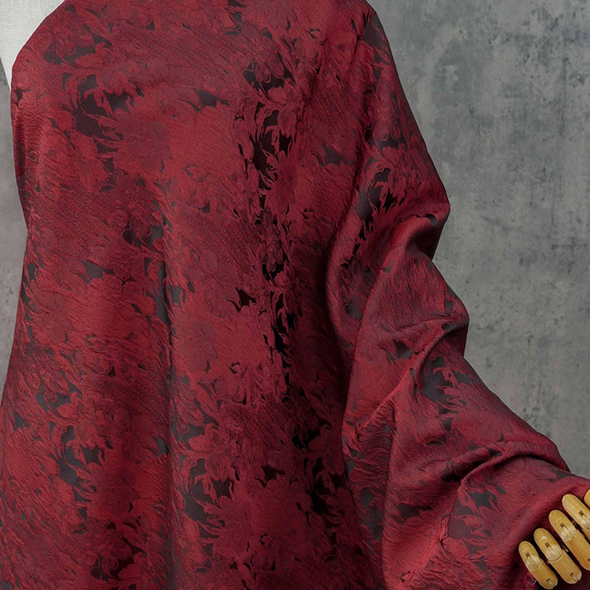 Luxurious Vintage Dark Red 3D Floral Woven Jacquard Fabric, 58"Wide