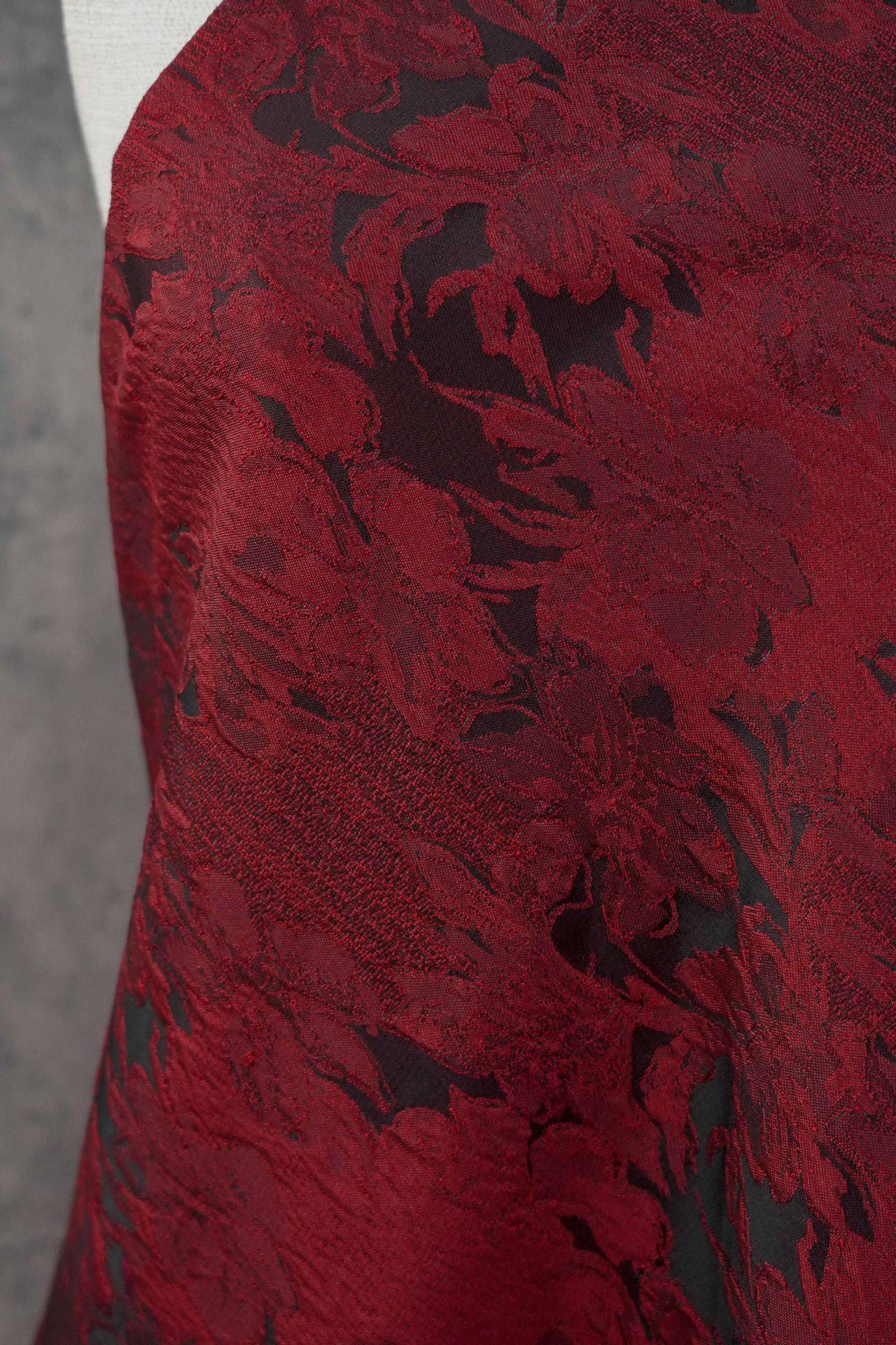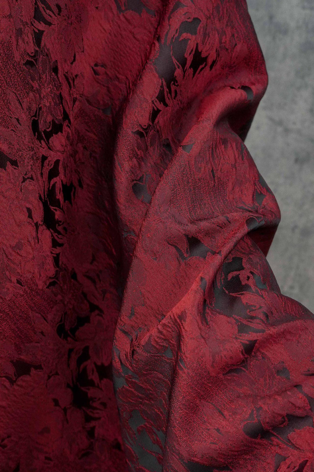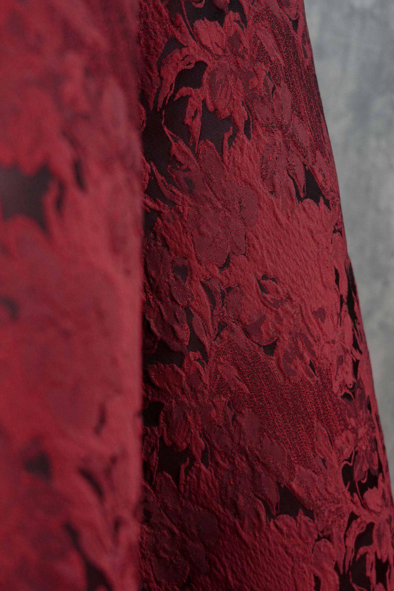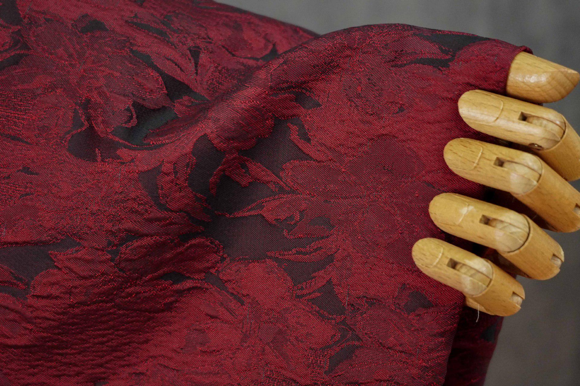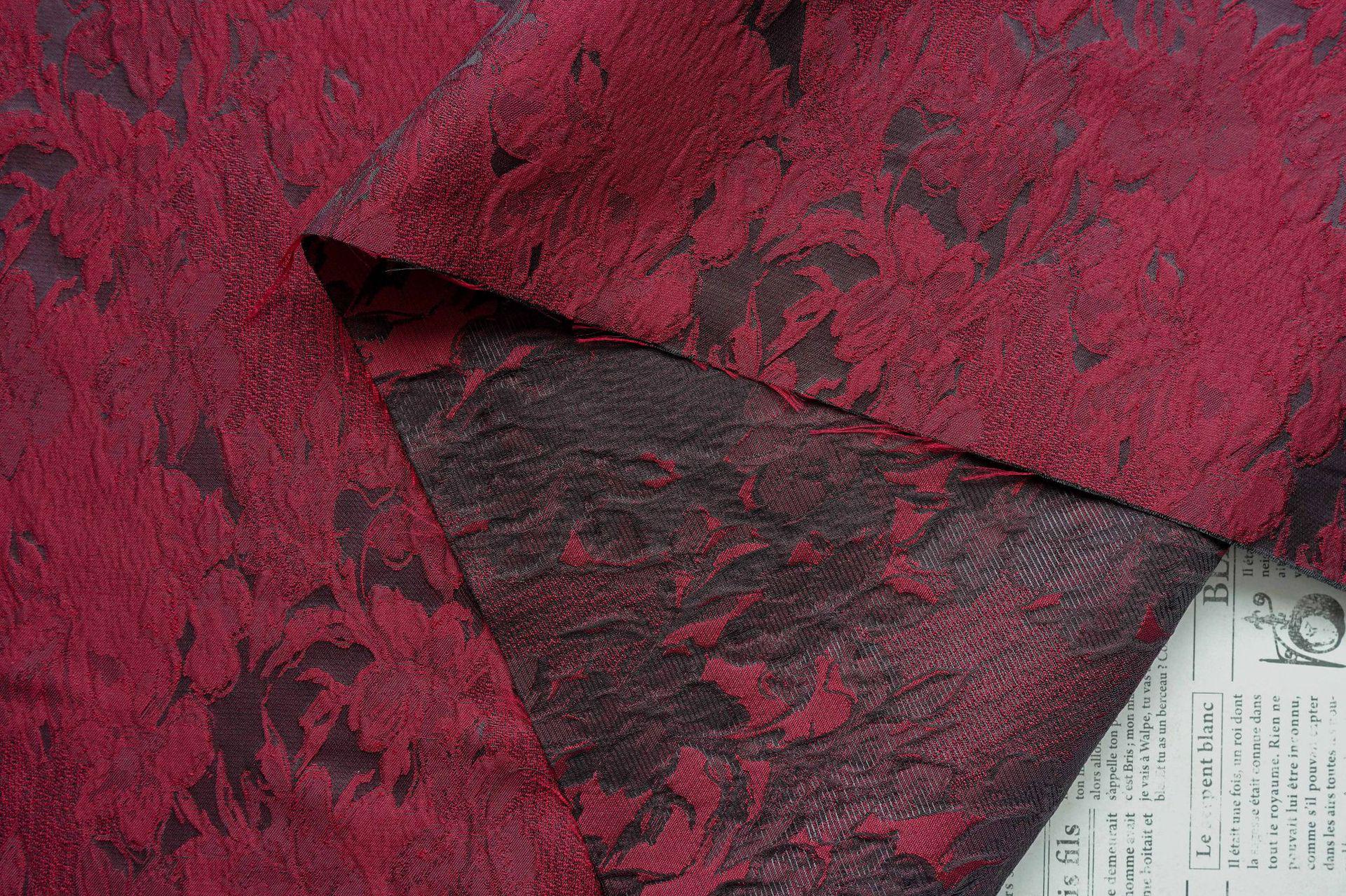 Luxurious Vintage Dark Red 3D Floral Woven Jacquard Fabric, 58"Wide