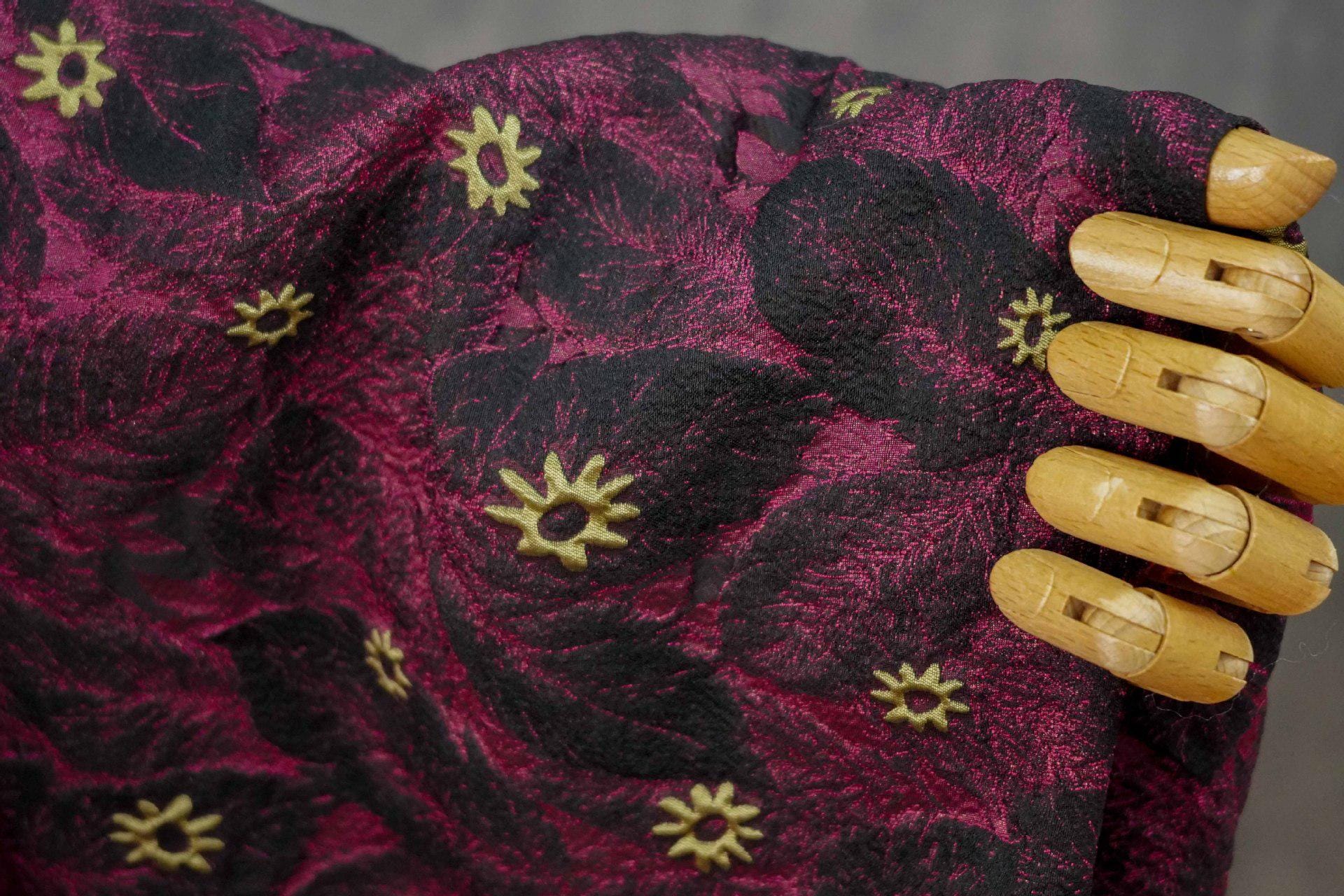 Care instructions: we suggest to do hand-washing, always use cool water and a mild detergent. Never scrub vigorously, wring or twist the garment. Extra care should be taken when laundering the fabric to prevent snagging and to protect the long floating threads that form the design and give brocade its lovely finish from breakage.