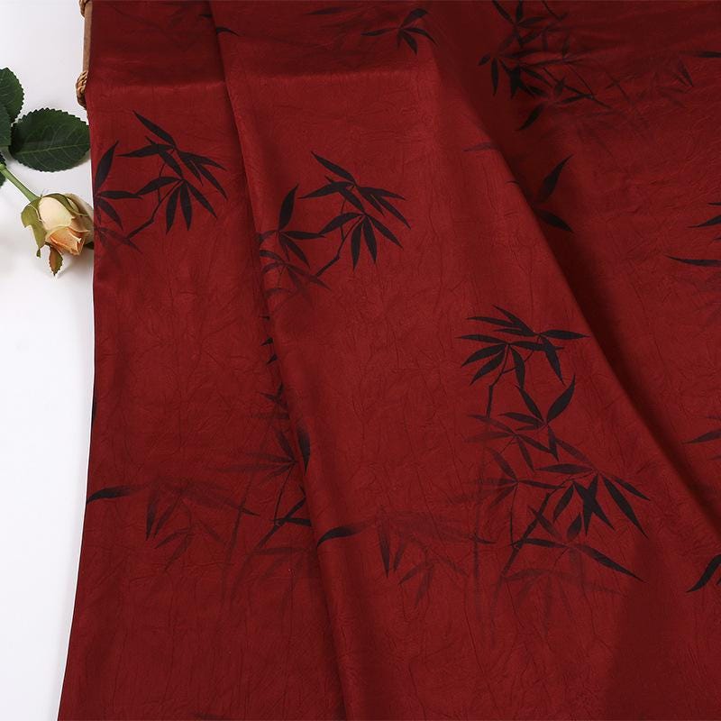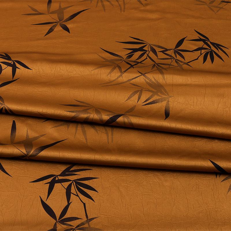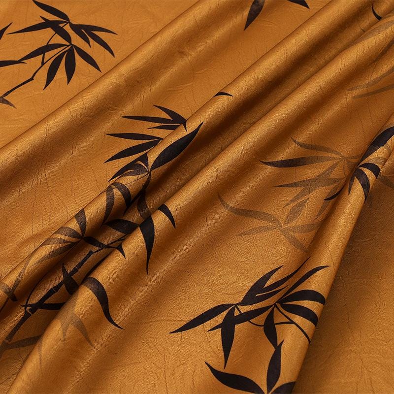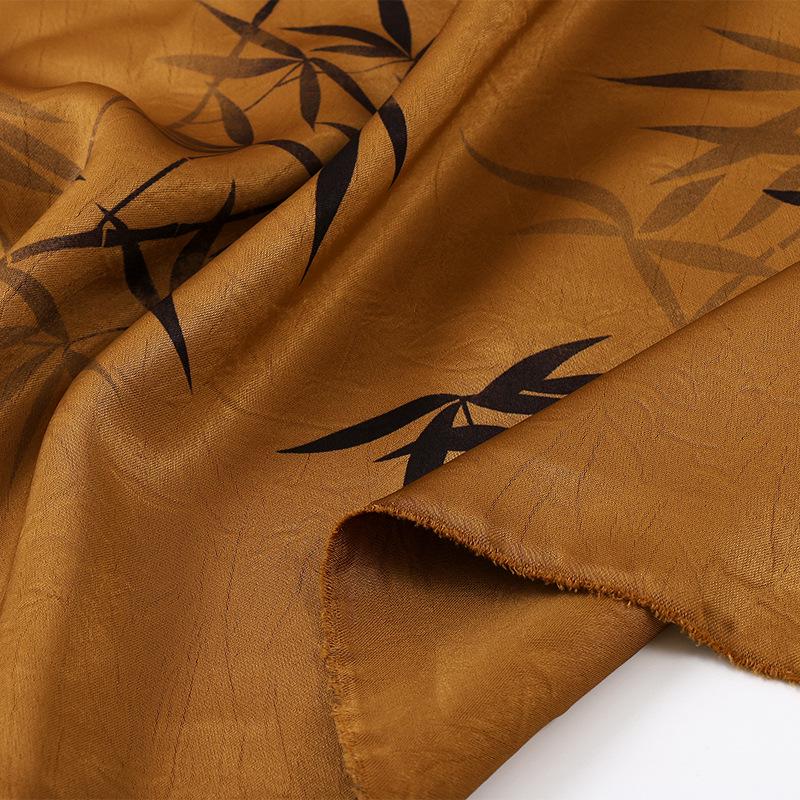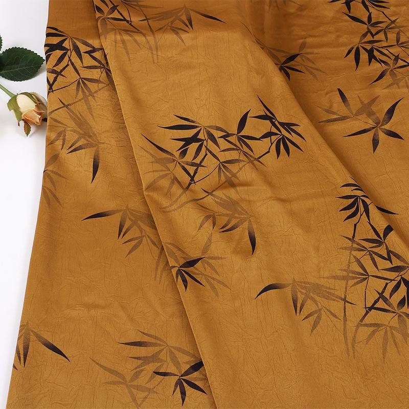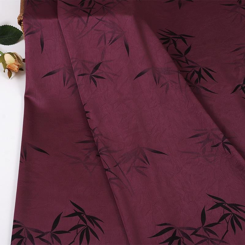 Oriental-Inspired Bamboo Leaf Brocade Fabric with Shimmering Silk-Like Texture, 59"Wide