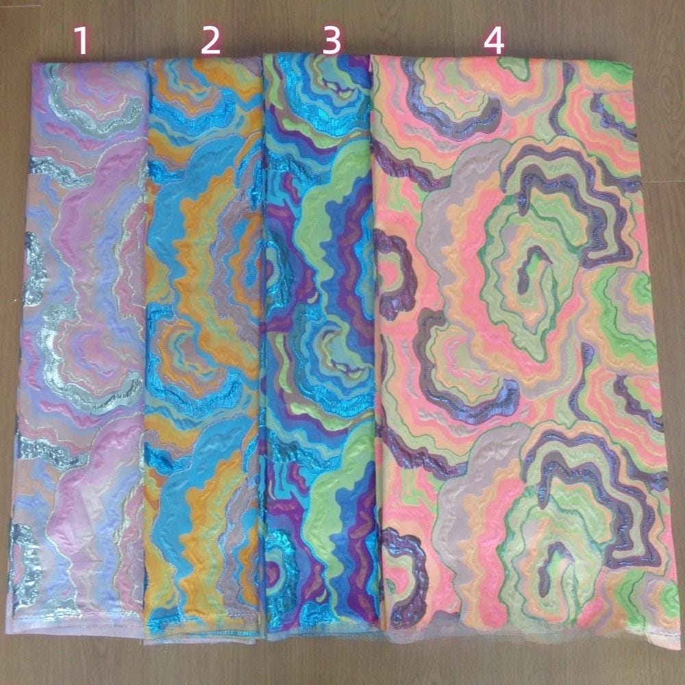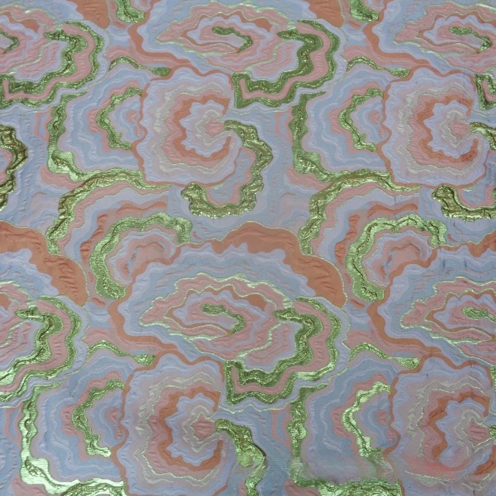 Gold Thread Jacquard Multicolor Floral Fabric – Elegant Large-Scale Pattern for Dresses & Gowns, 12 colors to choose, 59"