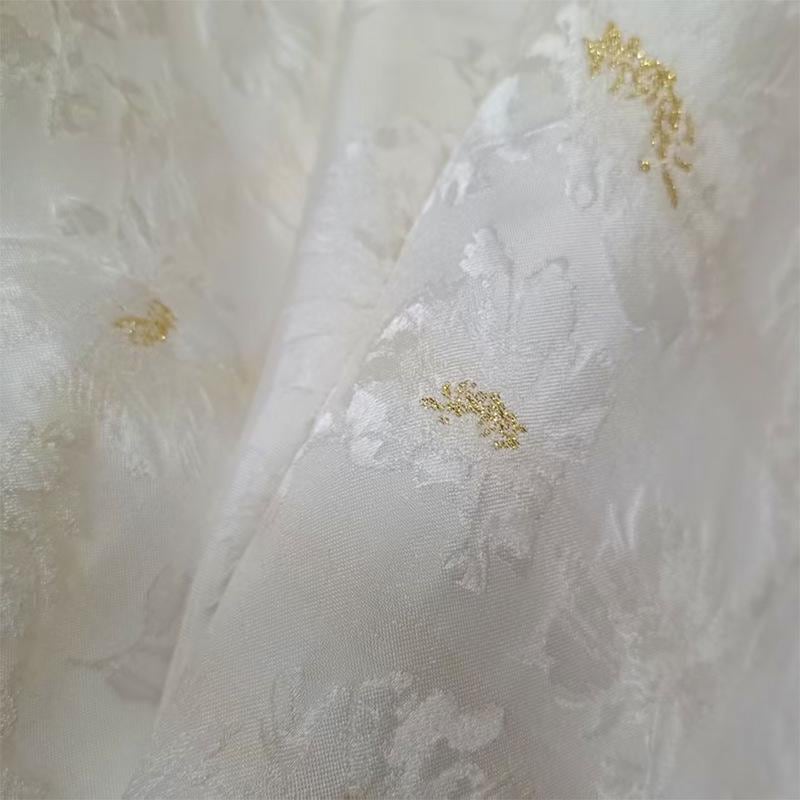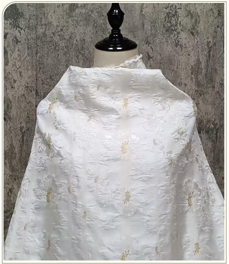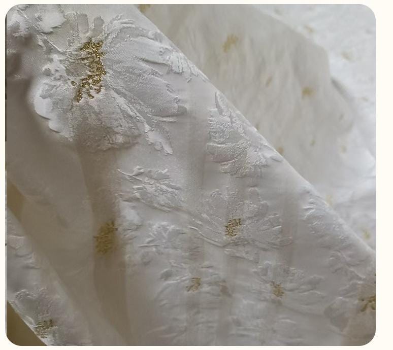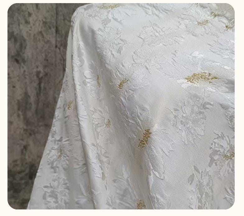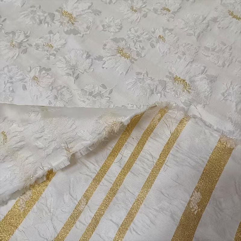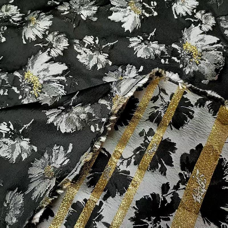 Gold Thread Floral Jacquard Brocade Fabric: 63" Wide