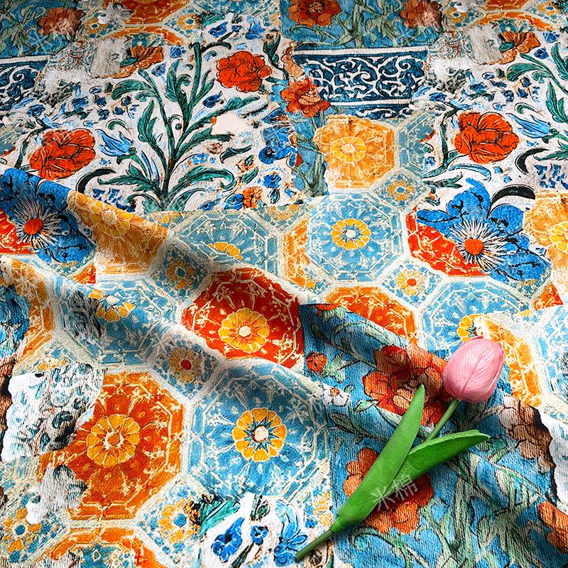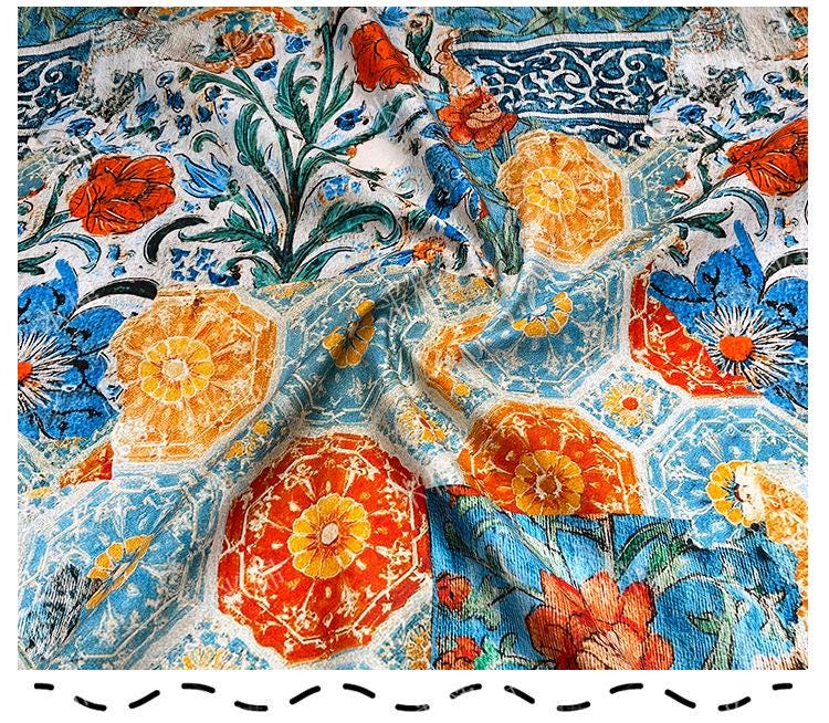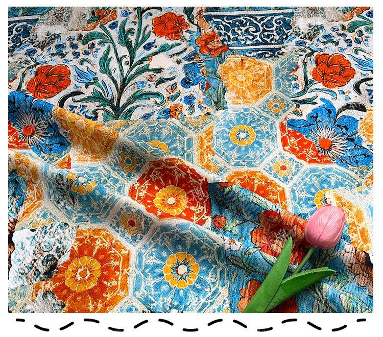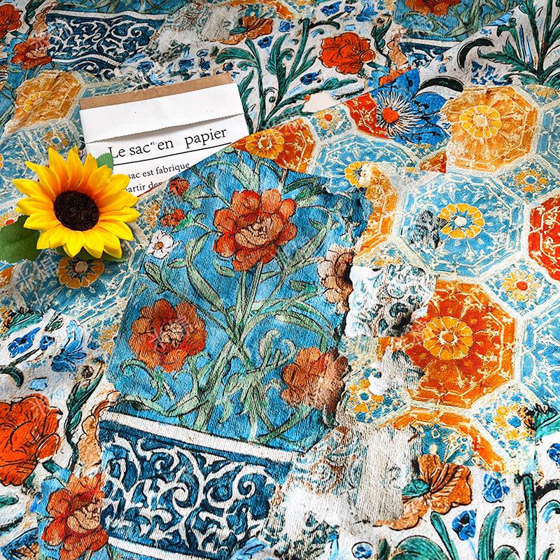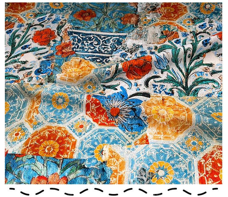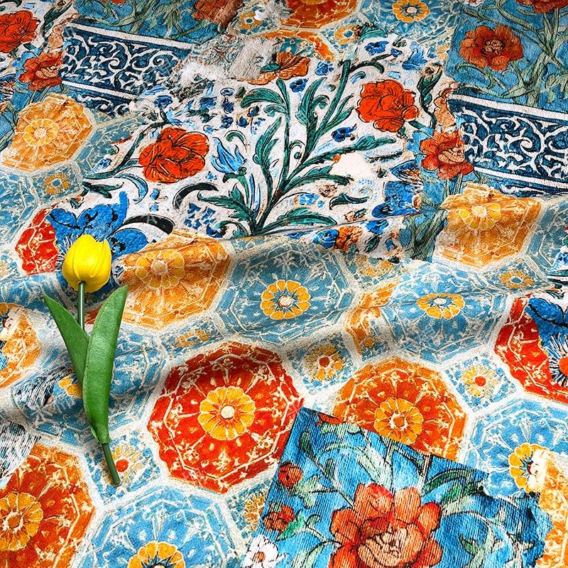 Persian Enamel Floral Cotton Fabric, 20s Digital Print Textile, Soft Quilting & Dressmaking Material by the Yard, 55"Wide