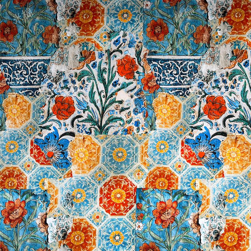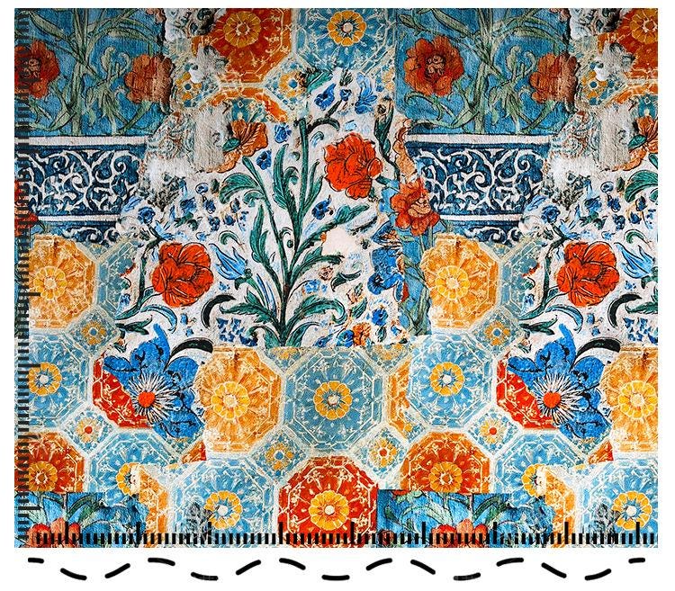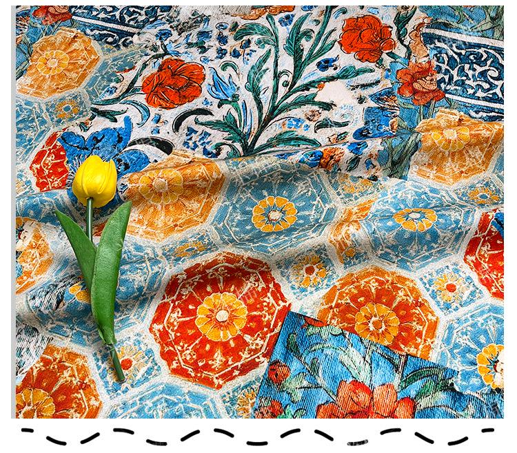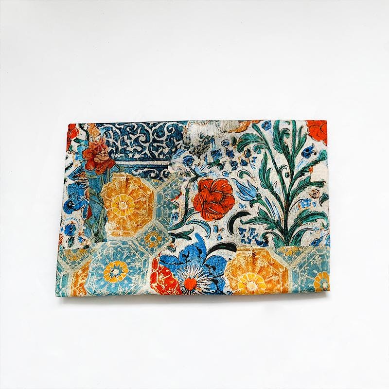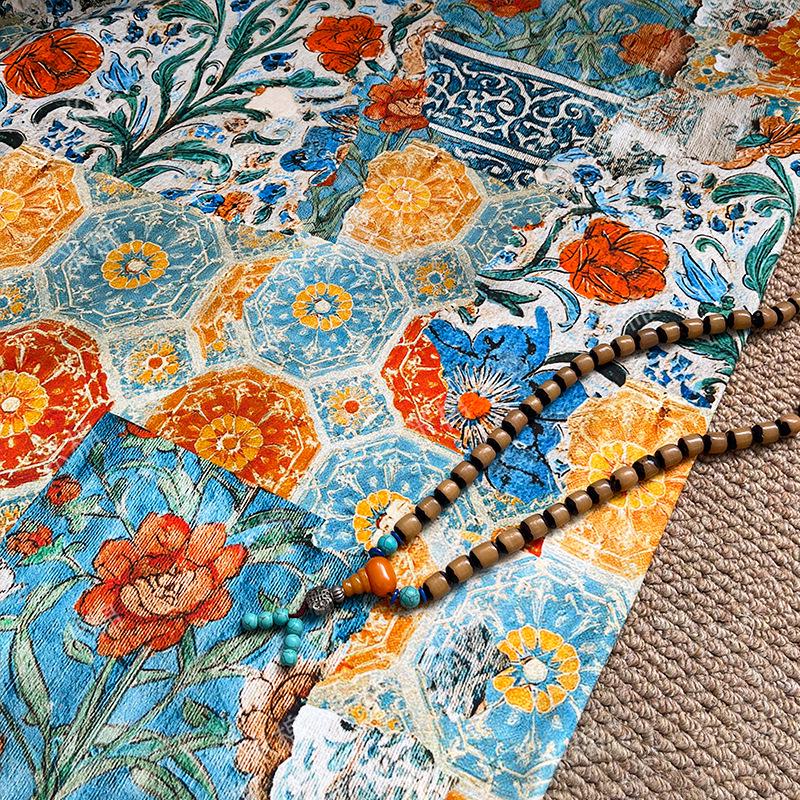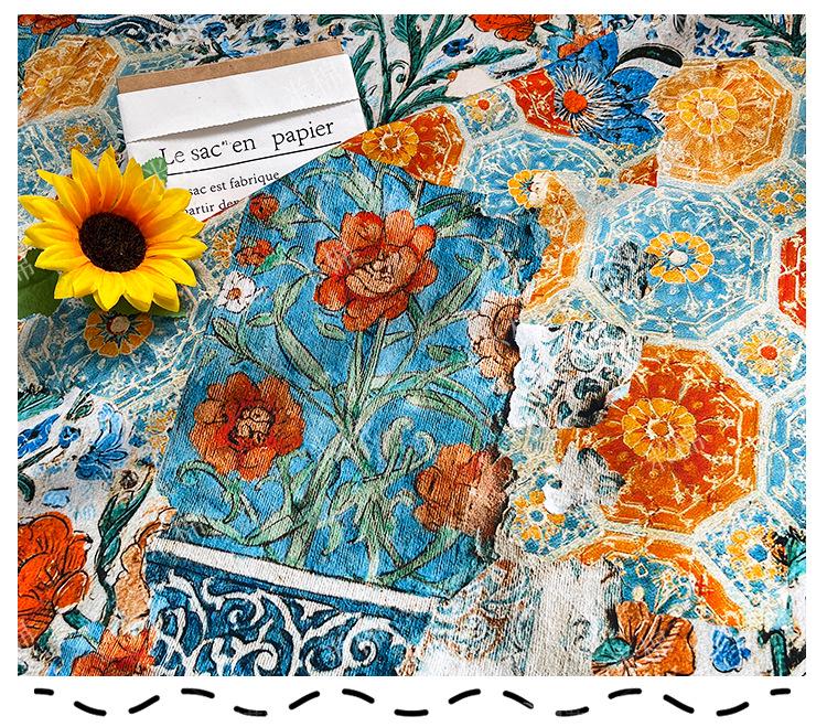 Persian Enamel Floral Cotton Fabric, 20s Digital Print Textile, Soft Quilting & Dressmaking Material by the Yard, 55"Wide