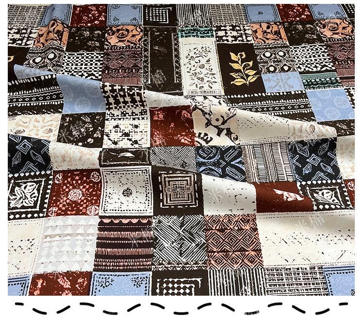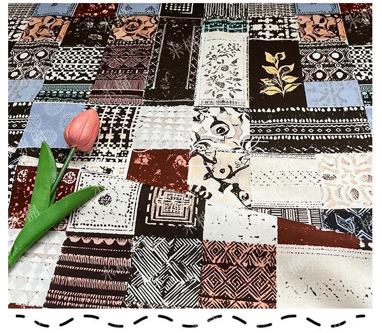 Vintage Collage Cotton Fabric, 100% Cotton 20s Digital Print Quilting Fabric, Retro Art Patchwork Material by the Yard, 55"W
