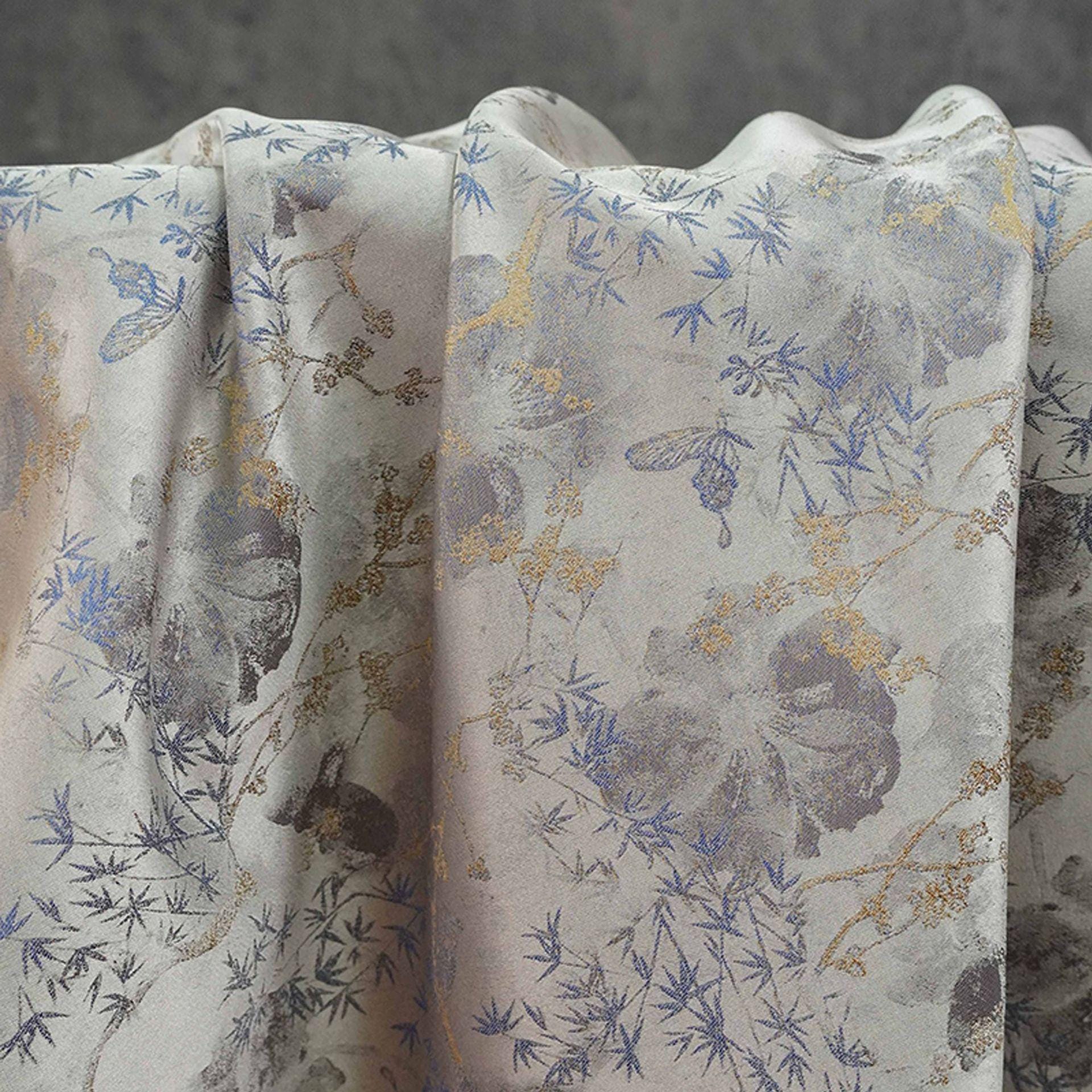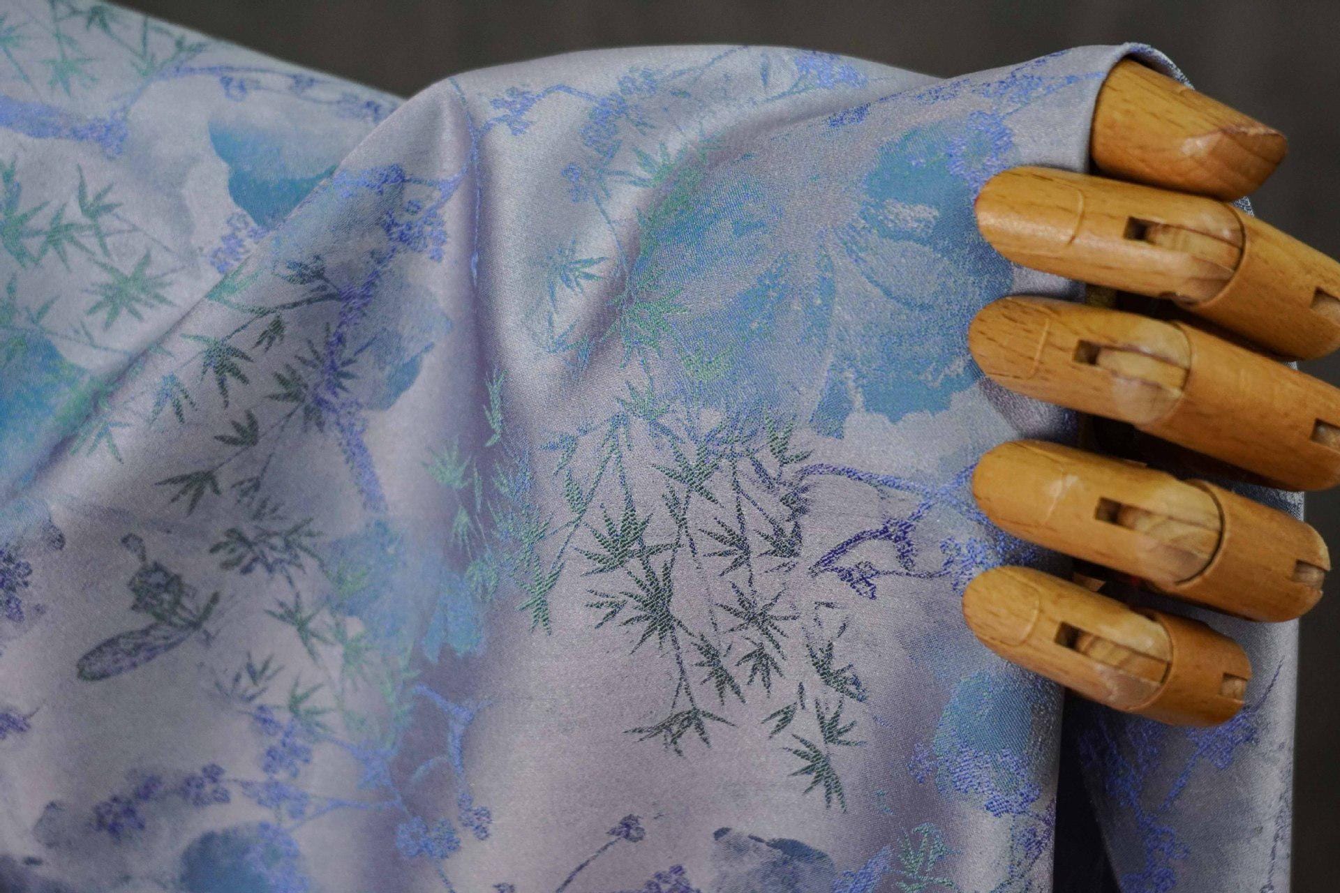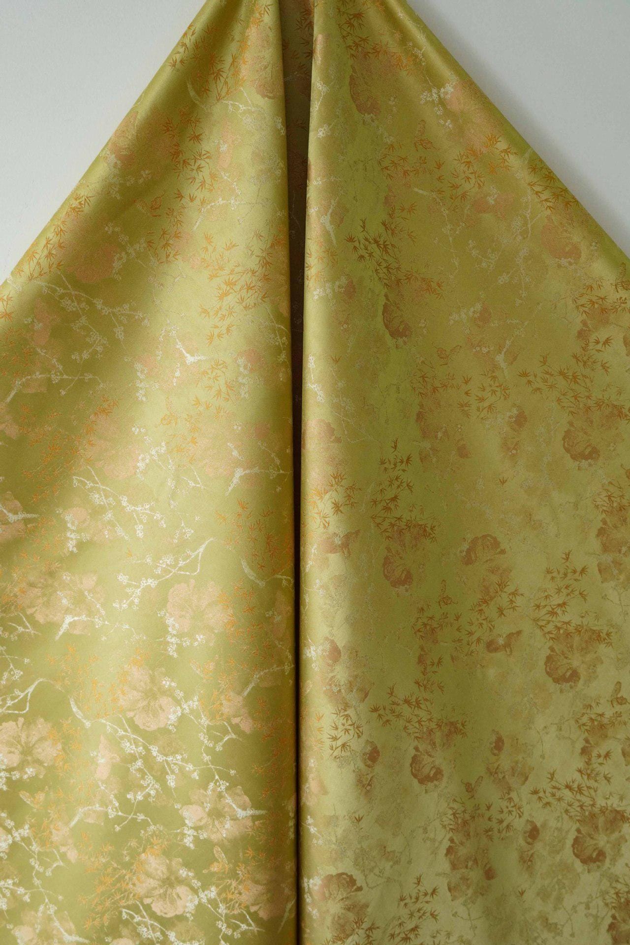 Bamboo Leaf Floral Brocade Fabric – Watercolor Jacquard, 65" Wide