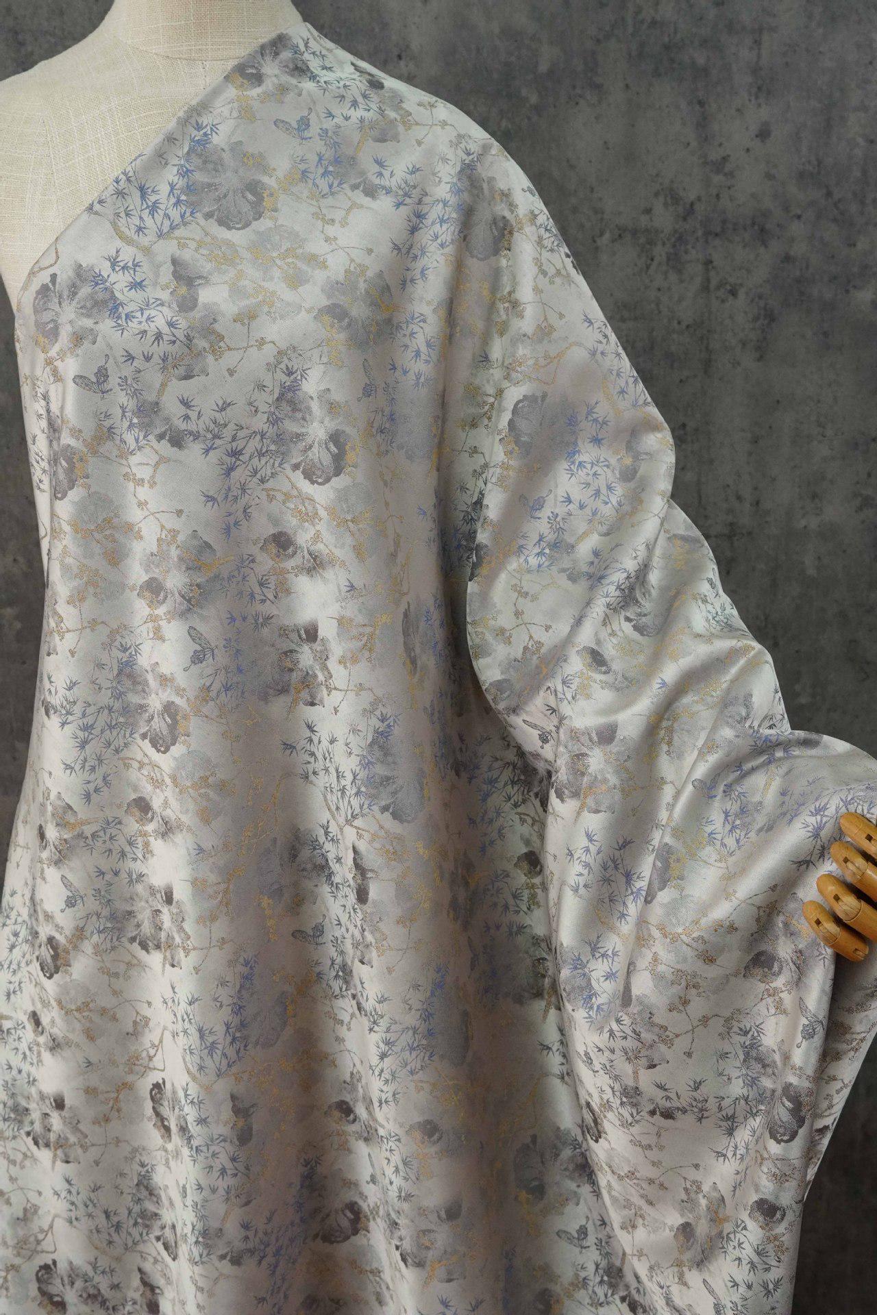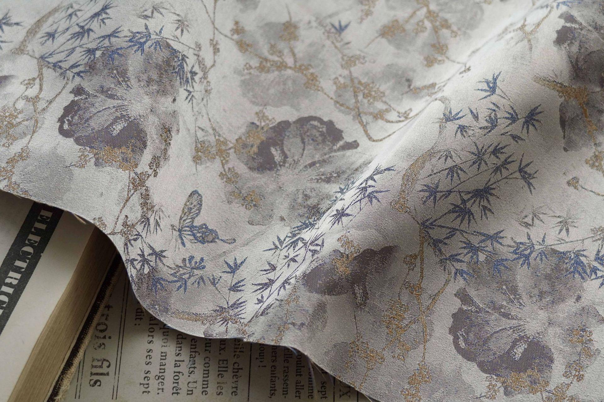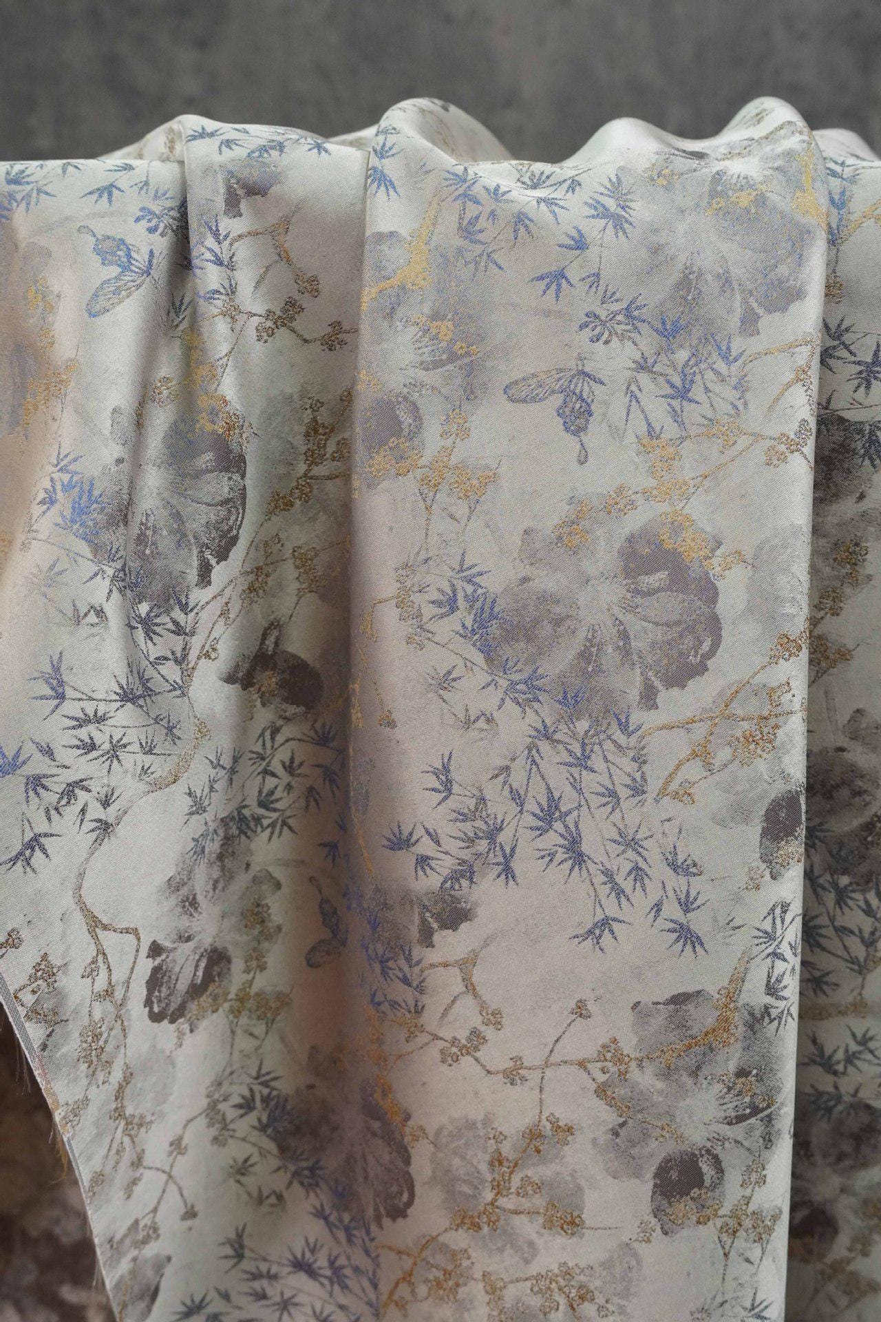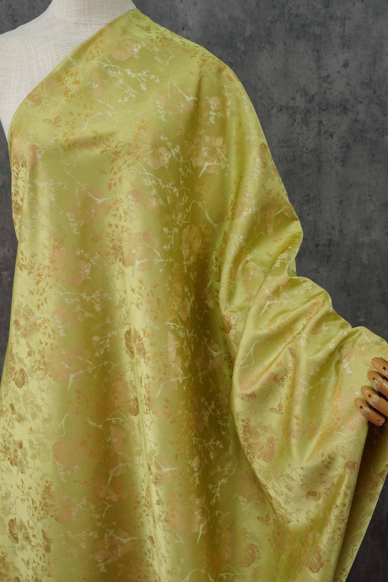 Bamboo Leaf Floral Brocade Fabric – Watercolor Jacquard, 65" Wide