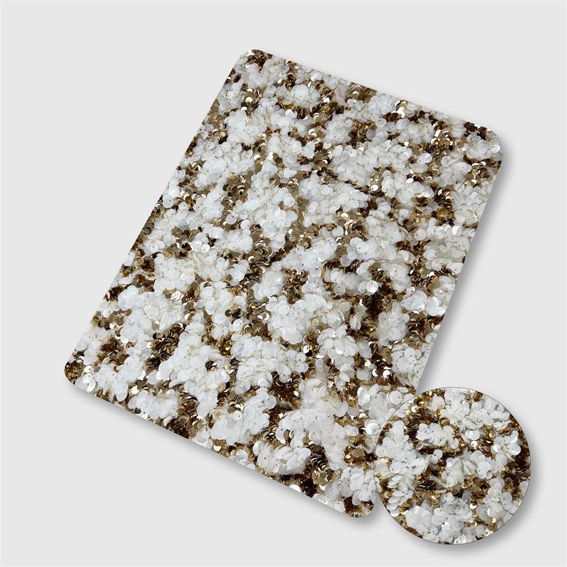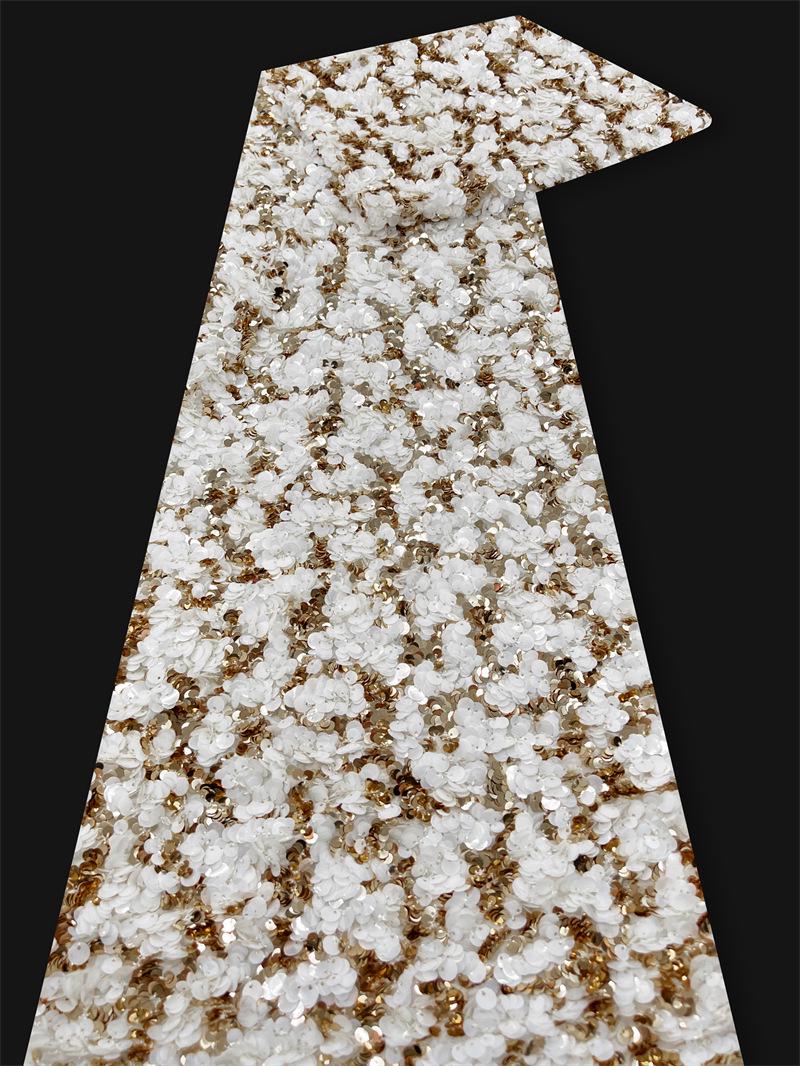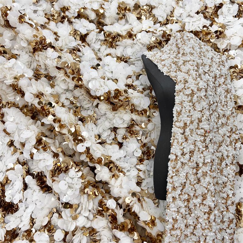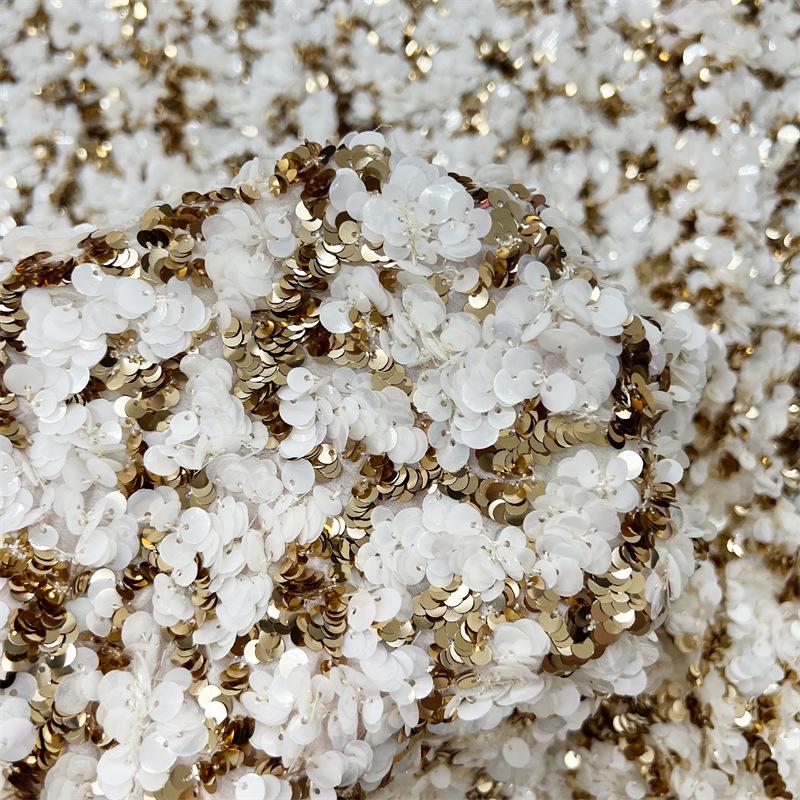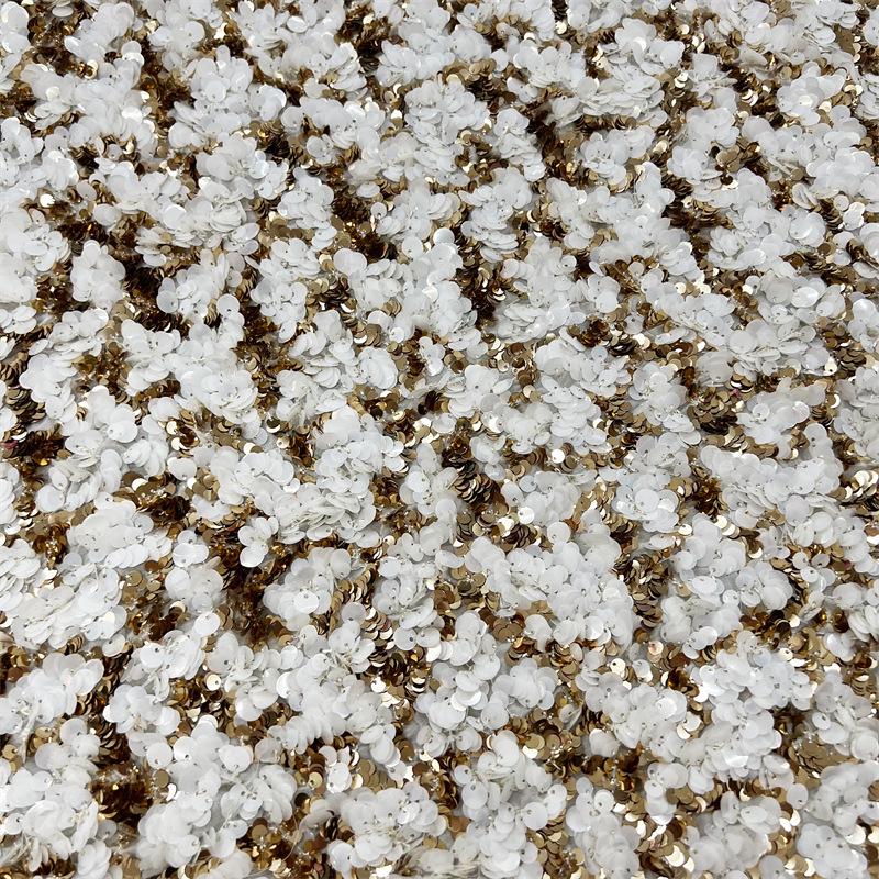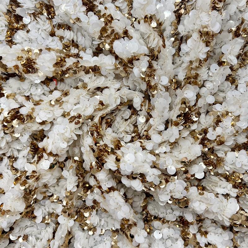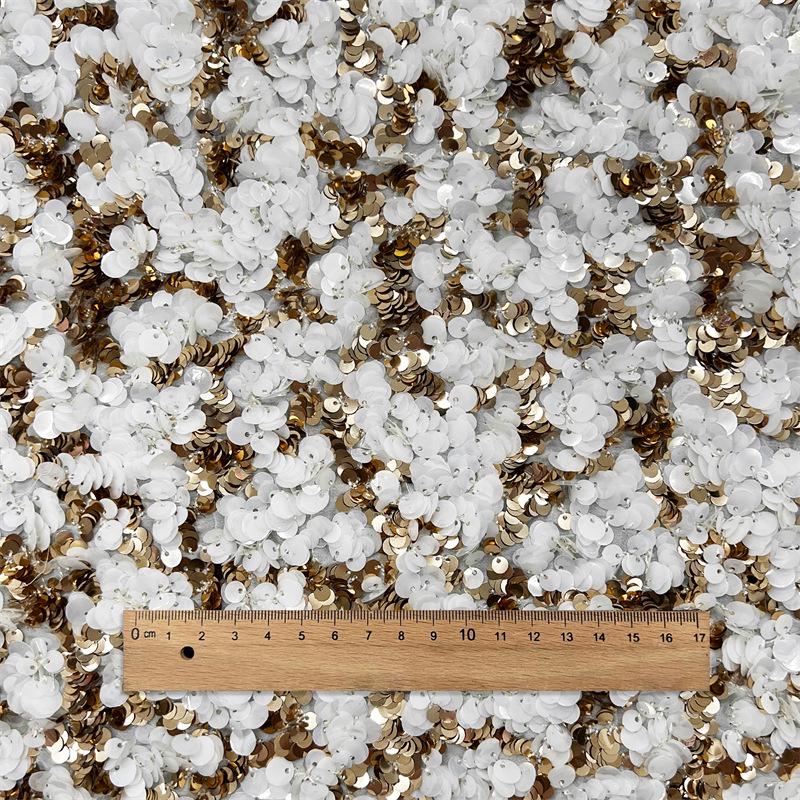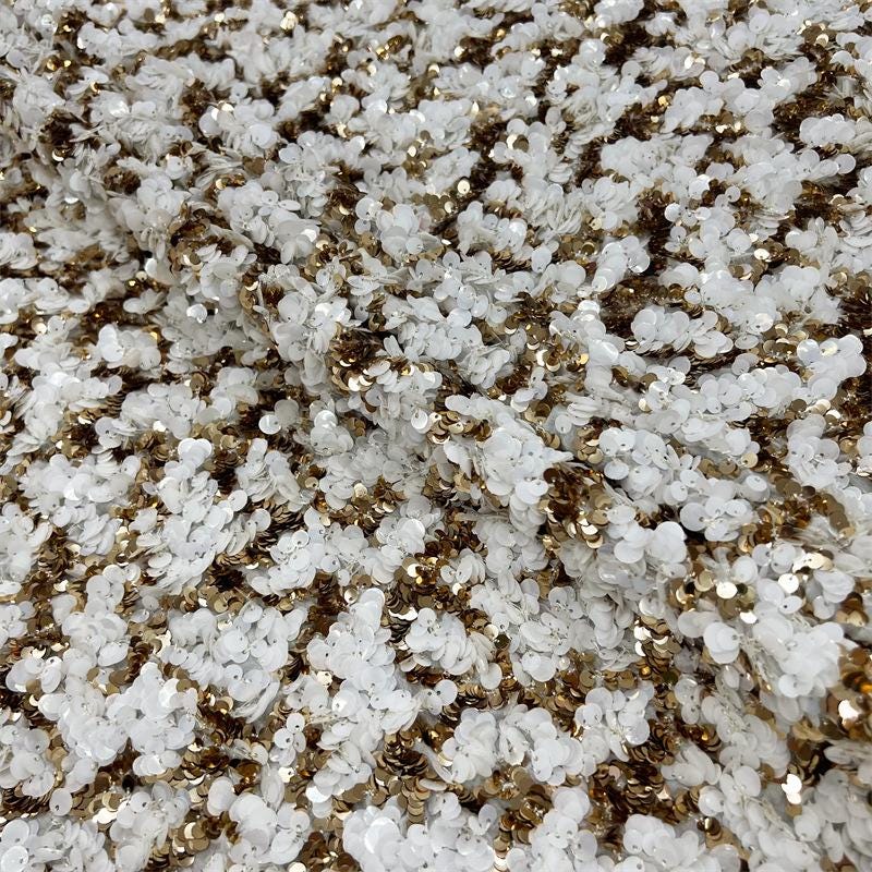 Luxury Dense Gold Sequin Lace Fabric | Cream Mesh Embroidered Sequin Tulle | Bridal Dress Fabric, Wedding Gown, Evening Dress Fabric, 51" W