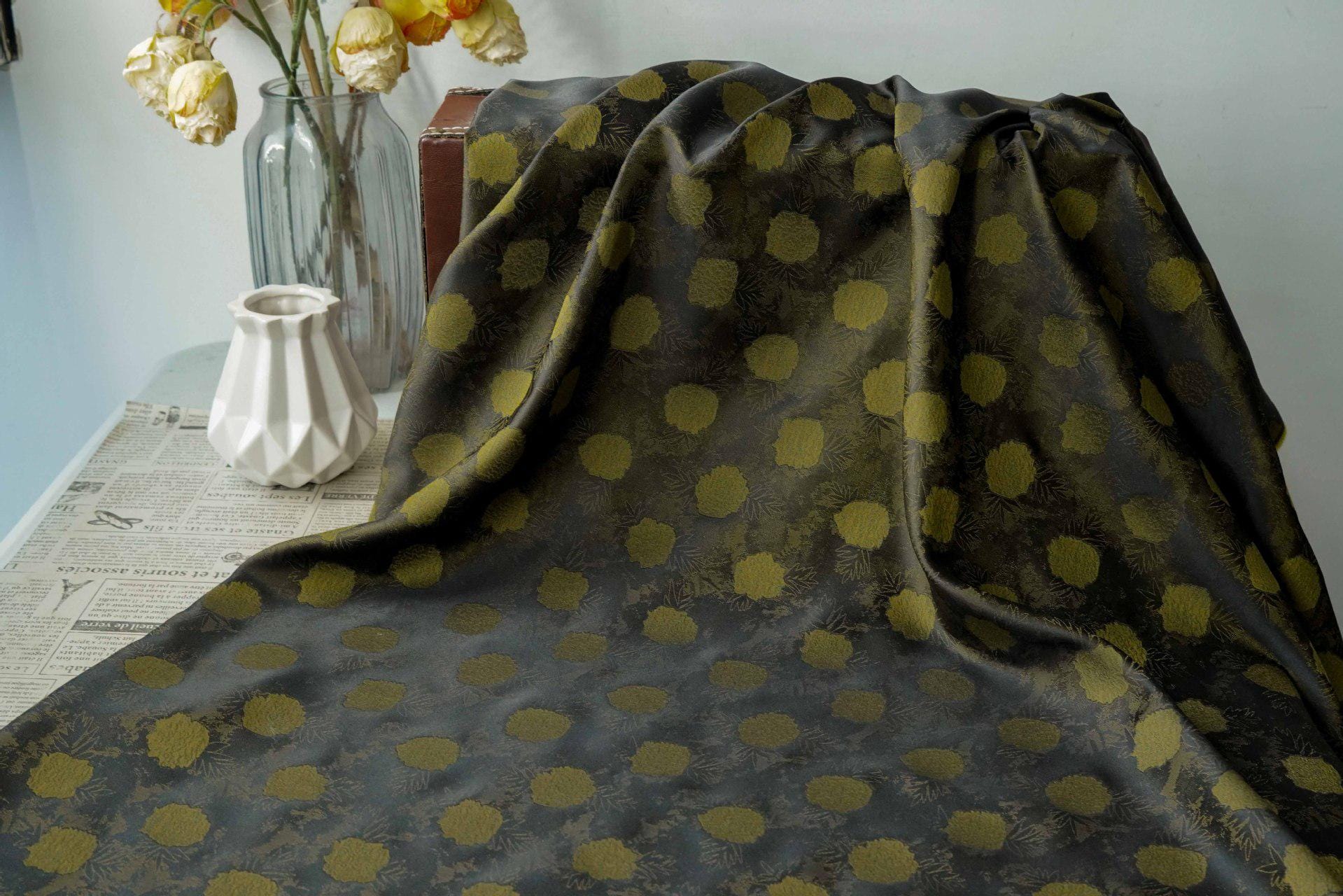 Vintage Floral Jacquard Fabric | Dark Embossed Pattern, 59"