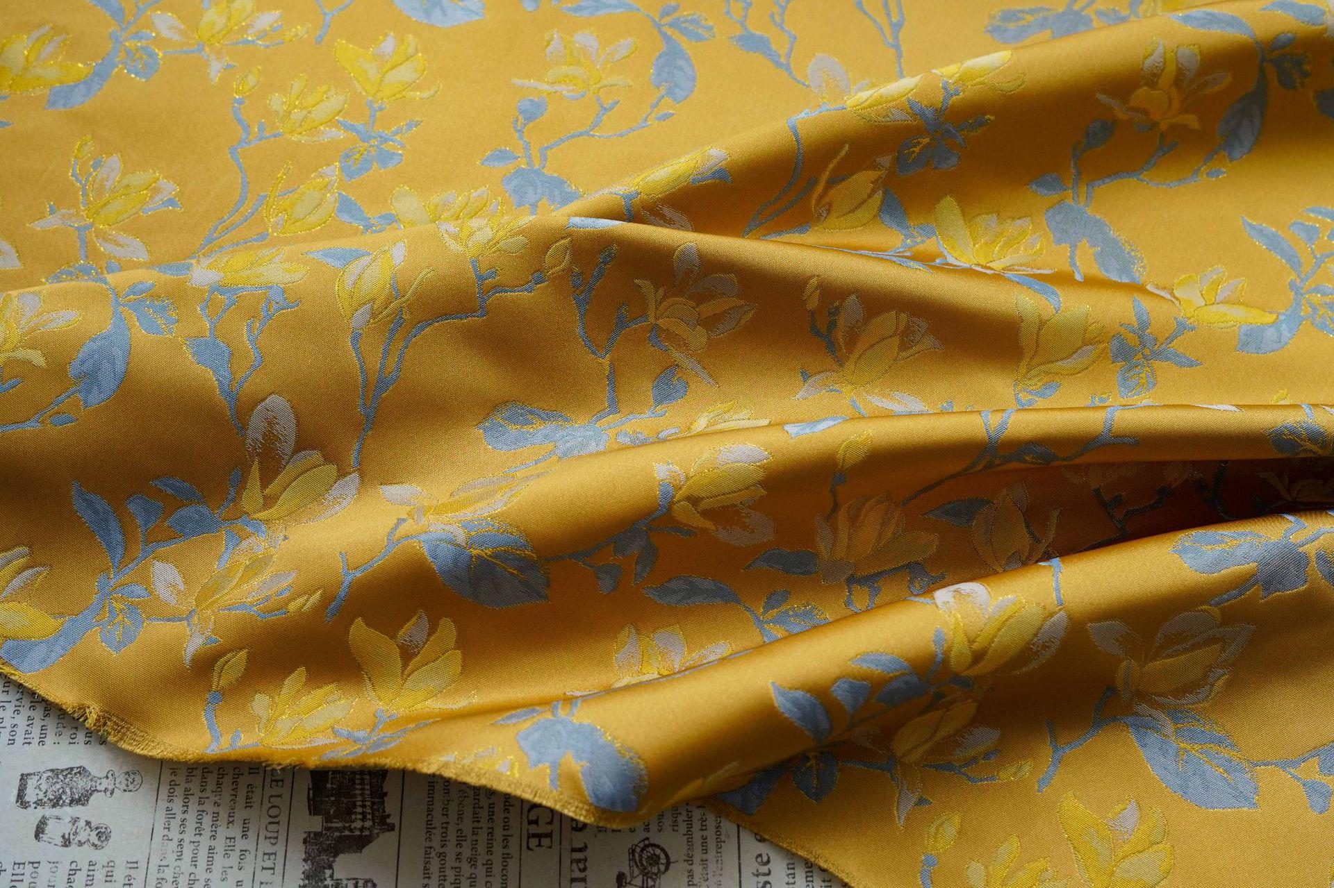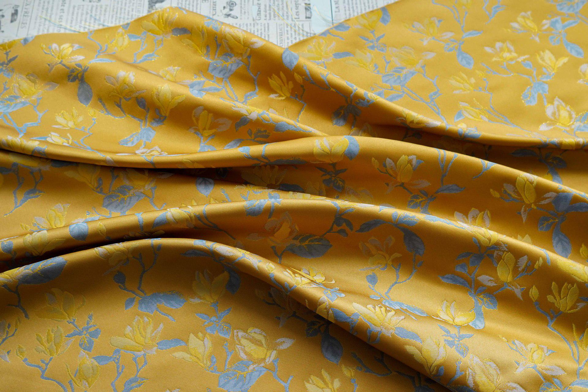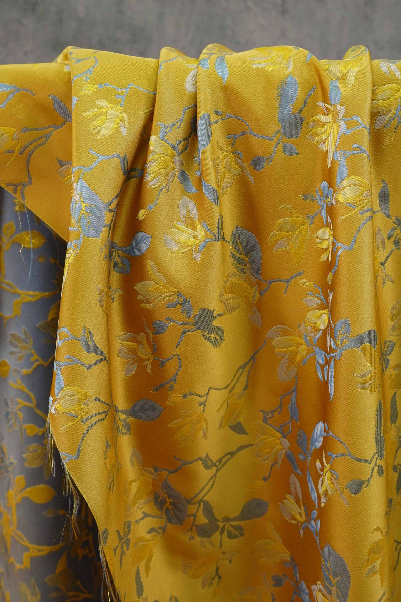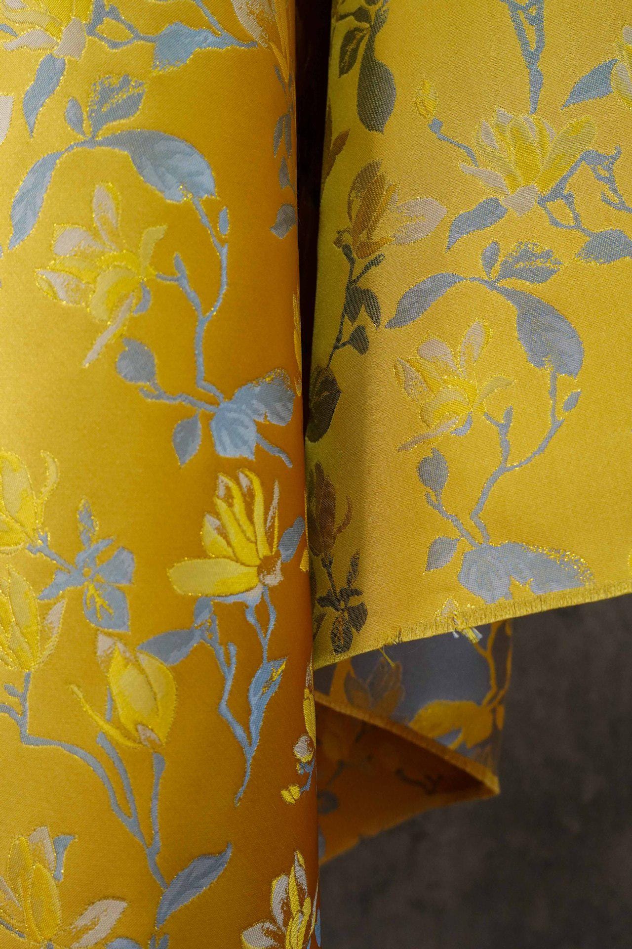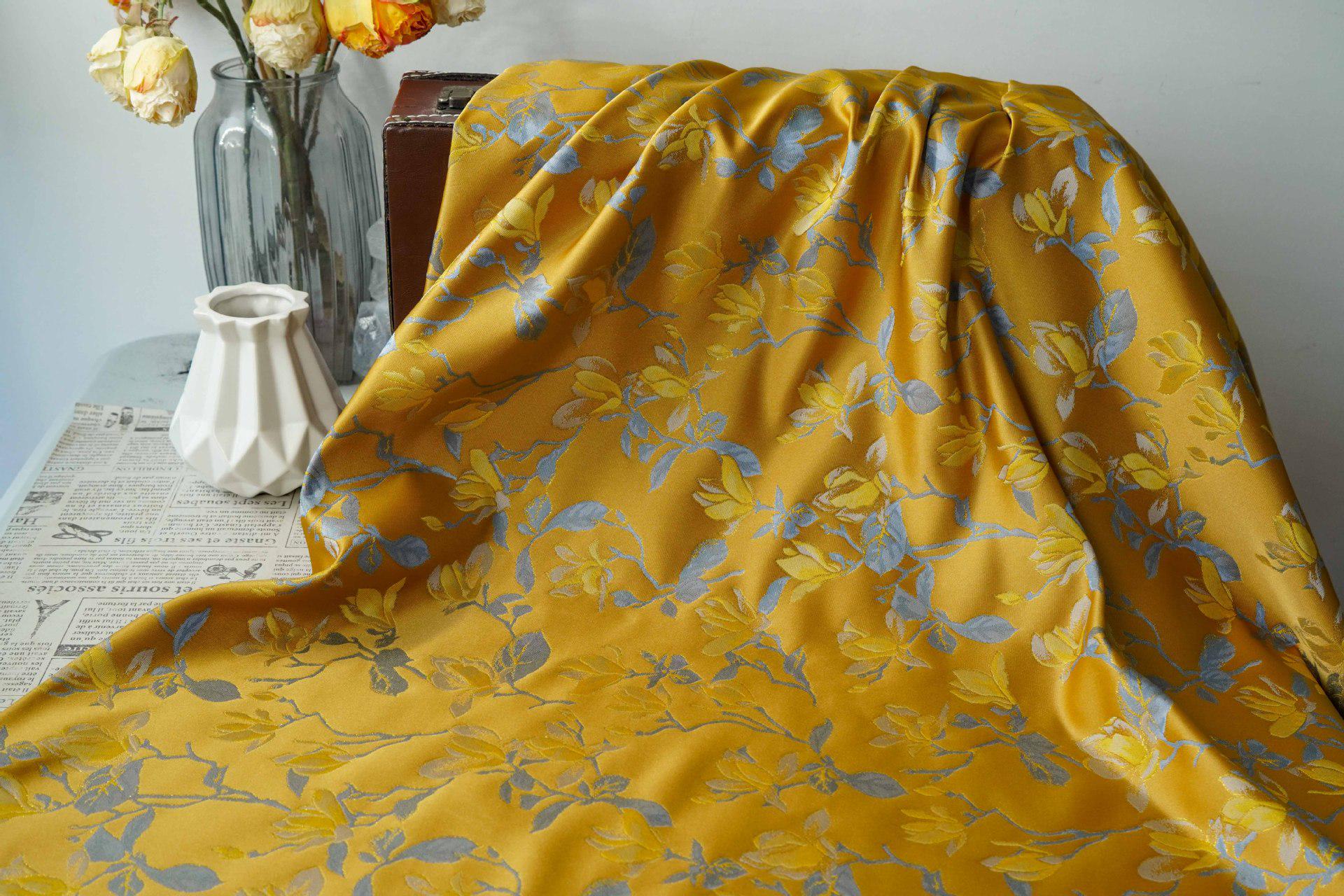 Yellow Magnolia Double-Sided Jacquard Upholstery Fabric – Elegant Home Decor Material by the Yard, 59"Wide
