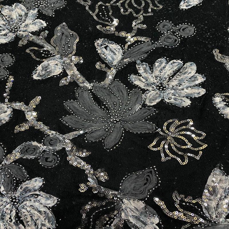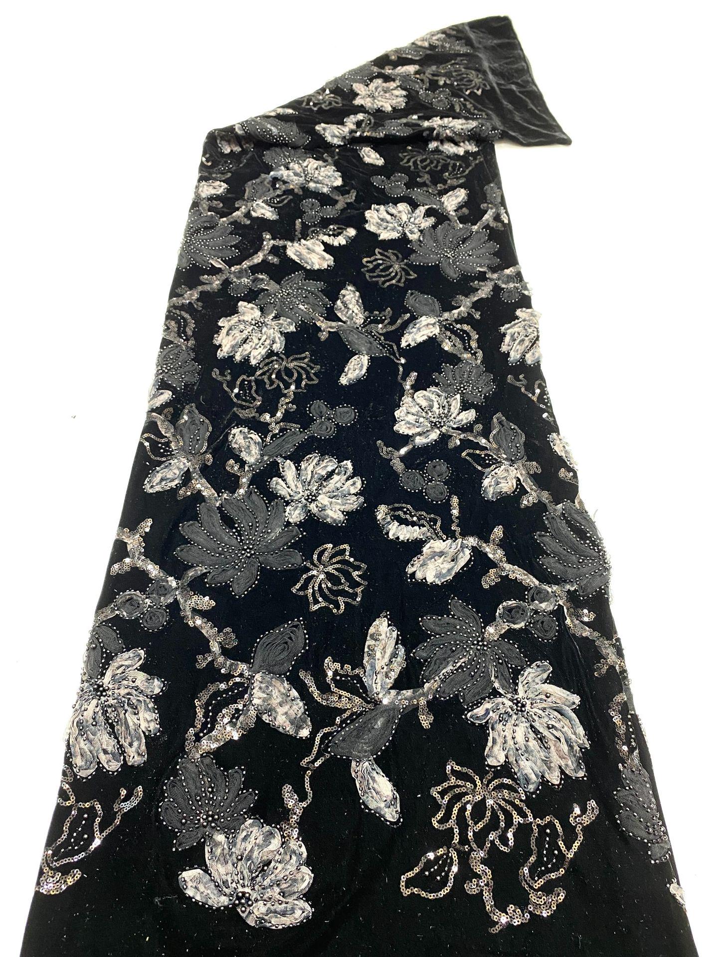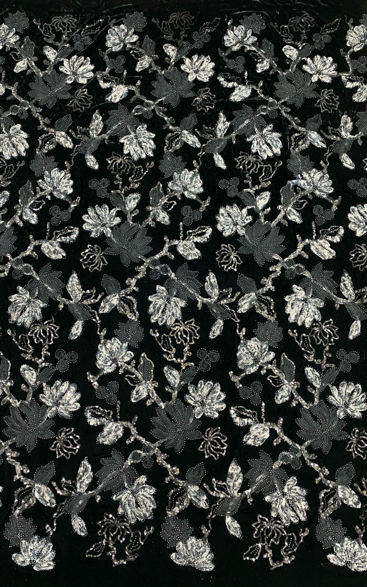 50“W Velvet Lace Trimmed Blazer with Beaded Embroidery and Sequins - Bridal Jacket, Wedding Reception Blazer, Formal Wear