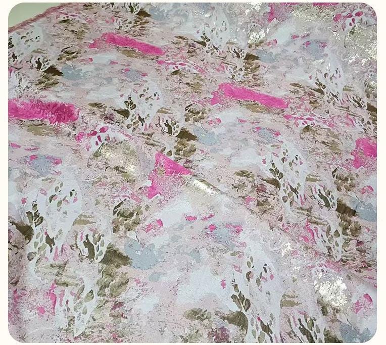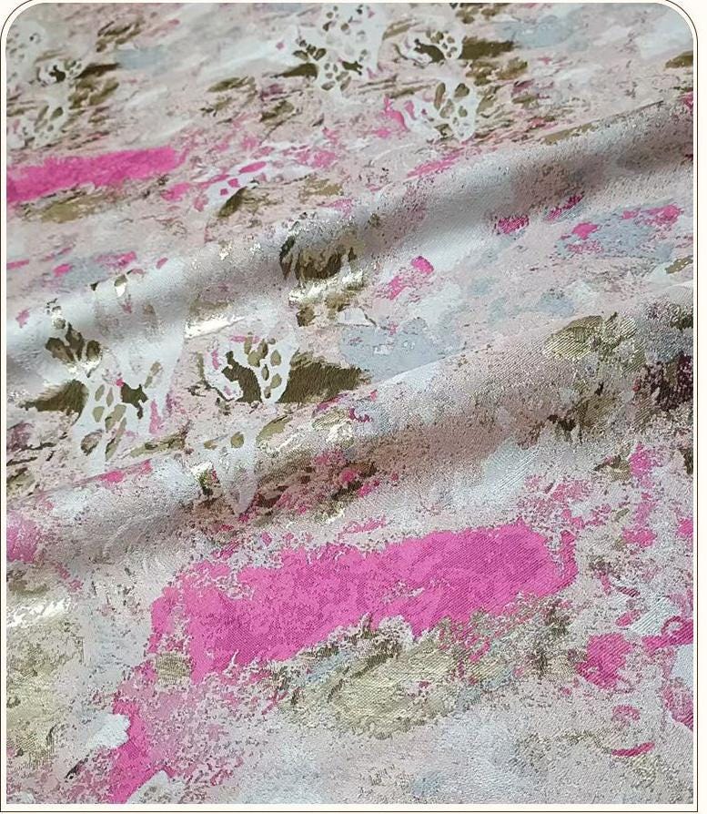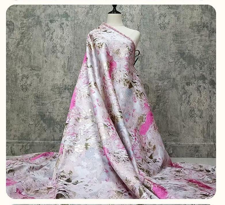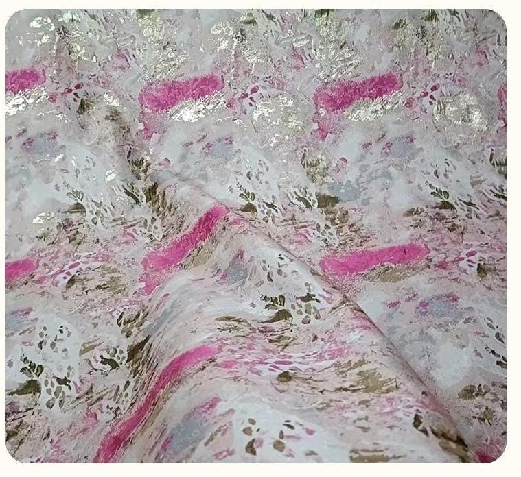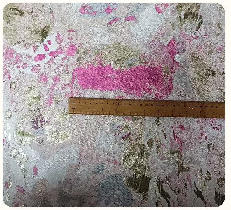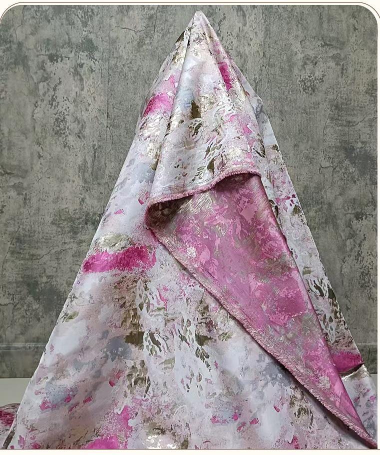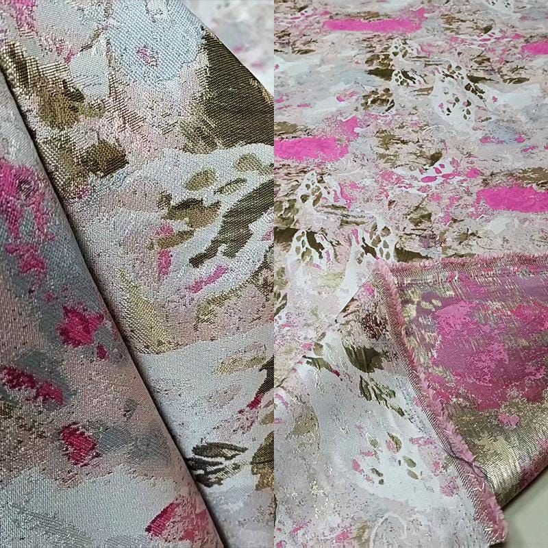 Pink Gold Abstract Jacquard Fabric • Color-Woven Brocade Material for Dresses, Costumes & Home Decor, sell by the meter, 59"Wide