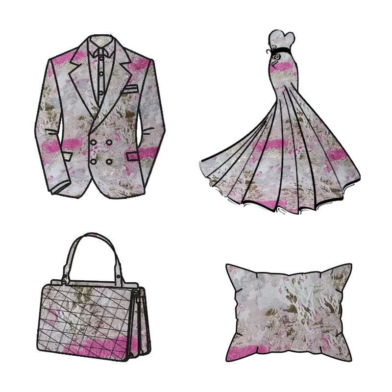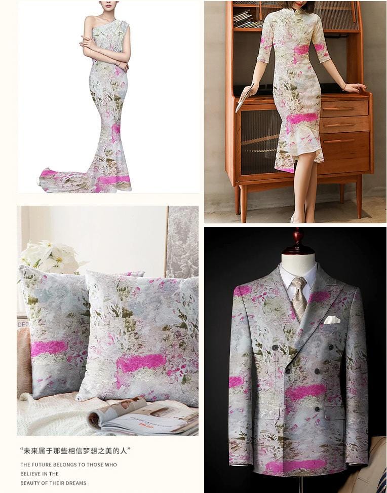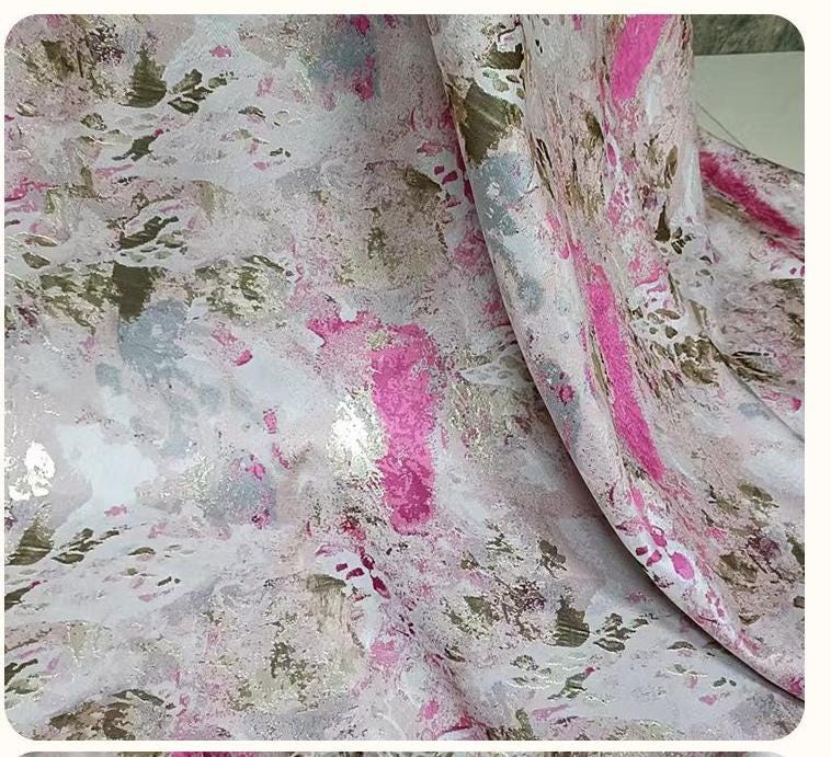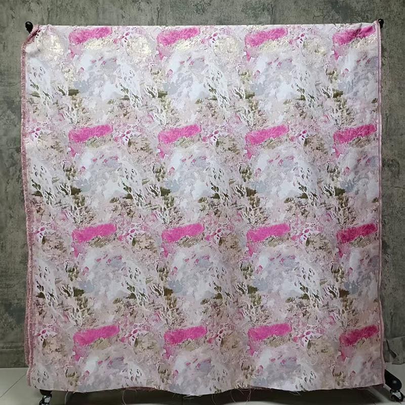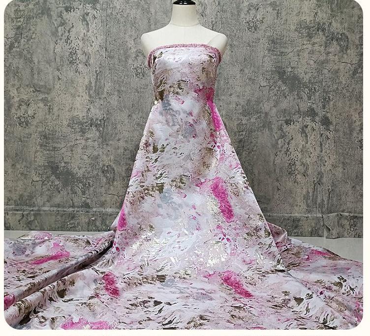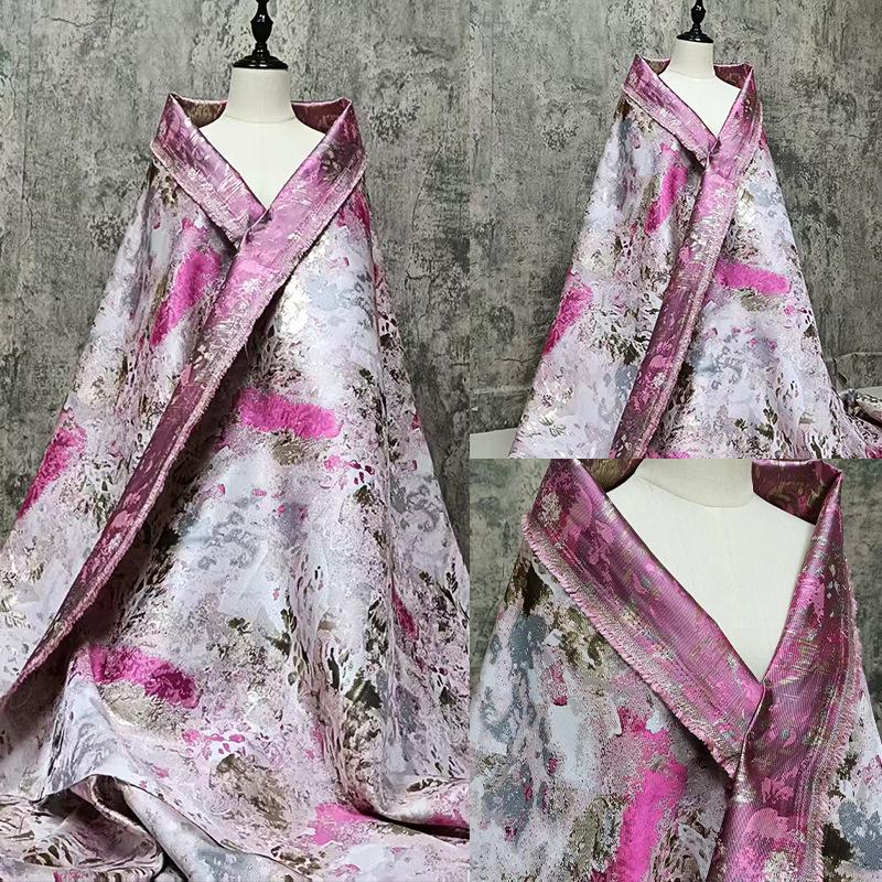 Pink Gold Abstract Jacquard Fabric • Color-Woven Brocade Material for Dresses, Costumes & Home Decor, sell by the meter, 59"Wide
