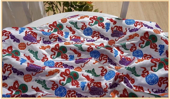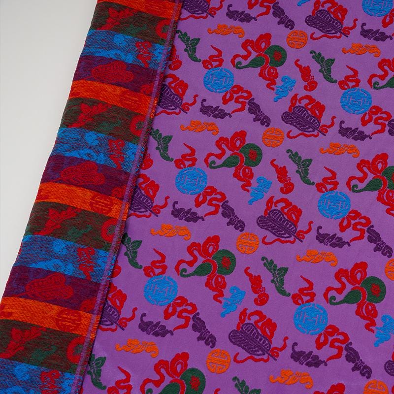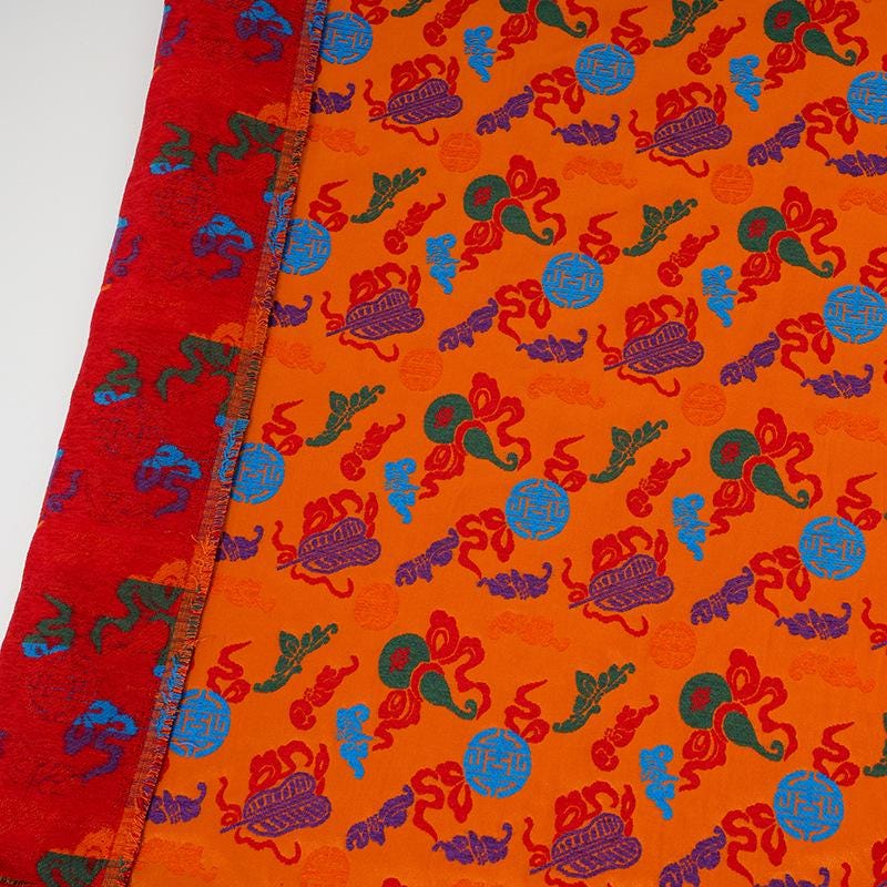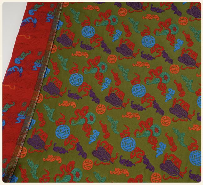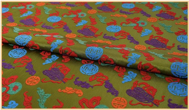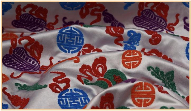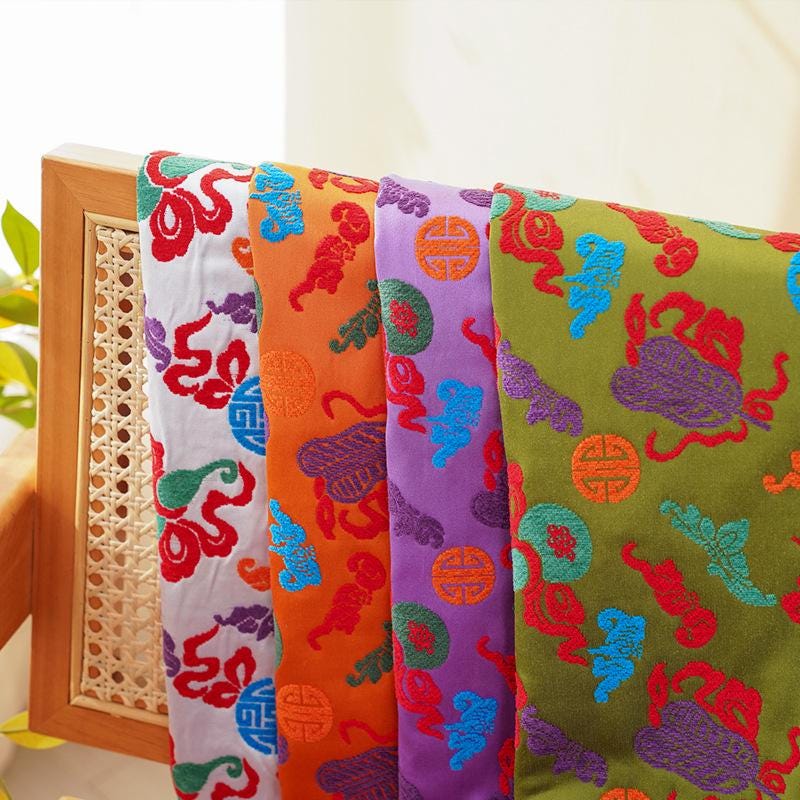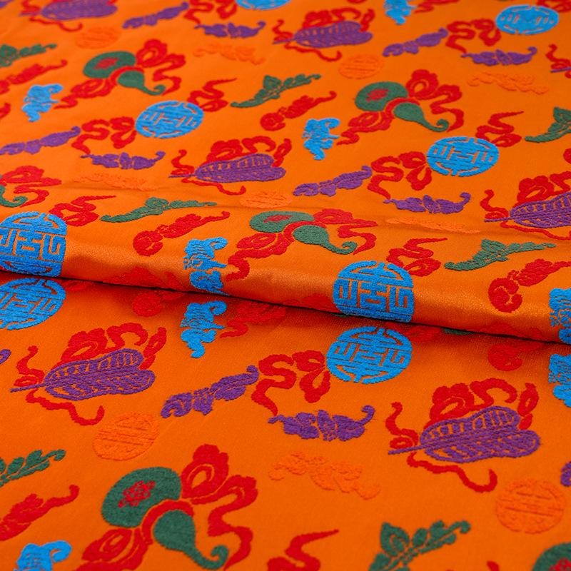 Chinese Traditional Multicolor Gourd Brocade Fabric – Vintage Zhangrong Satin Material, 59”Wide