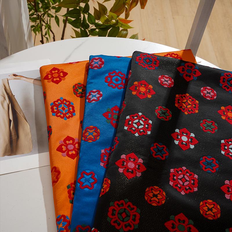 Chinese Brocade Fabric – Colorful Floral Baoxiang Pattern, Traditional Jacquard Velvet Satin for Qipao & Hanfu, 59”Wide