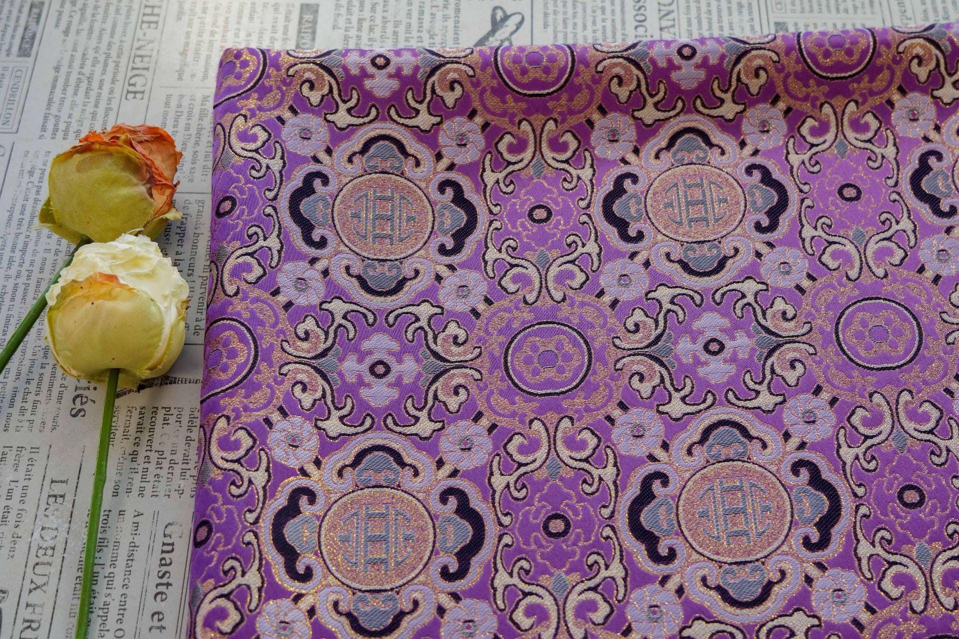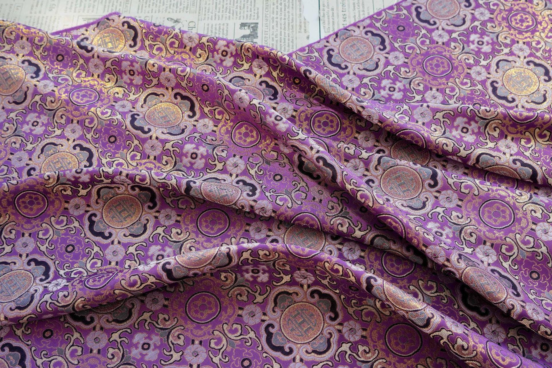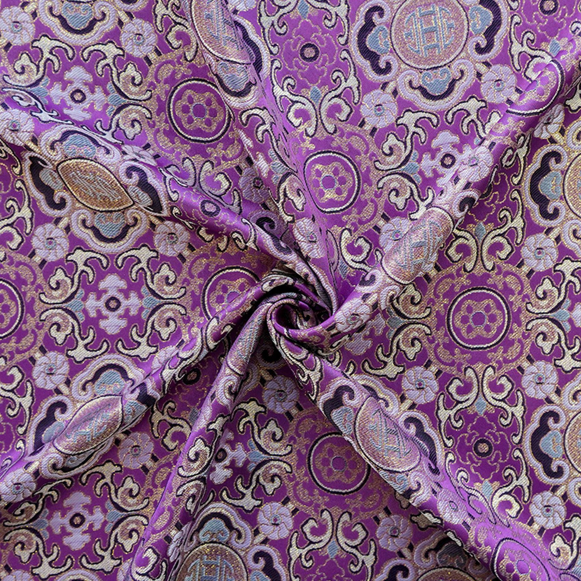 Lucky Auspicious Pattern Gold Thread Jacquard Fabric – Chinese Brocade Material, Sewing & DIY Crafts, 59"Wide
