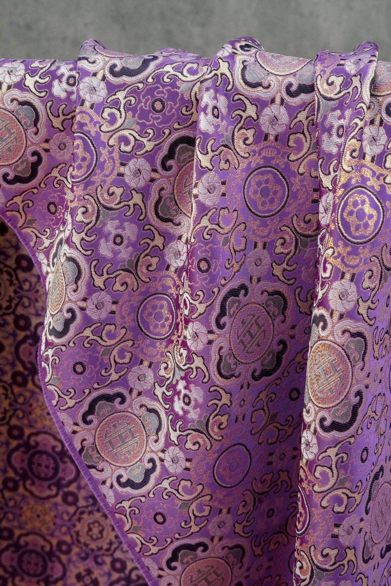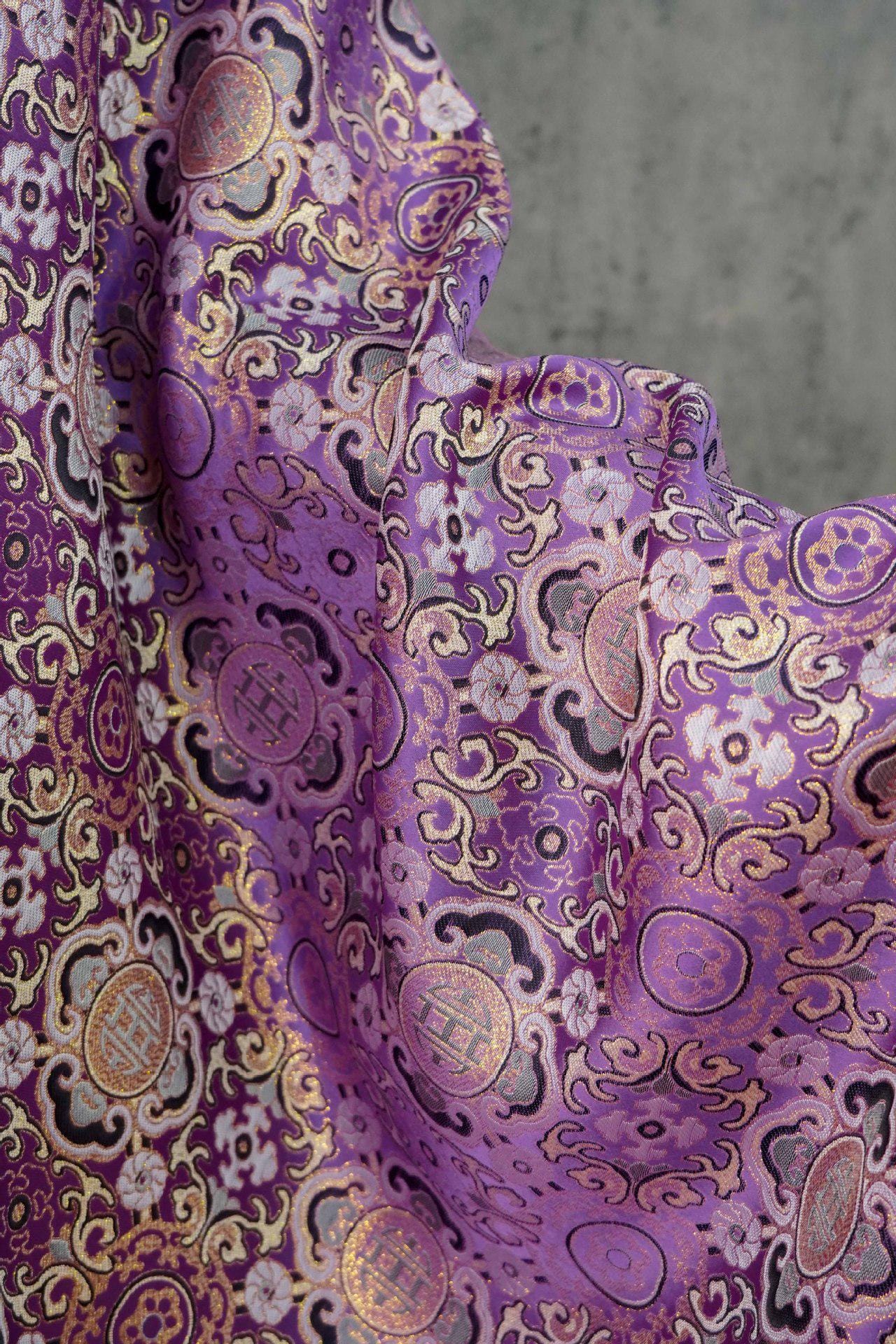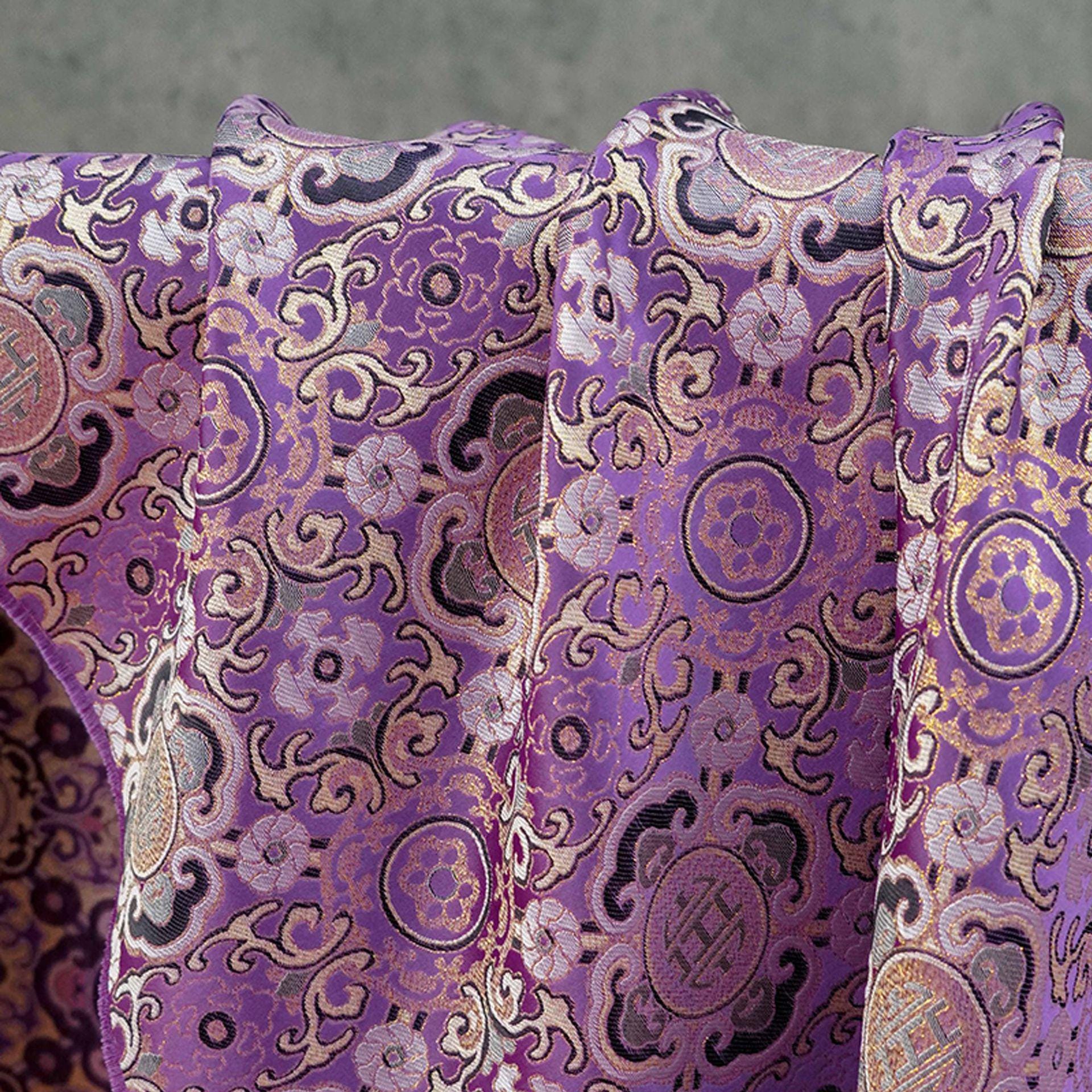 Lucky Auspicious Pattern Gold Thread Jacquard Fabric – Chinese Brocade Material, Sewing & DIY Crafts, 59"Wide