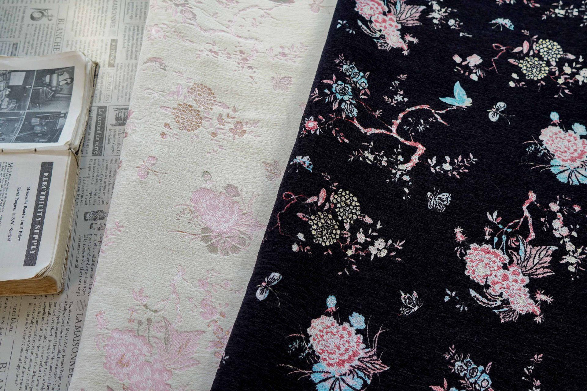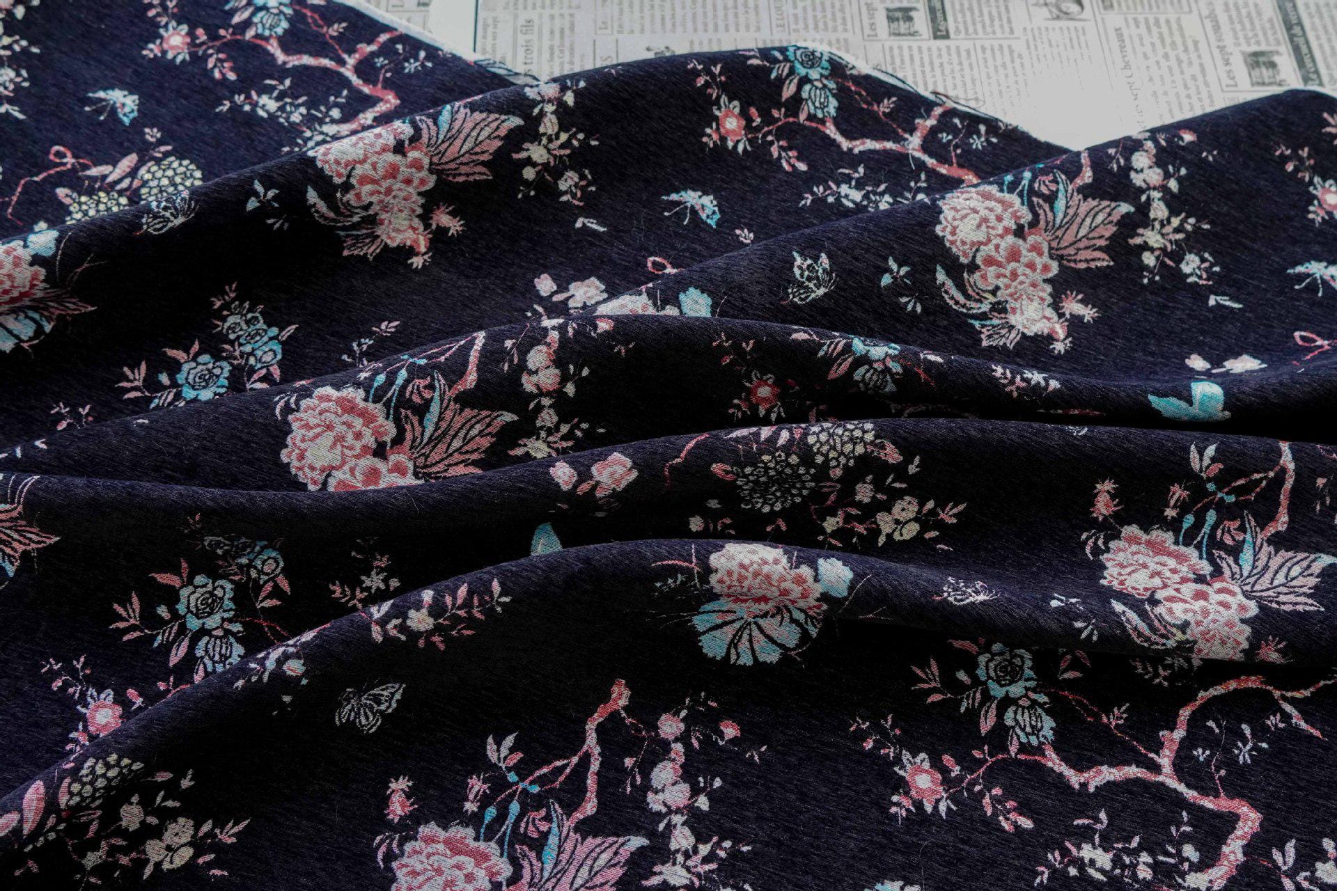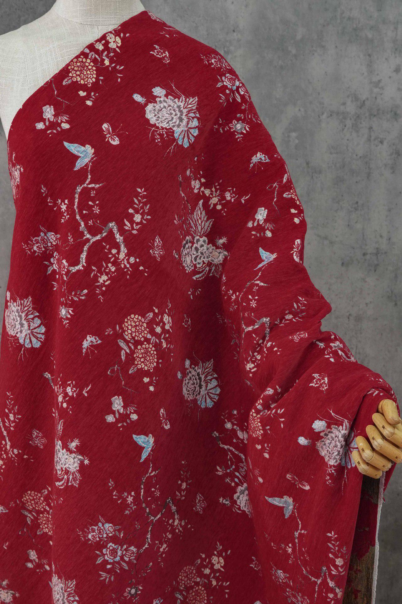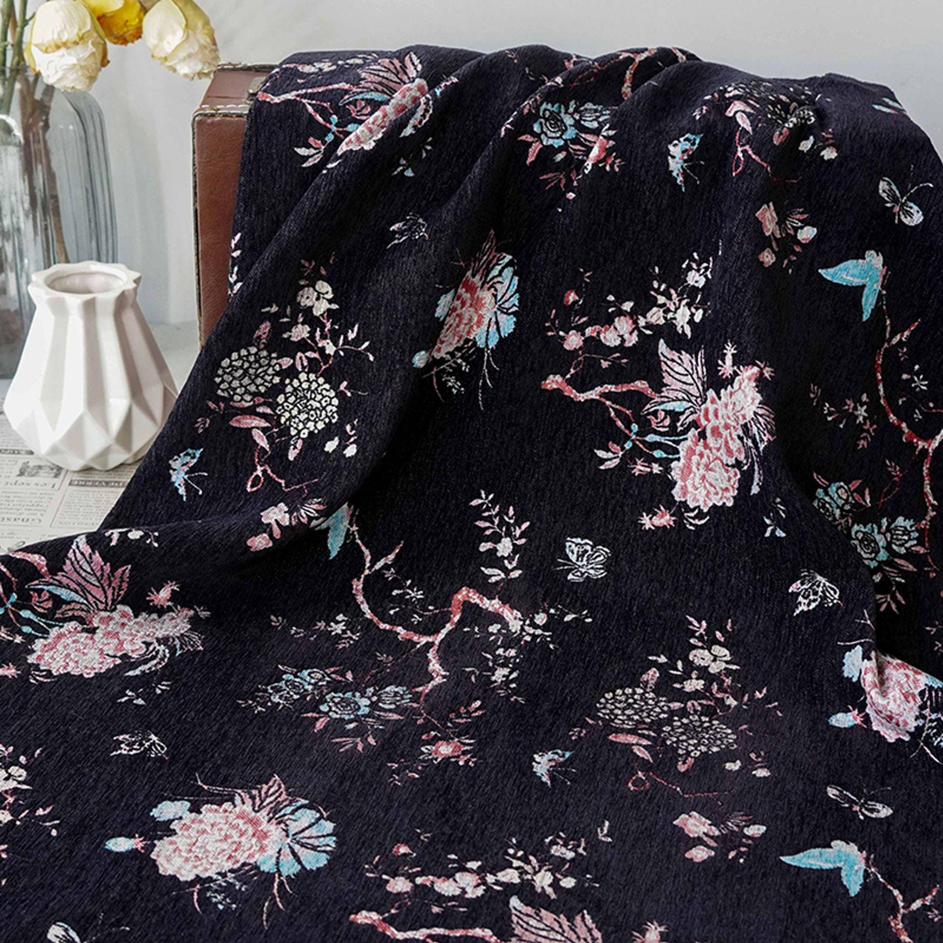 Retro Floral Chenille Jacquard Upholstery Fabric - Gold Thread, 59" Wide