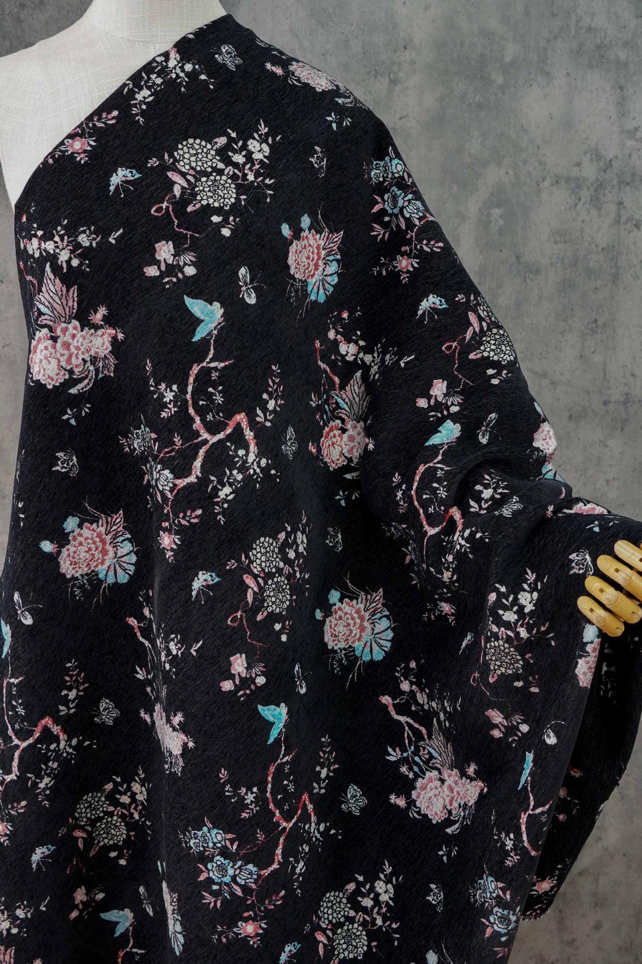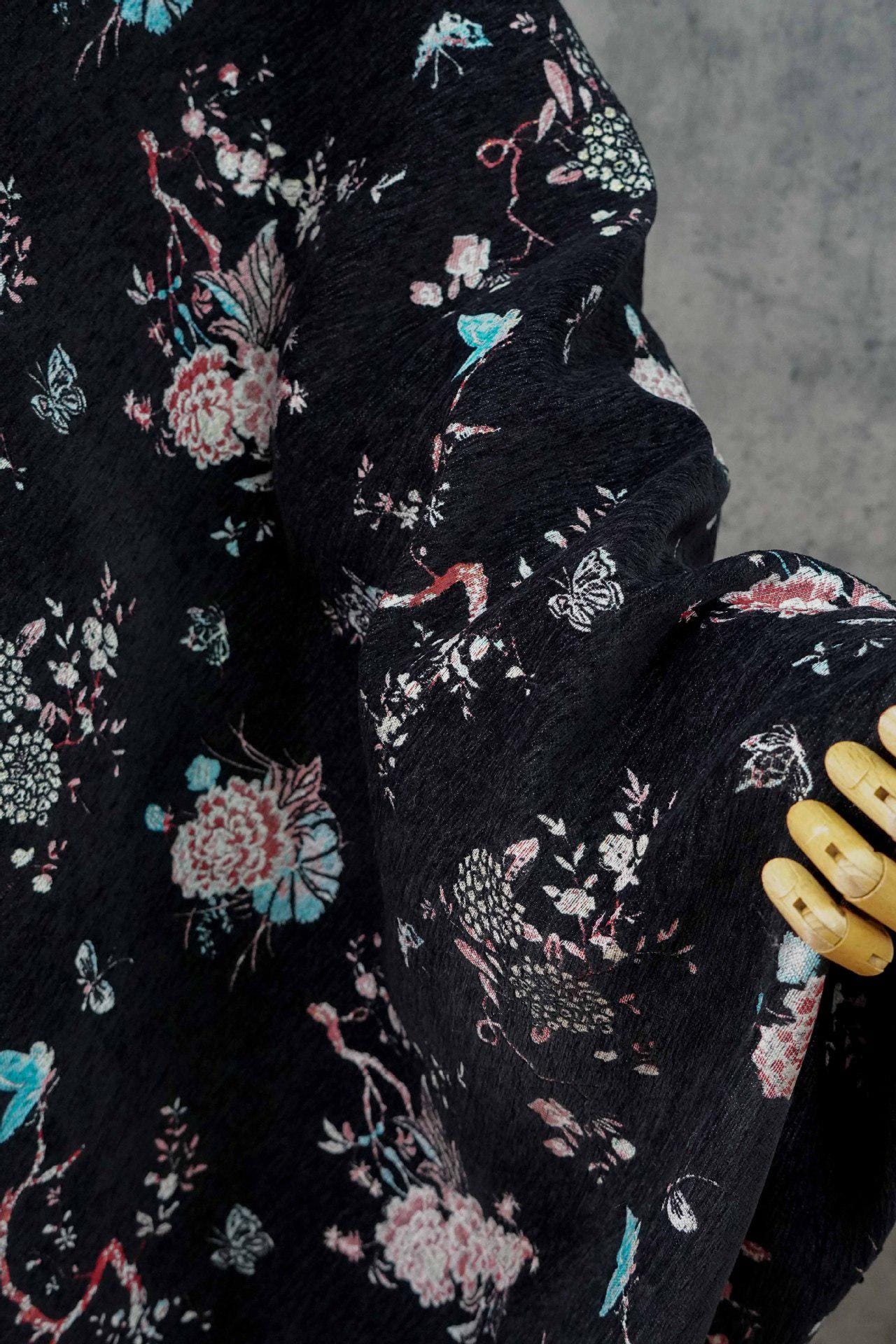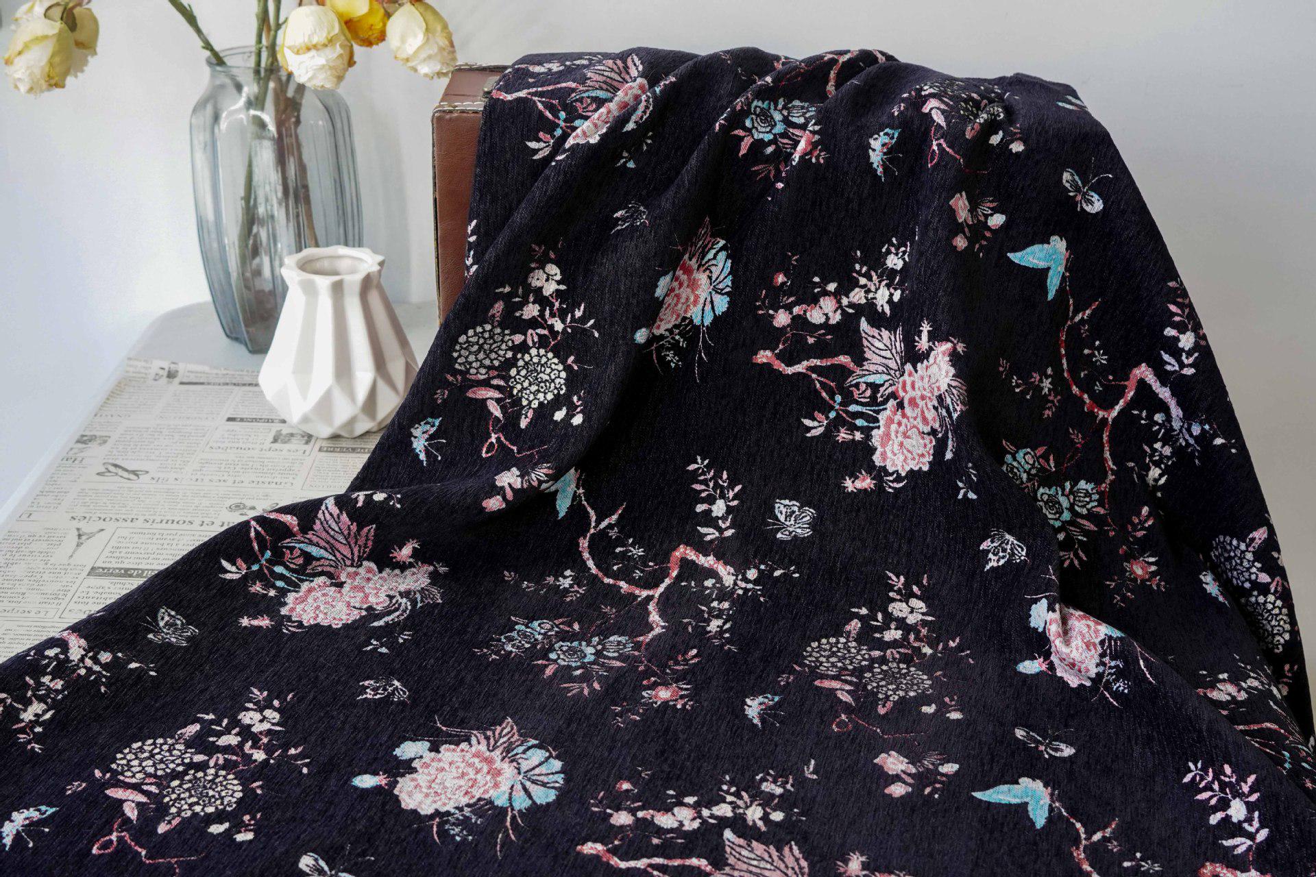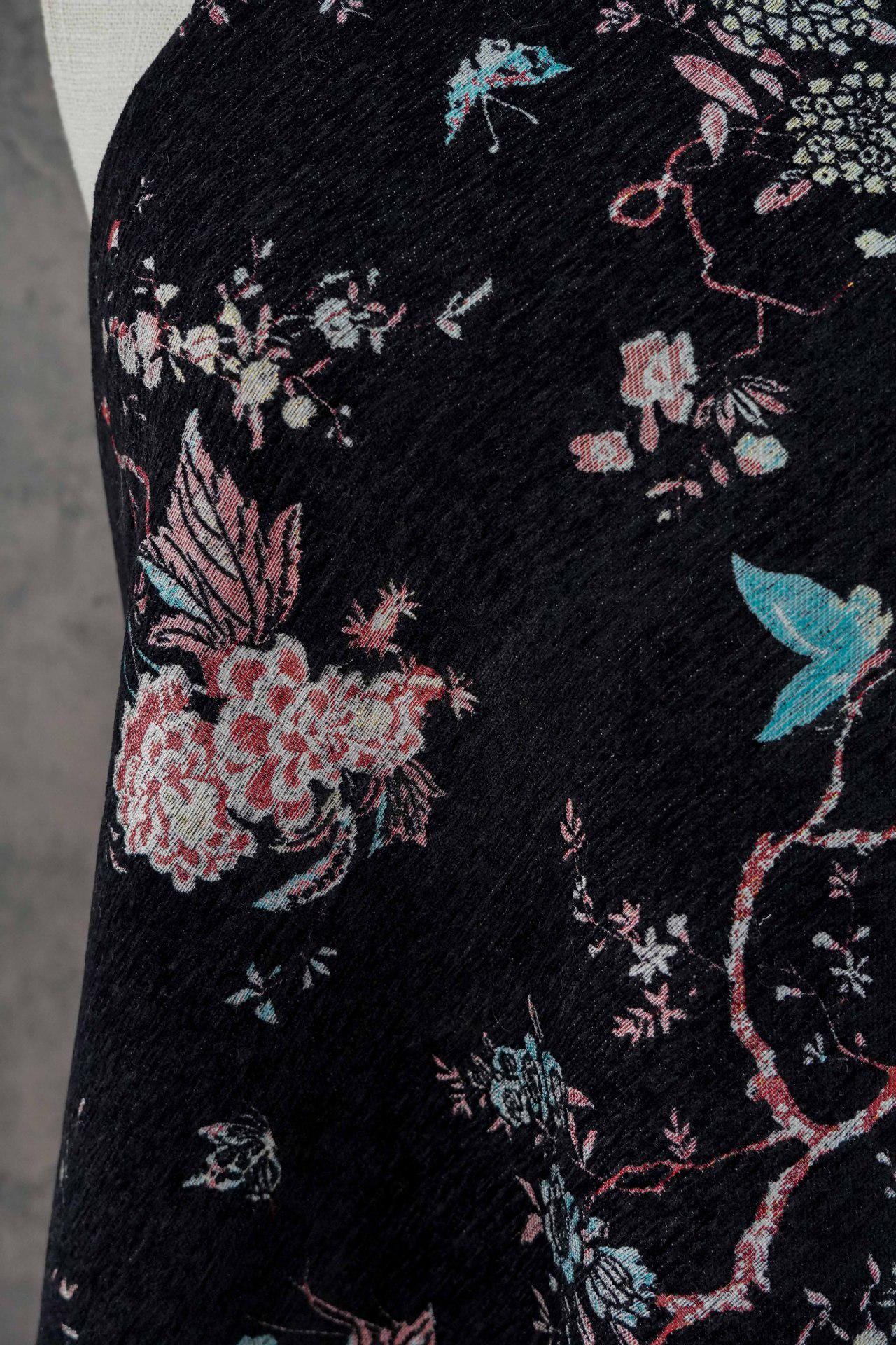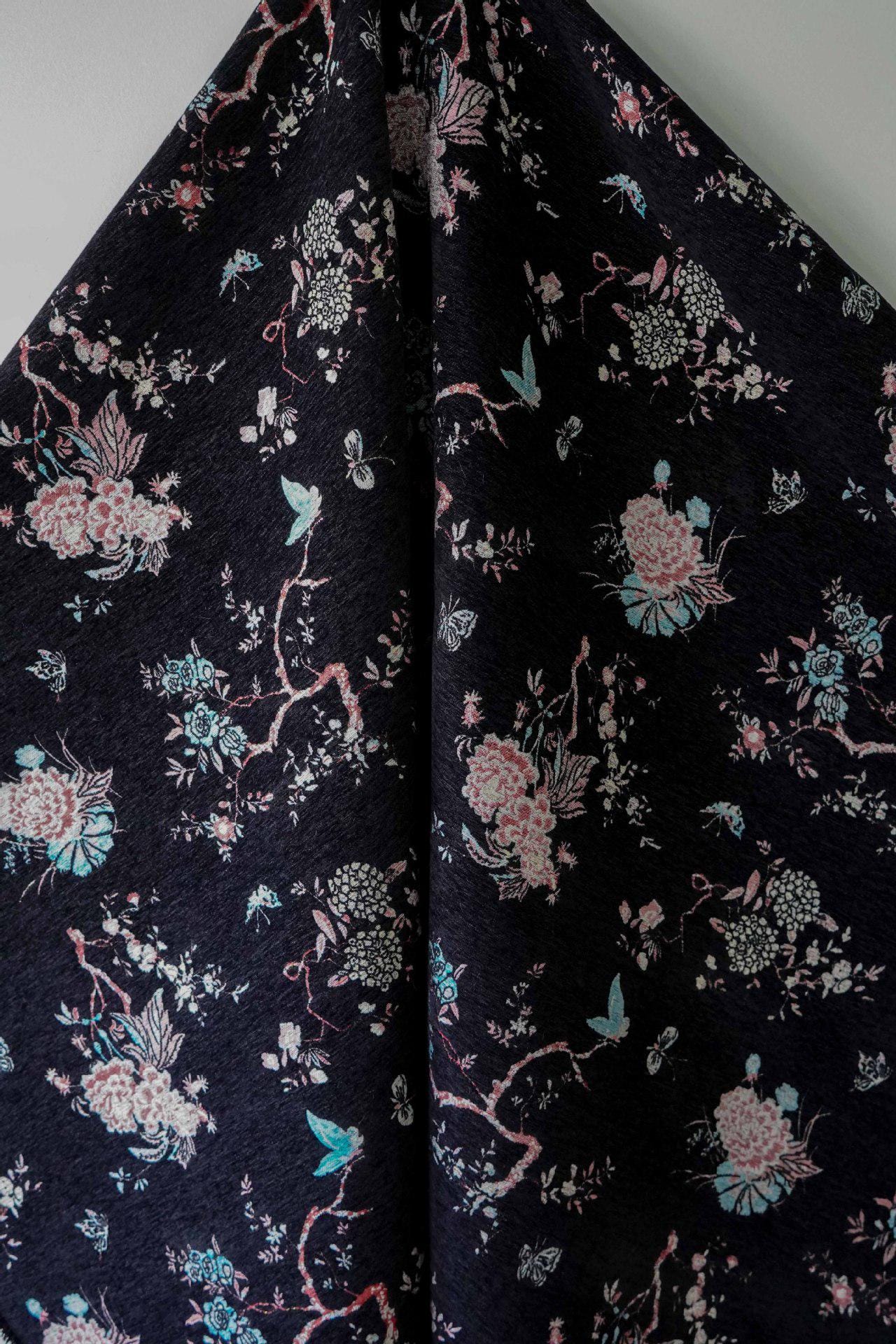 Retro Floral Chenille Jacquard Upholstery Fabric - Gold Thread, 59" Wide