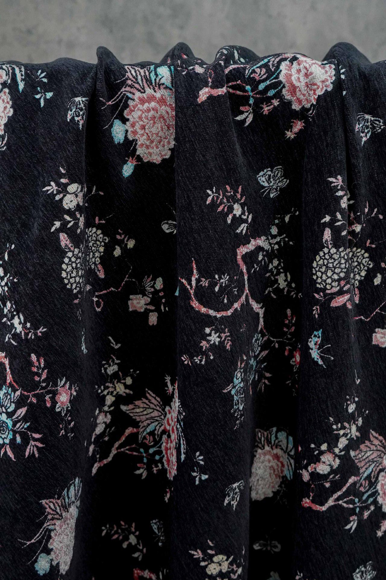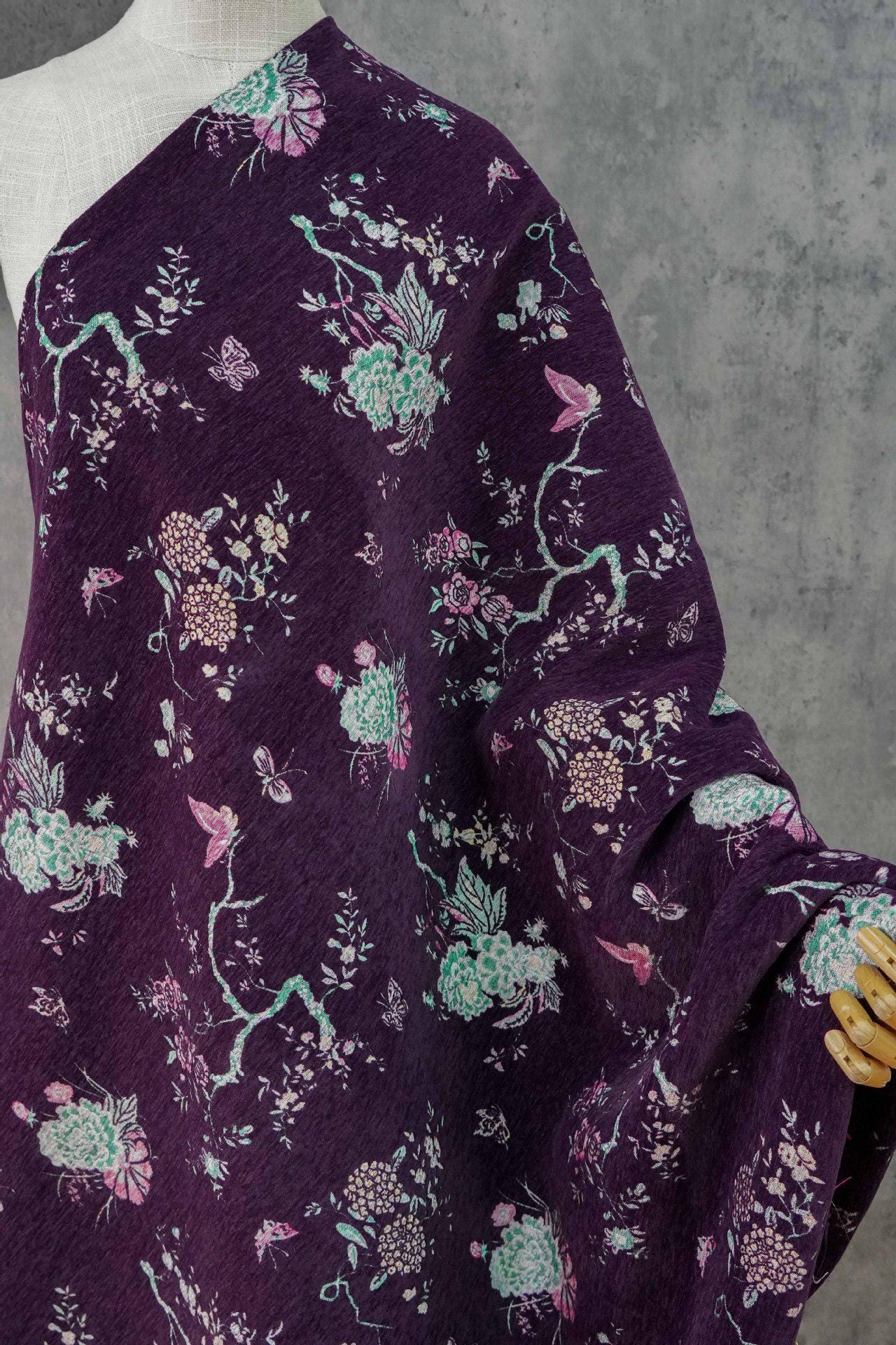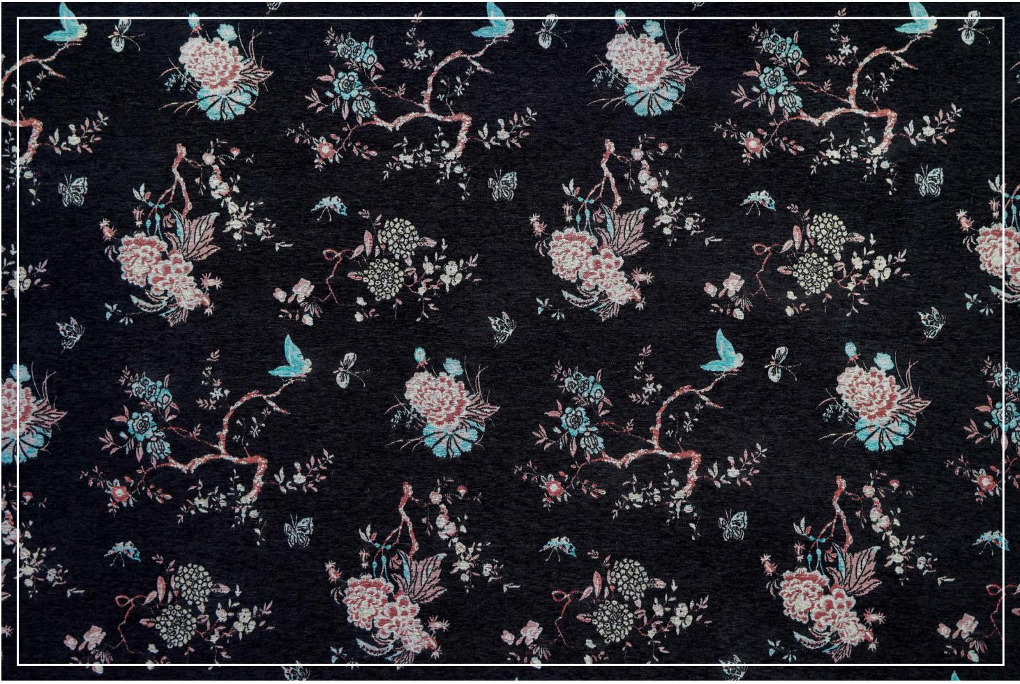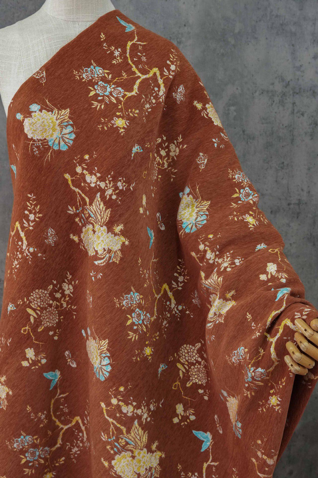 Retro Floral Chenille Jacquard Upholstery Fabric - Gold Thread, 59" Wide