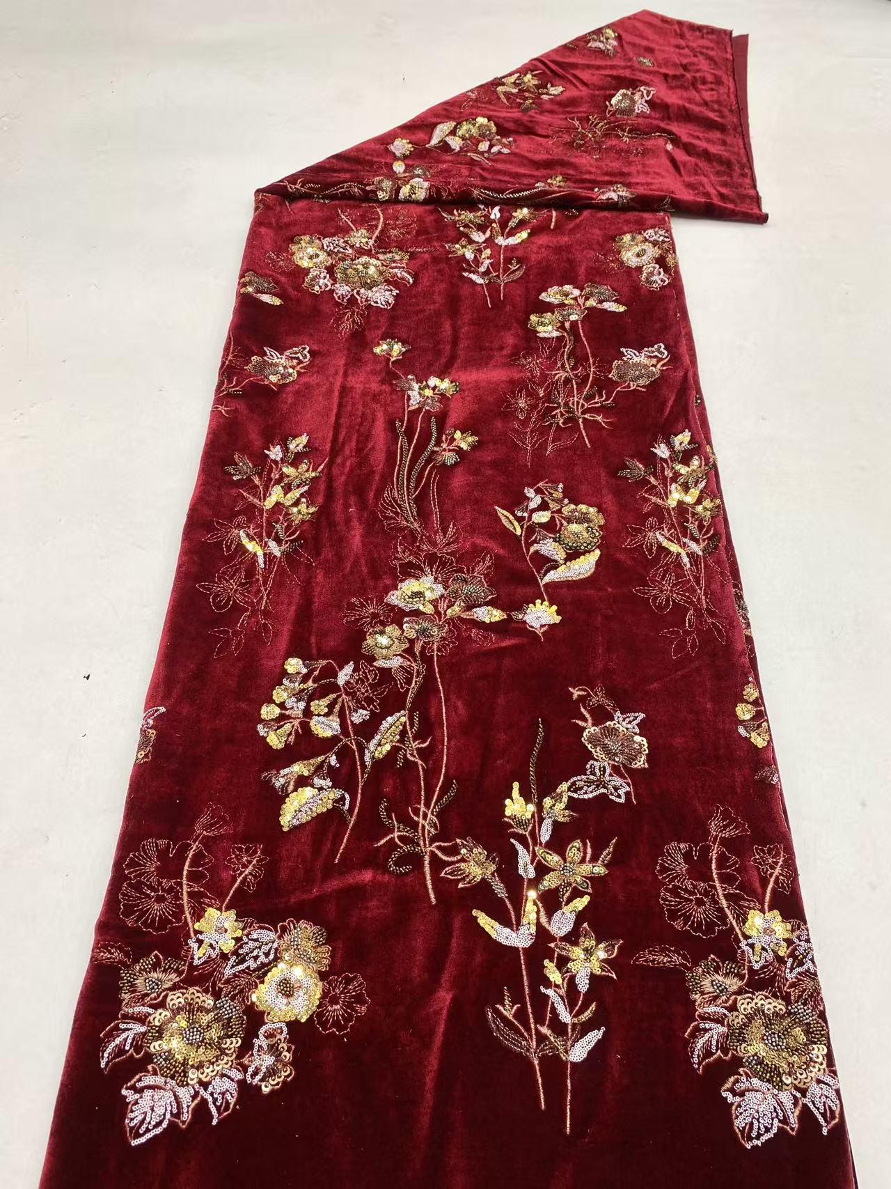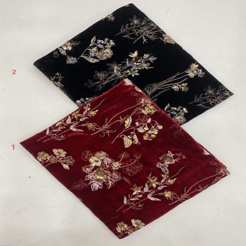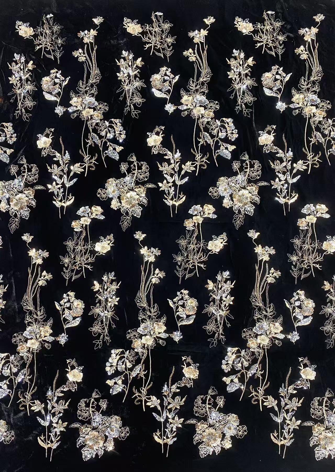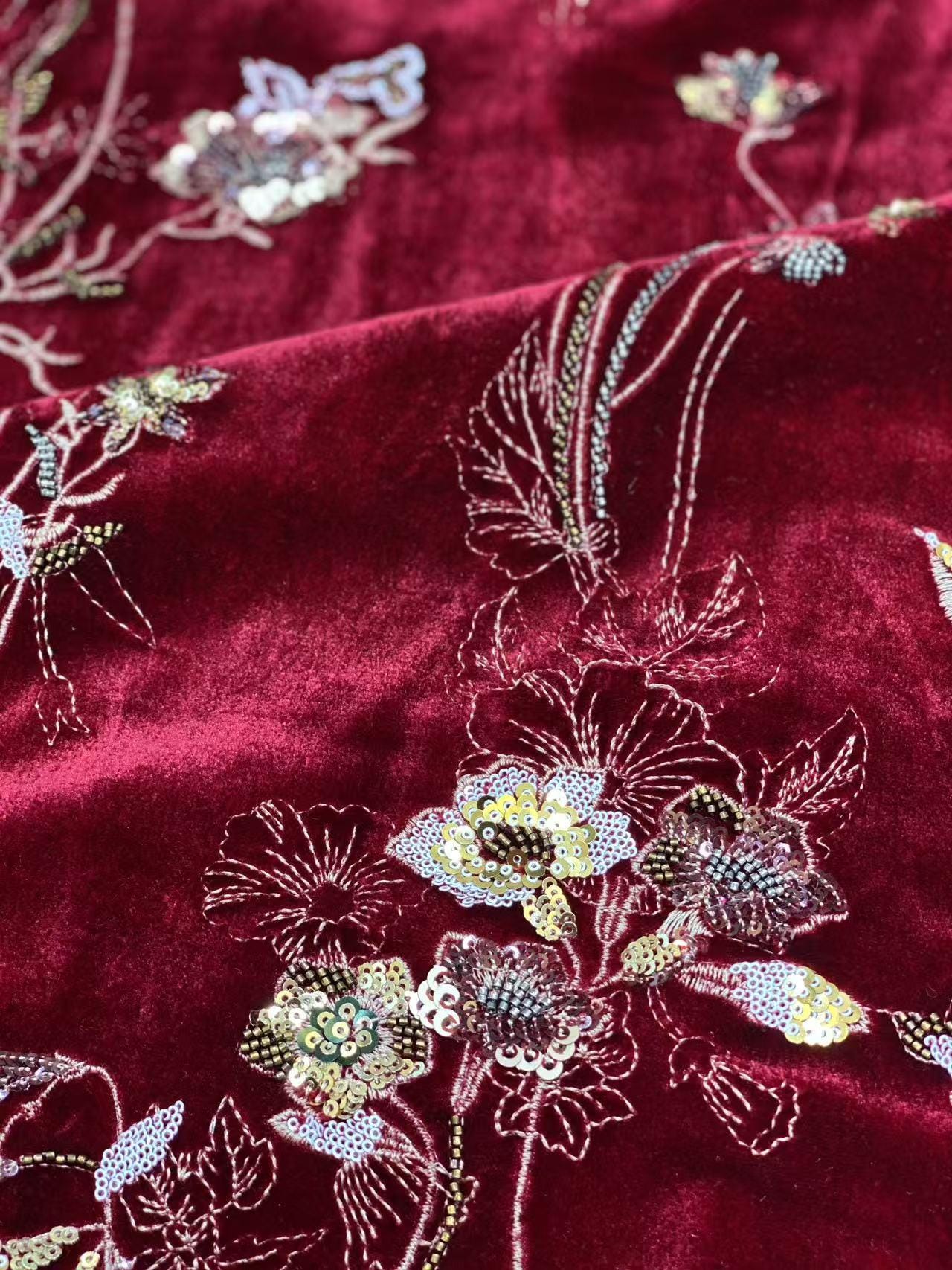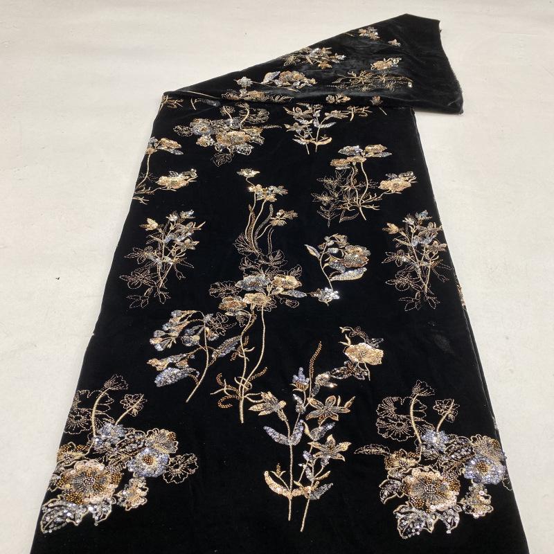 Beaded Sequin Velvet Fabric – Embroidered Floral Design, 49" Wide