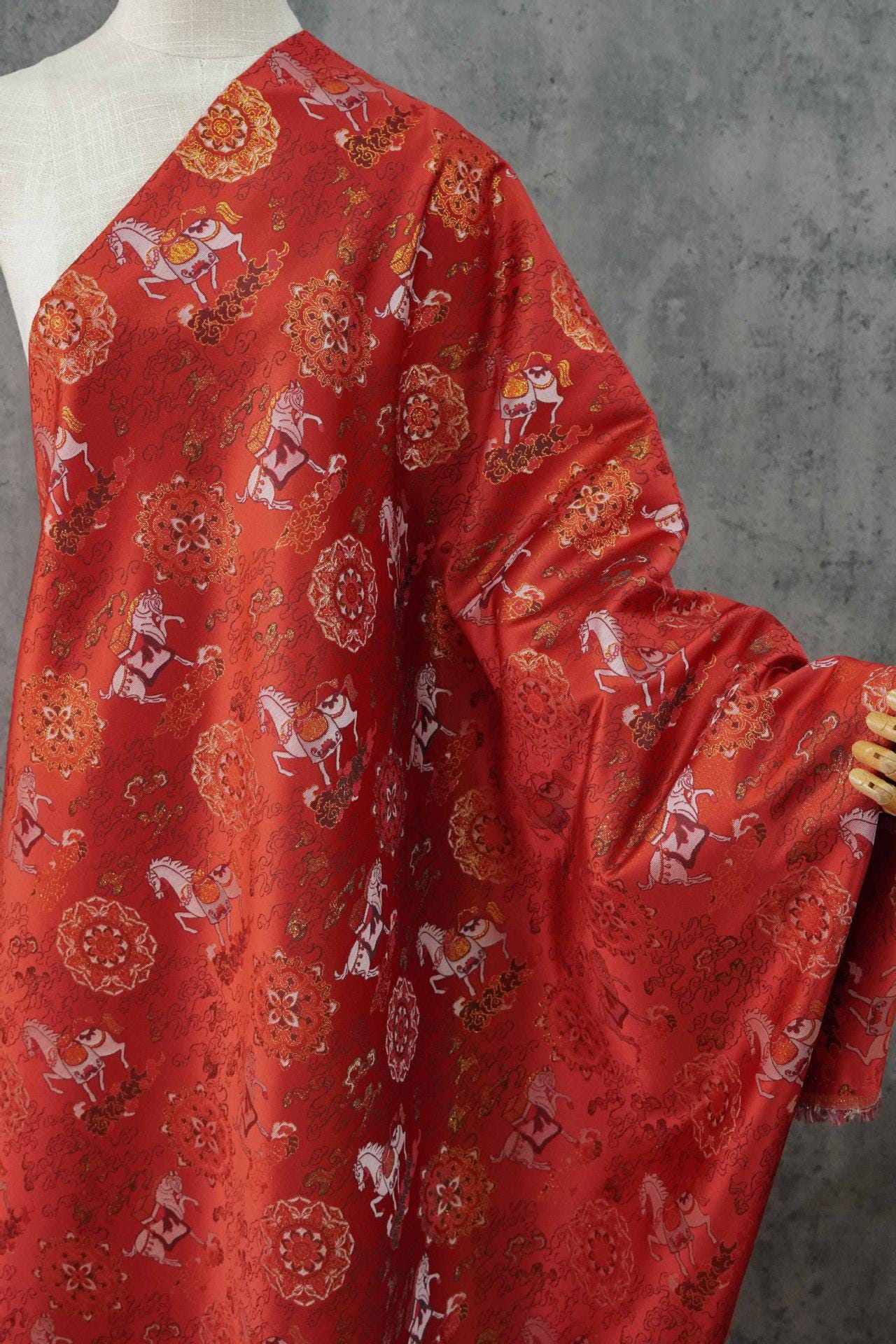Care instructions: we suggest to do hand-washing, always use cool water and a mild detergent. Never scrub vigorously, wring or twist the garment. Extra care should be taken when laundering the fabric to prevent snagging and to protect the long floating threads that form the design and give brocade its lovely finish from breakage.