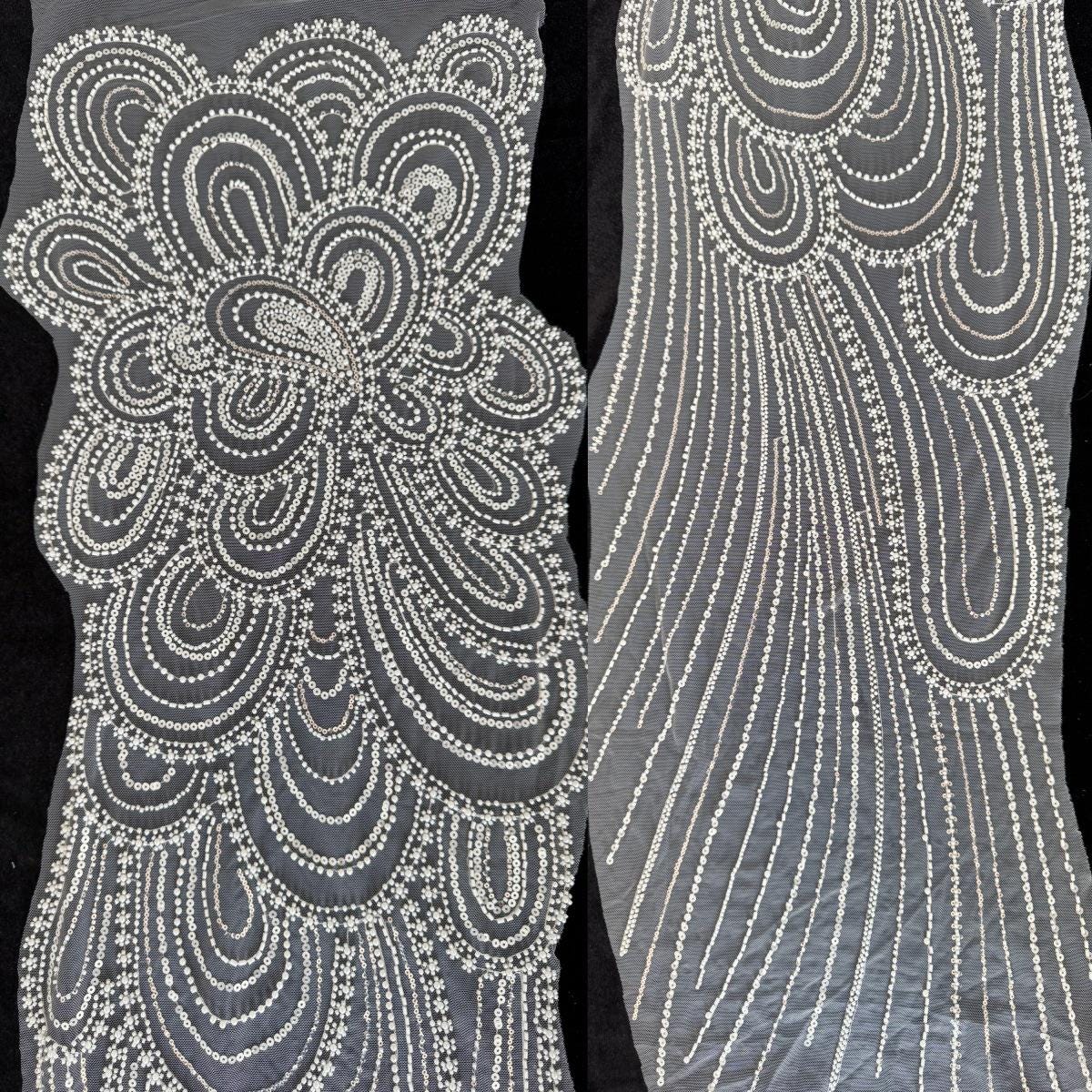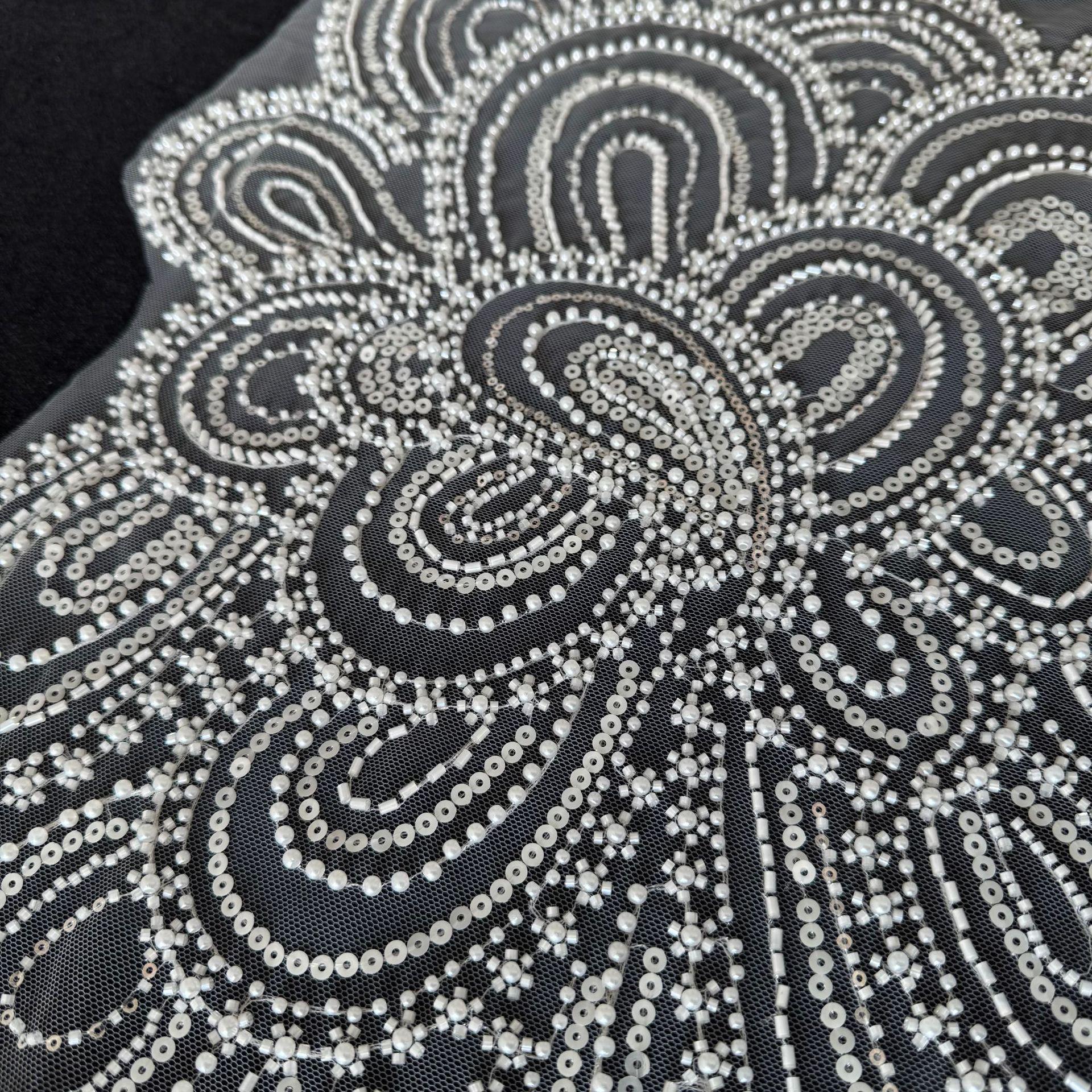 3D Beaded Floral Embroidery Mesh Fabric, Large Flower Sequin Lace for Bridal Gowns & Formal Dressmaking
