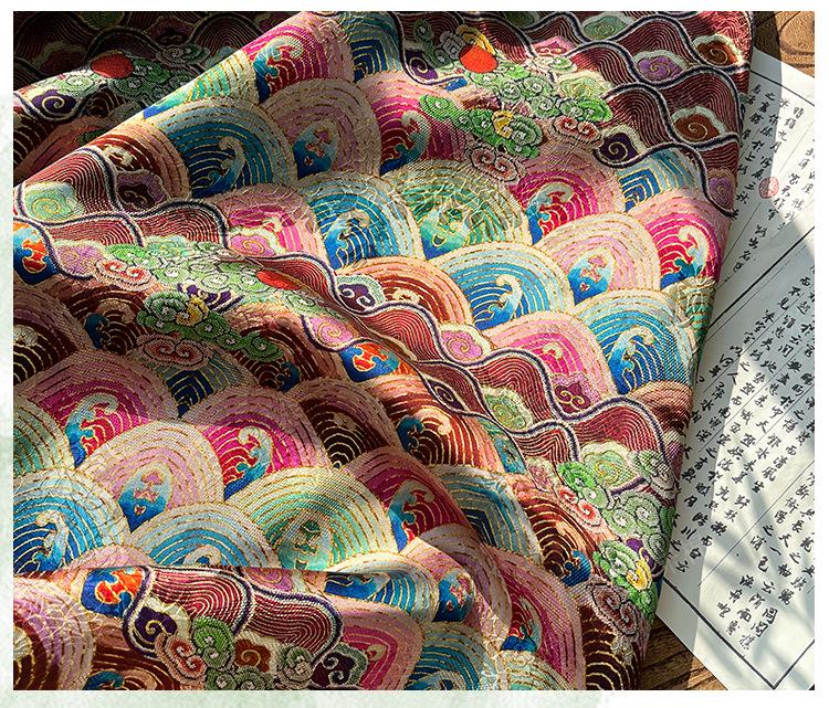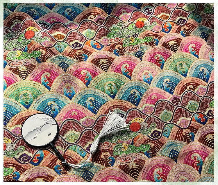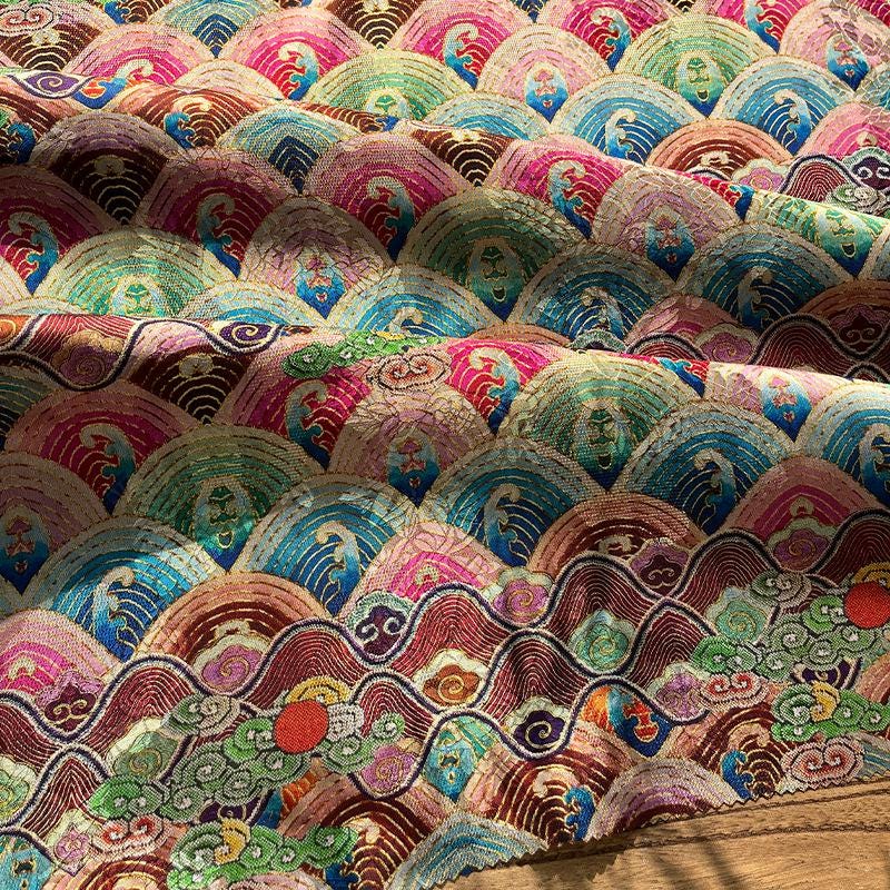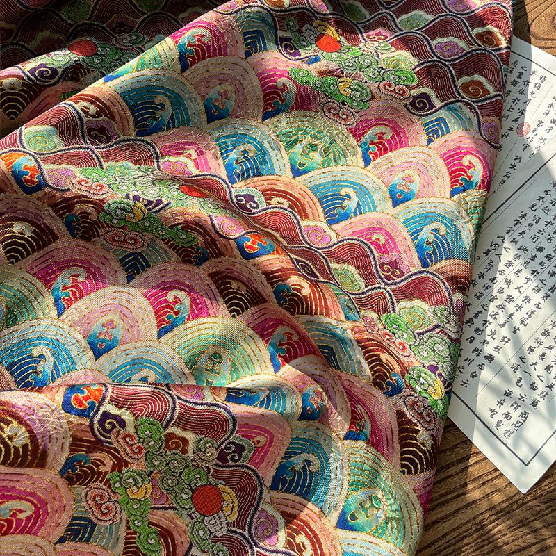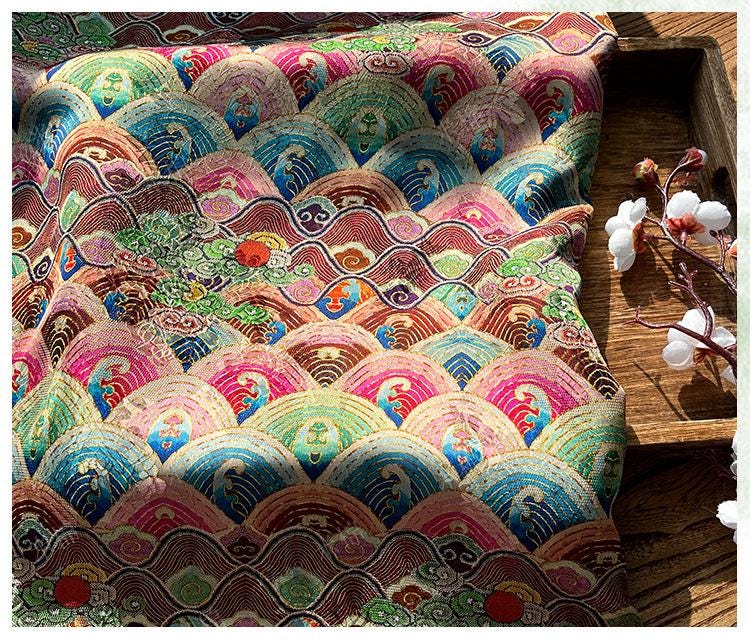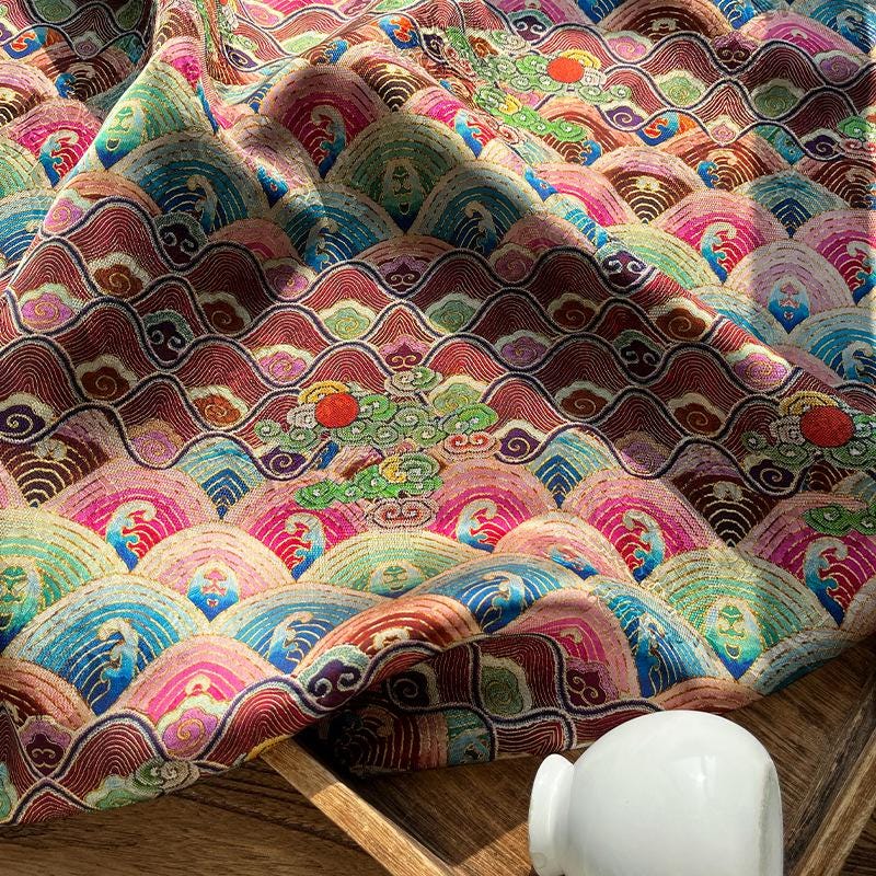 Jacquard Gambiered Canton Gauze Fabric - Xiangyun Tea Silk Brocade, 59" Wide