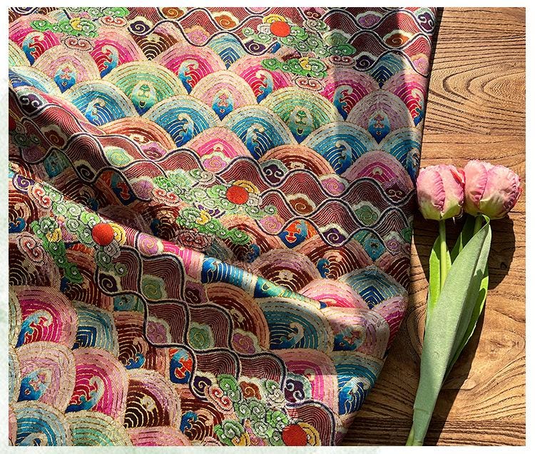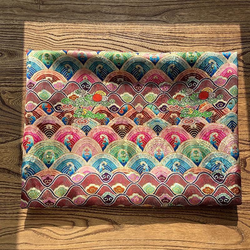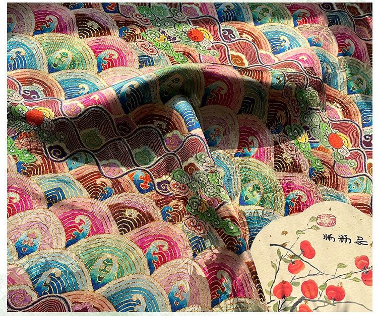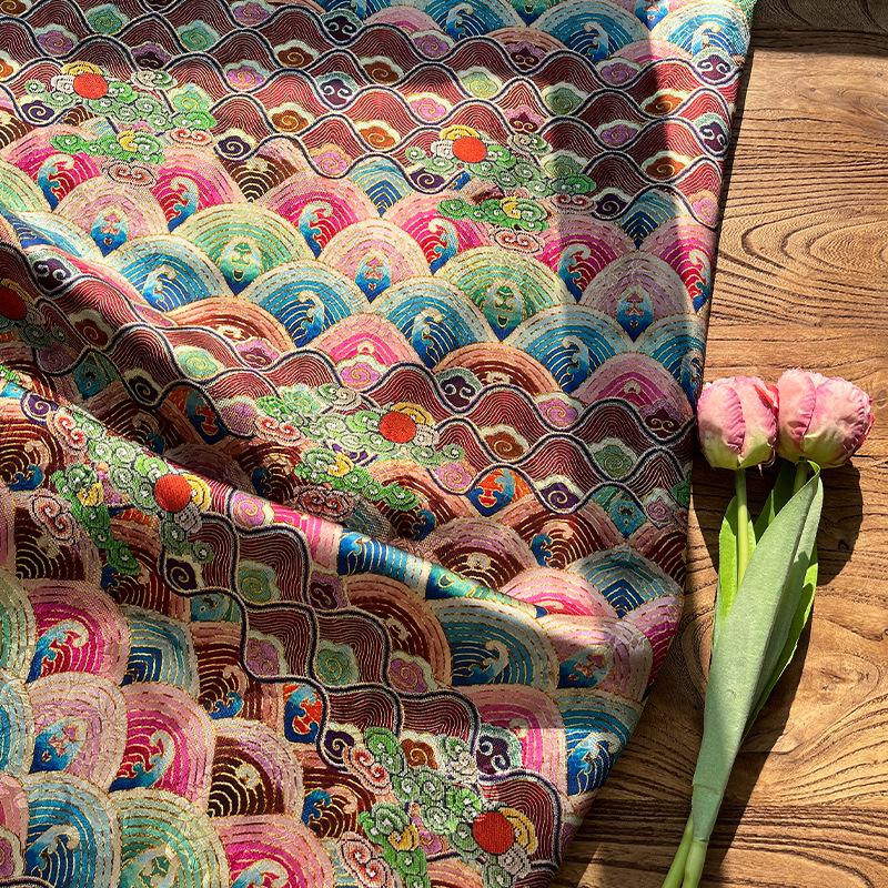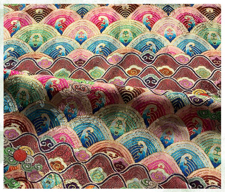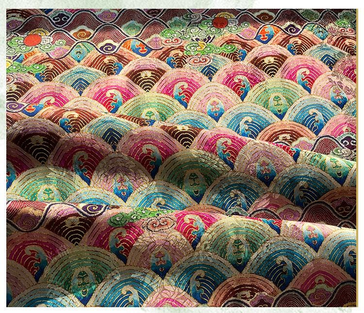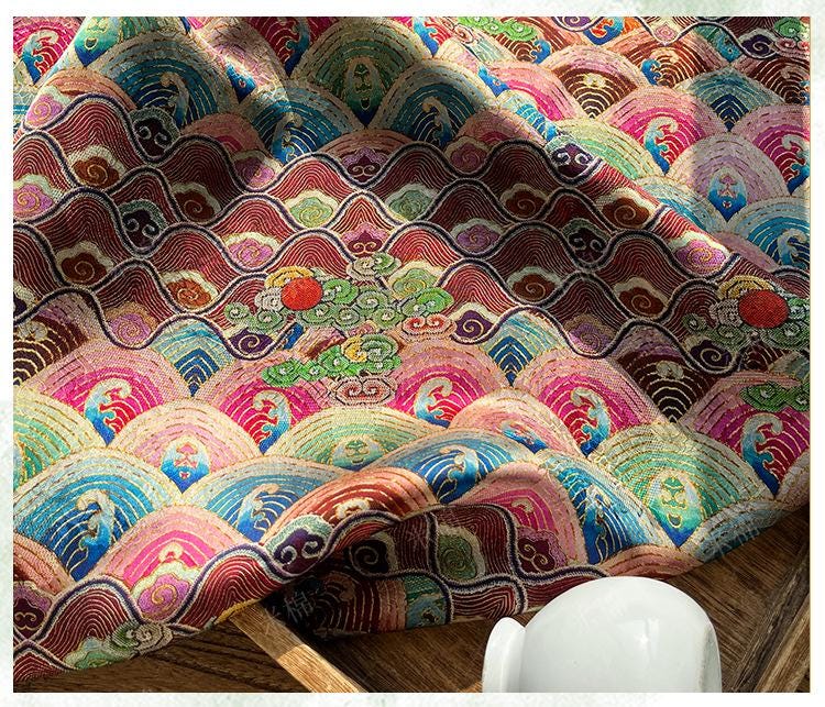 Jacquard Gambiered Canton Gauze Fabric - Xiangyun Tea Silk Brocade, 59" Wide