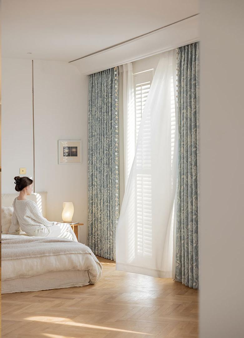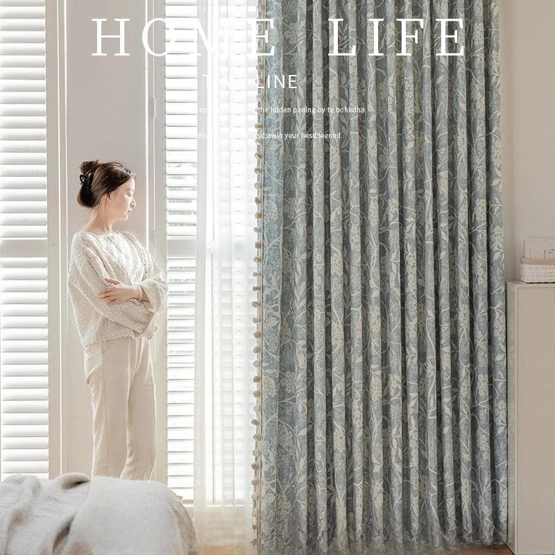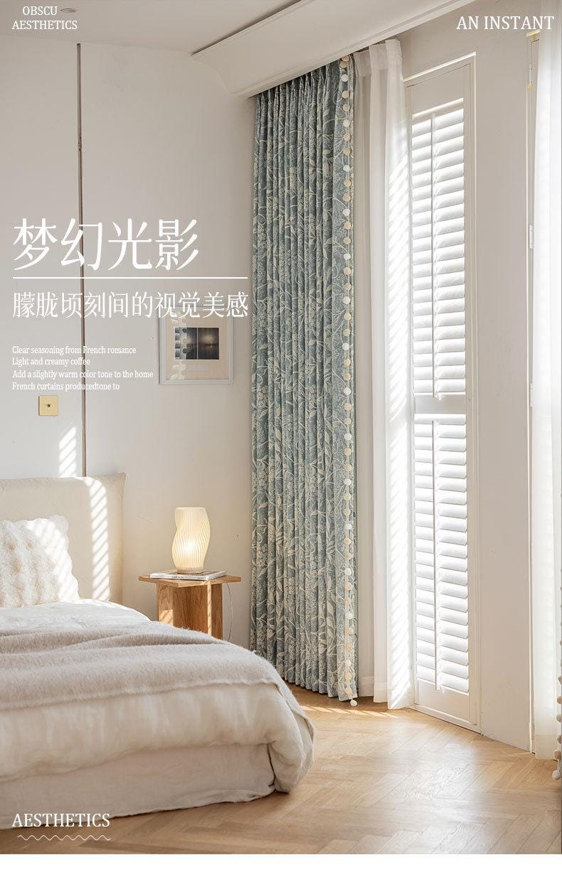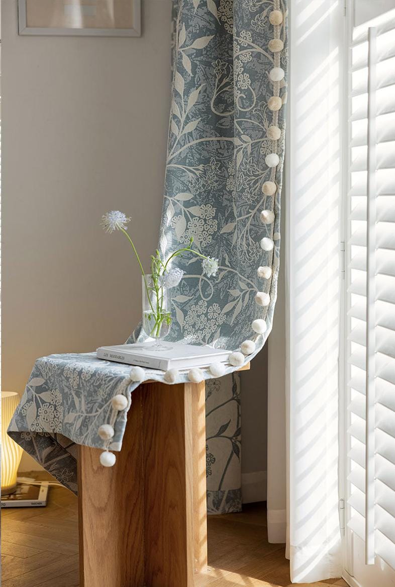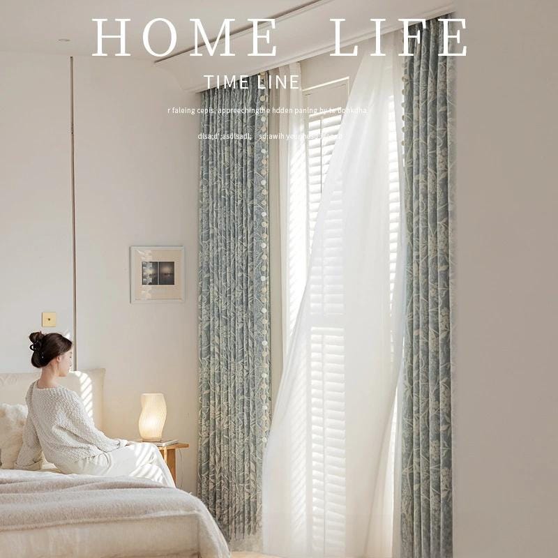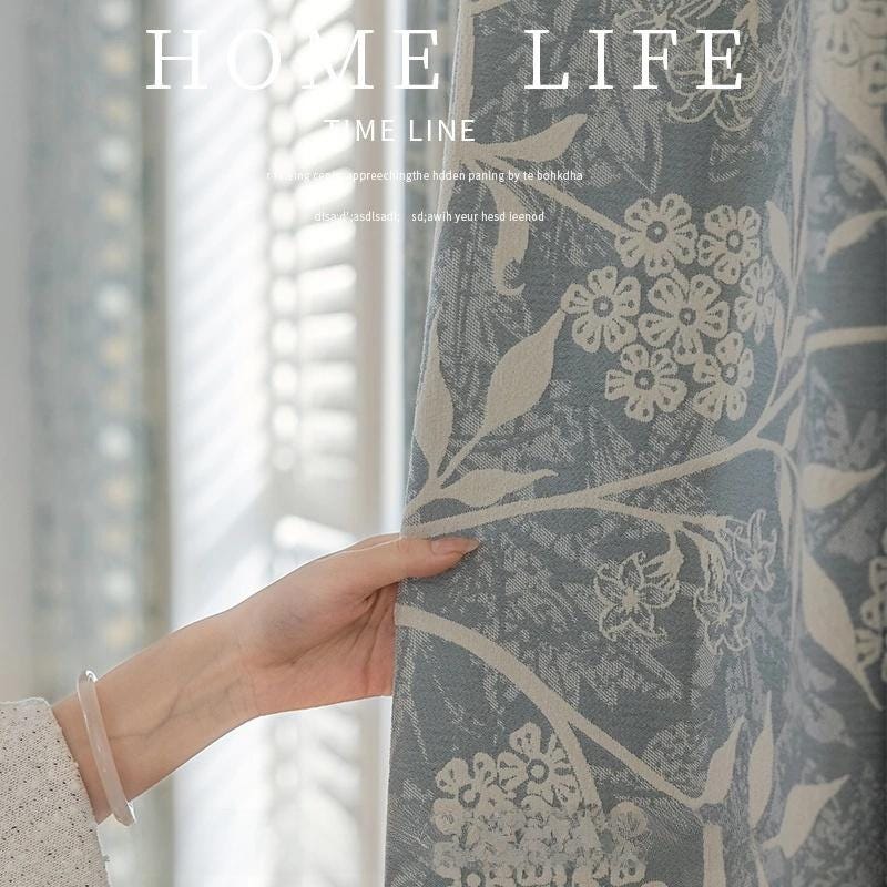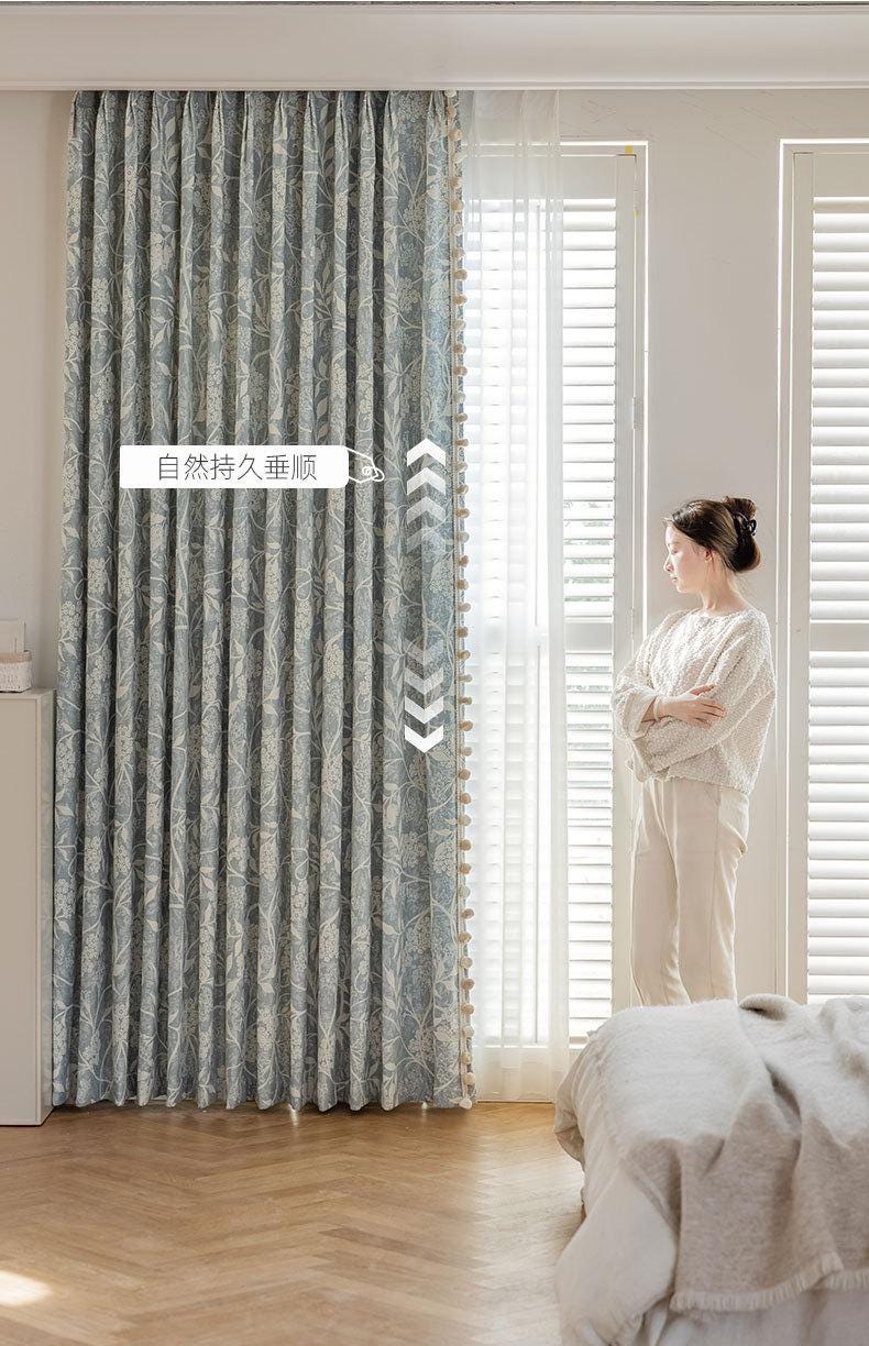 Luxury Blue Chenille Jacquard Curtain Fabric – High Blackout Drapery Material, 114” Height, Sold by the Meter, Continuous Width