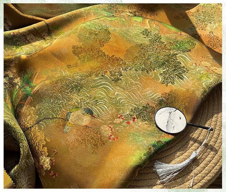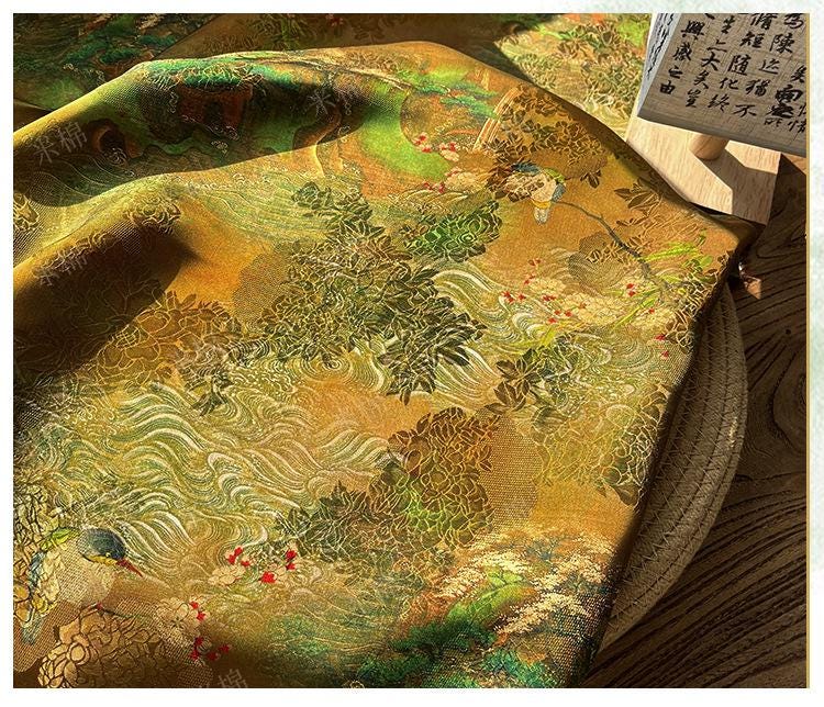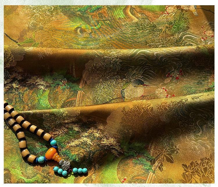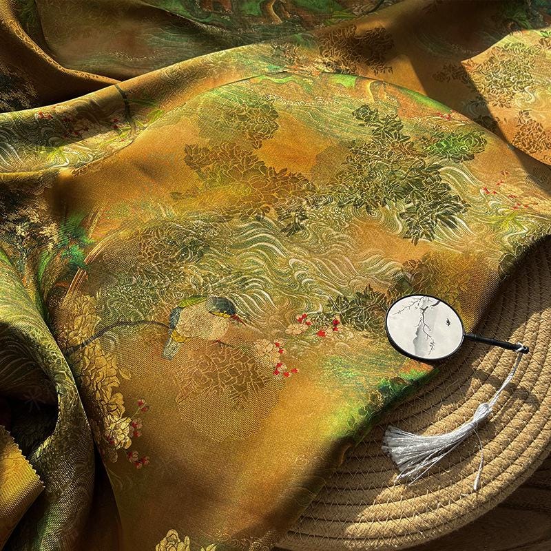 Emerald Rayon Fragrant Jacquard Fabric - Rayon Silk, Luxury Textile, Elegant Handmade Dress Material, Sustainable Fabric by Yard, 59"W