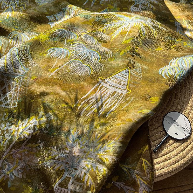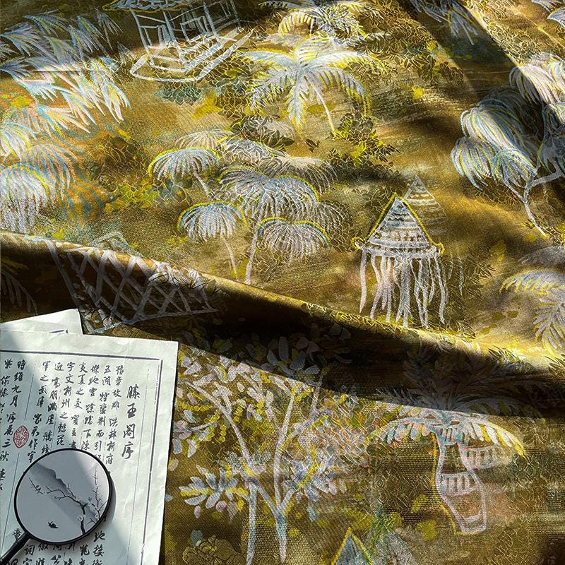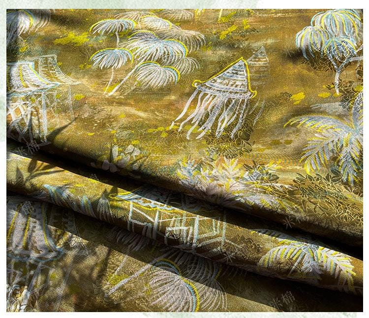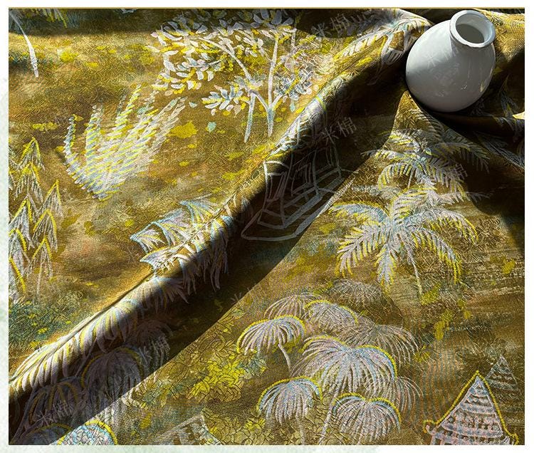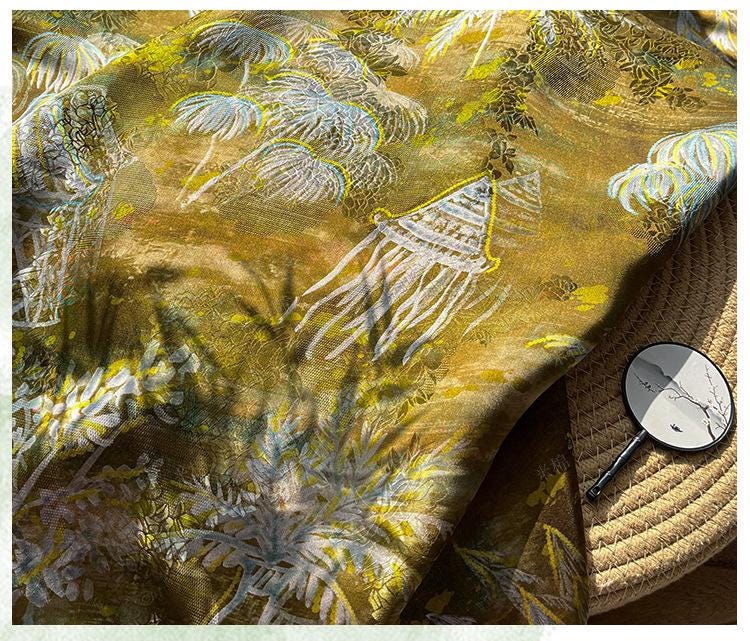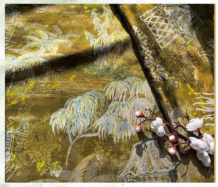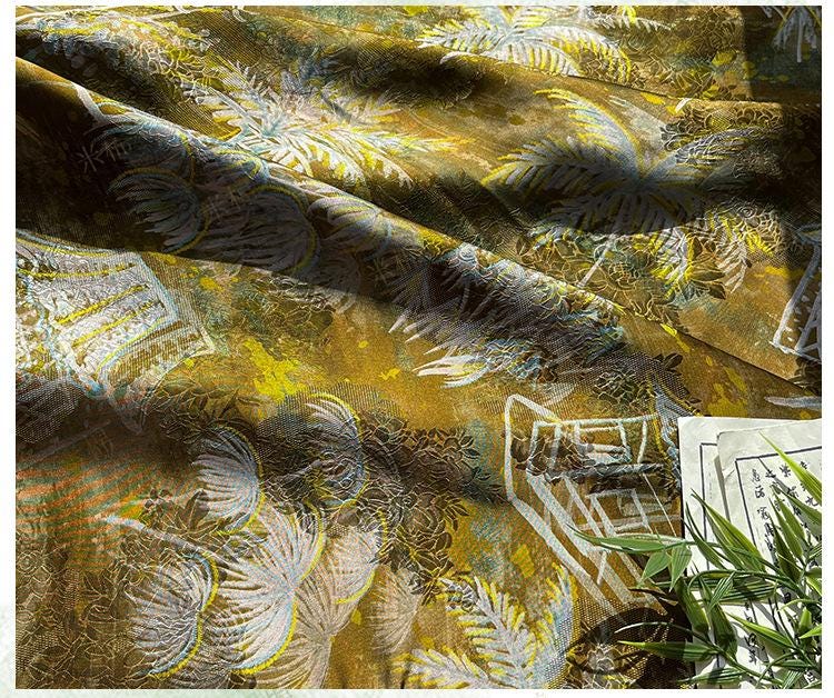 Rayon Silk Jacquard Xiangyun Fabric – Handcrafted Warm Forest Home Textile for Sewing, Dressmaking, DIY Crafts, 59" Wide