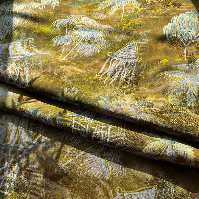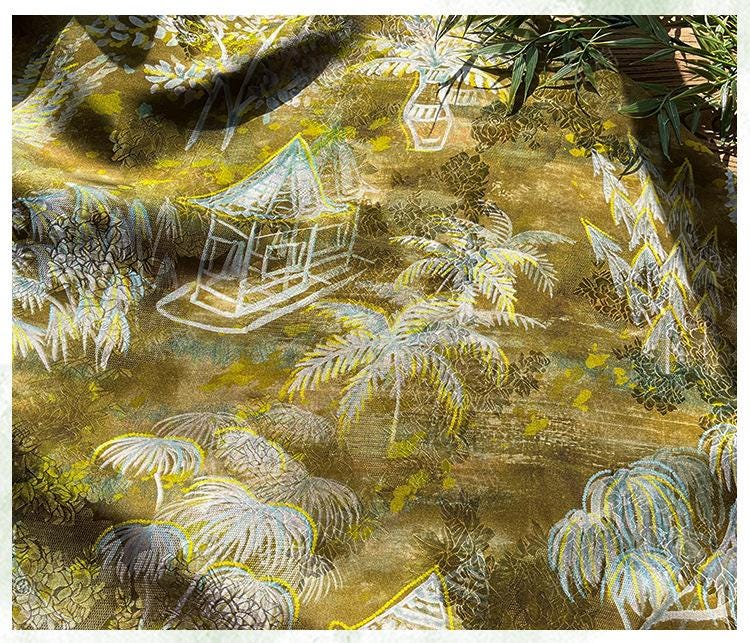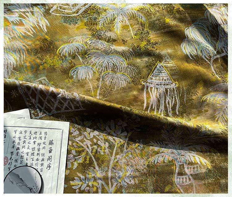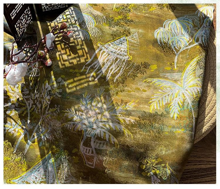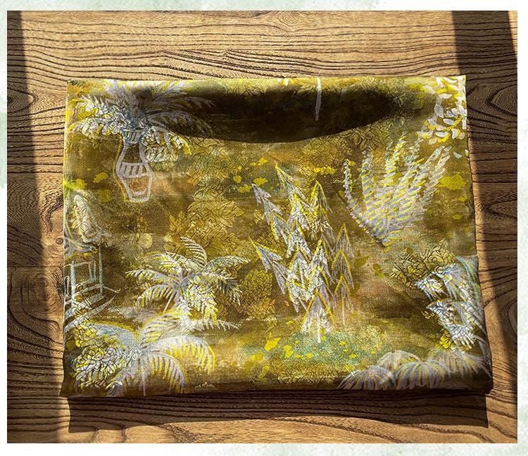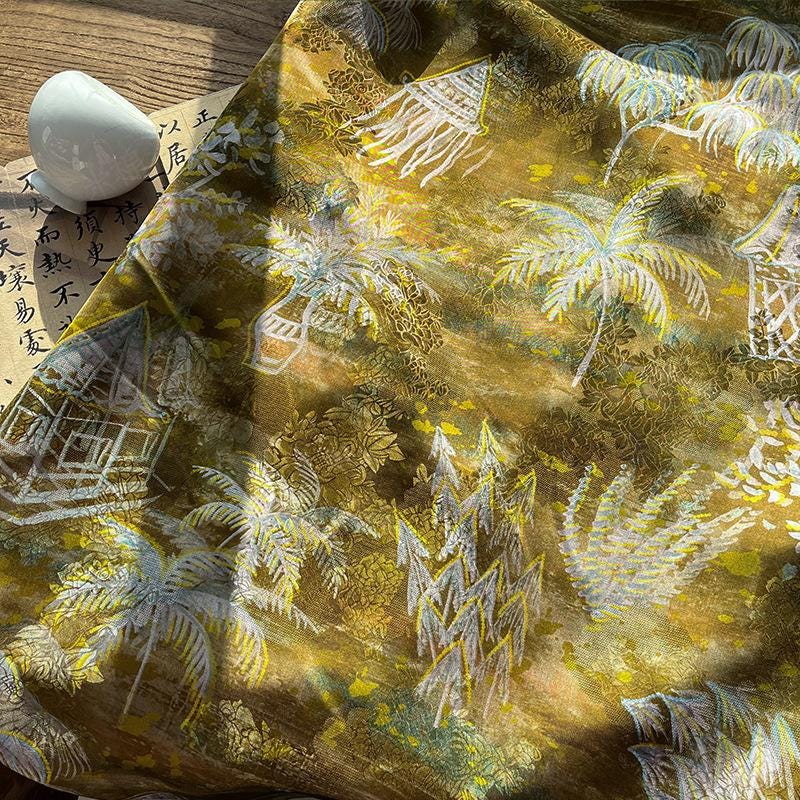 Rayon Silk Jacquard Xiangyun Fabric – Handcrafted Warm Forest Home Textile for Sewing, Dressmaking, DIY Crafts, 59" Wide