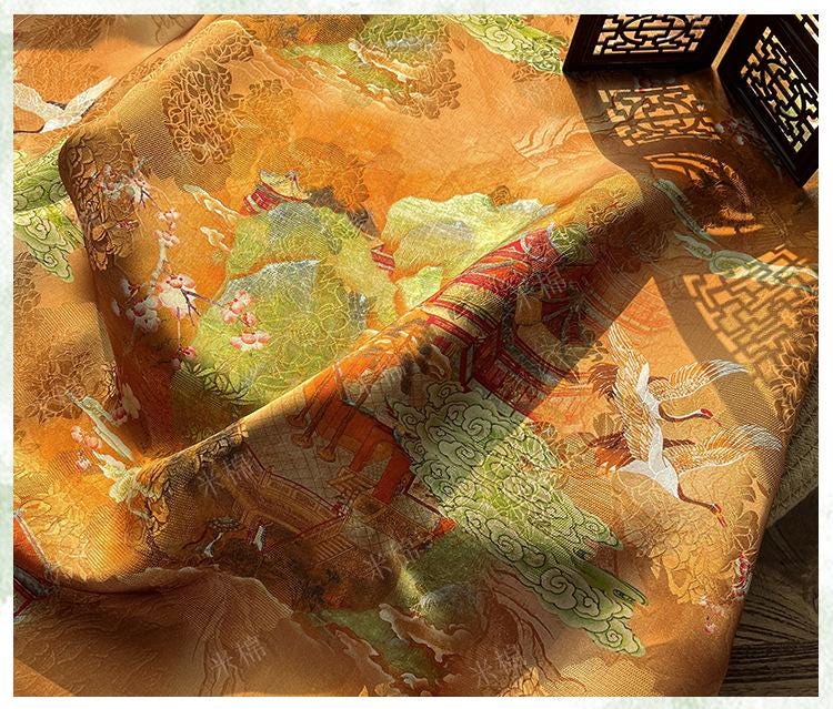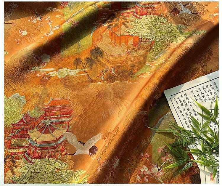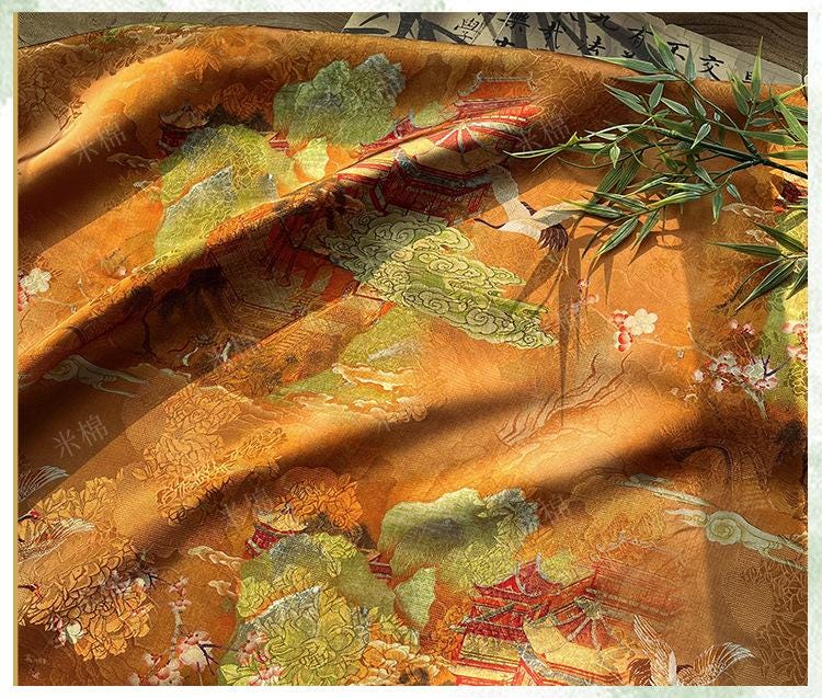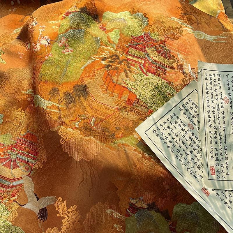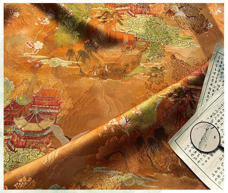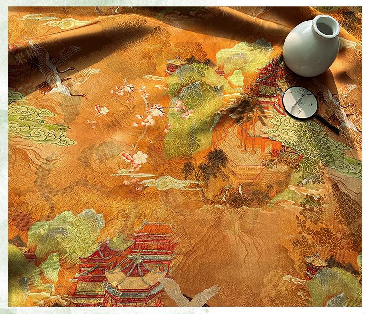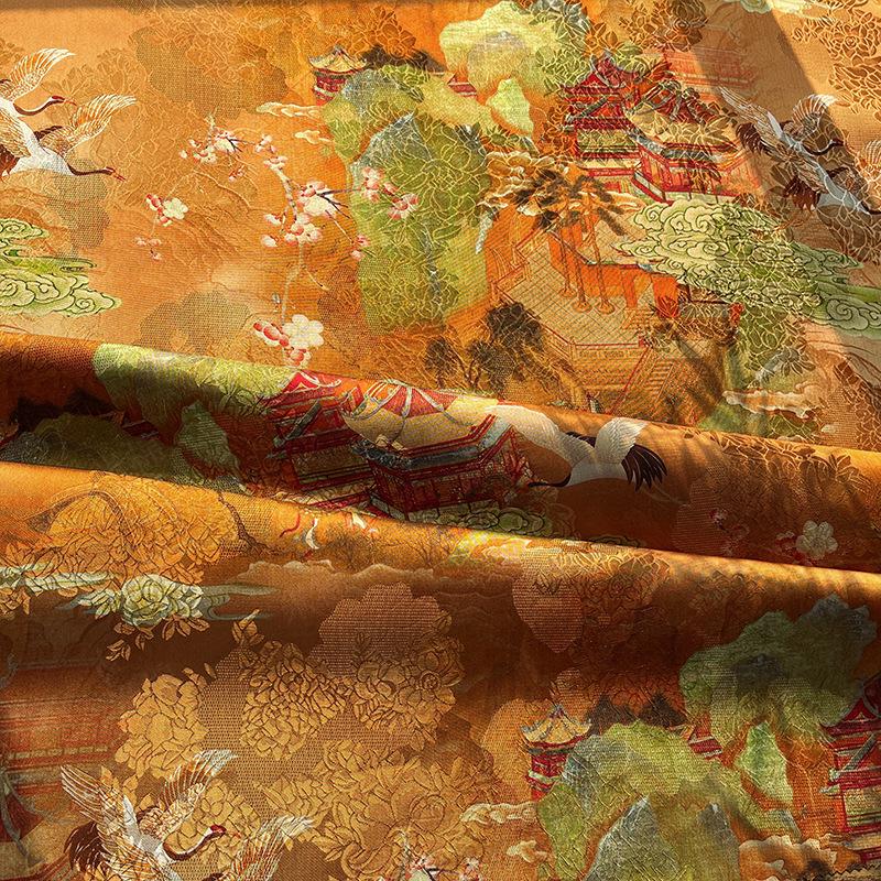 Rayon Silk Jacquard Xiangyun Fabric – Handcrafted Golden Cloud Embroidered Textile, Traditional Chinese Dress, Cheongsam, Craft Fabric, 59"W