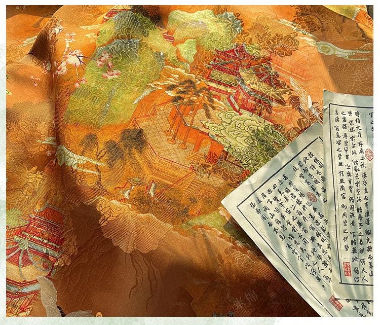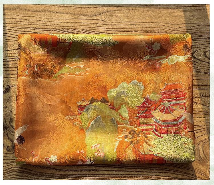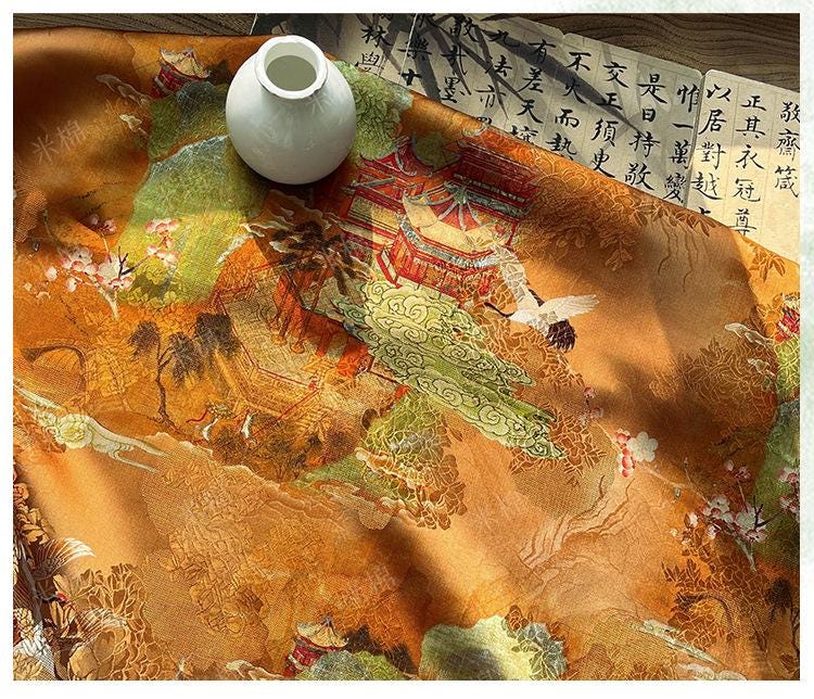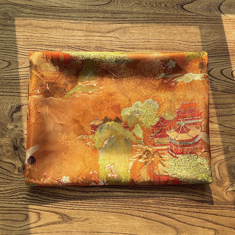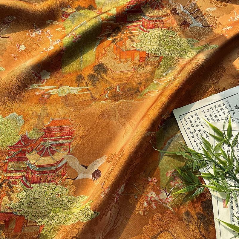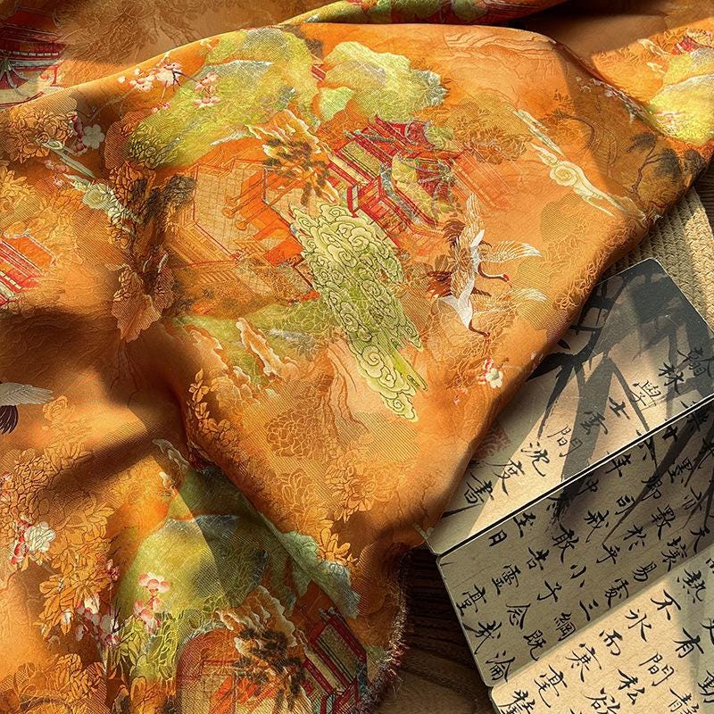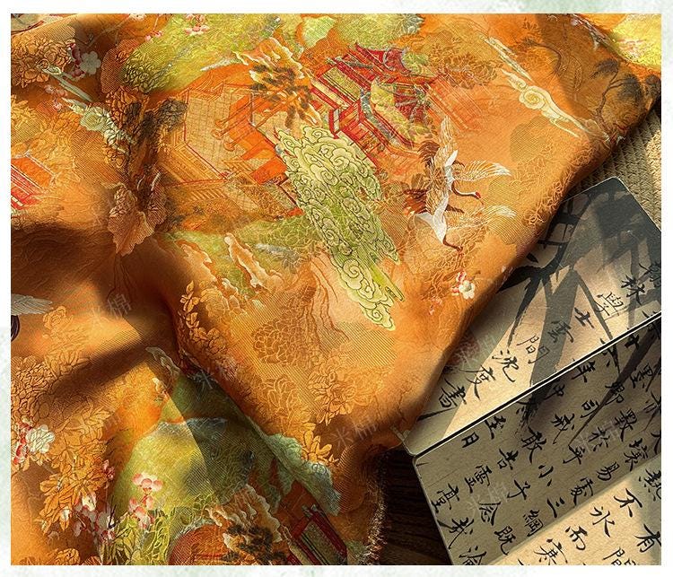 Rayon Silk Jacquard Xiangyun Fabric – Handcrafted Golden Cloud Embroidered Textile, Traditional Chinese Dress, Cheongsam, Craft Fabric, 59"W
